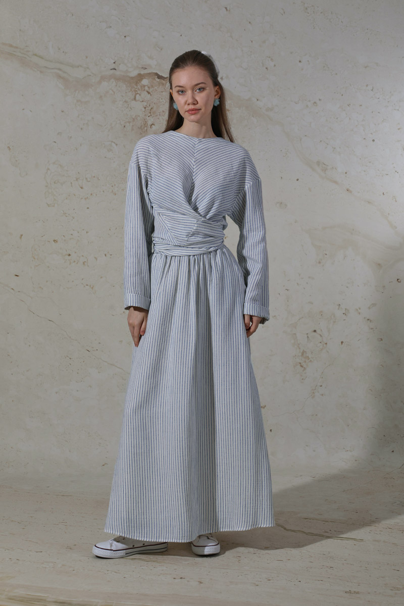 Bağlamalı Müslin Etek Takım Mavi