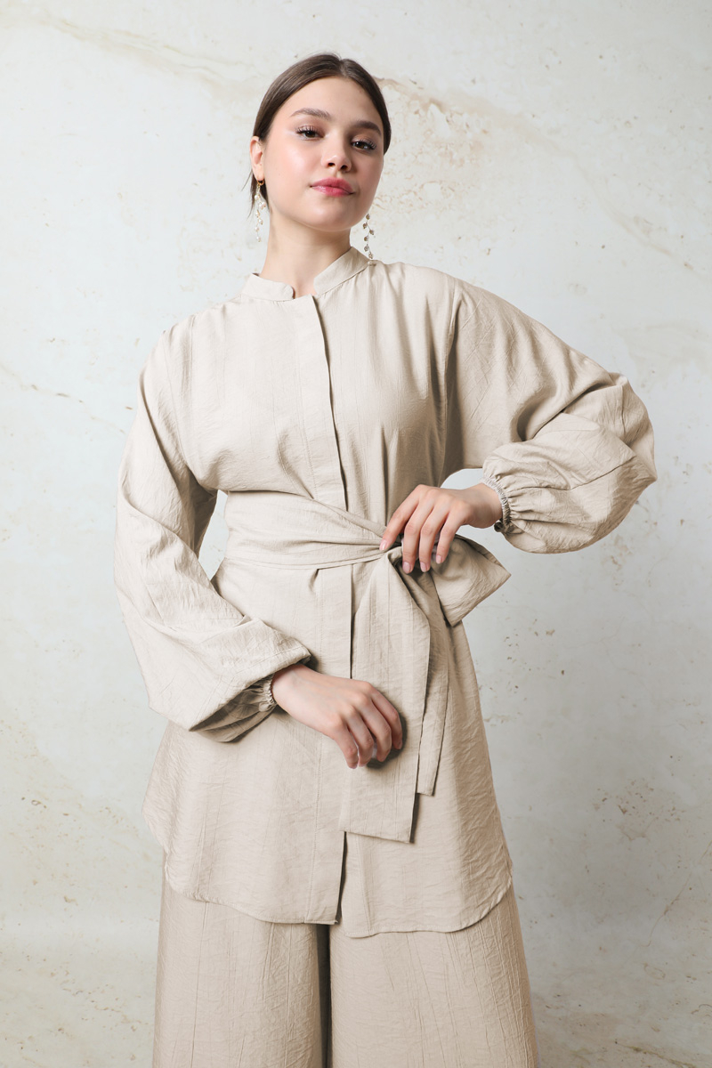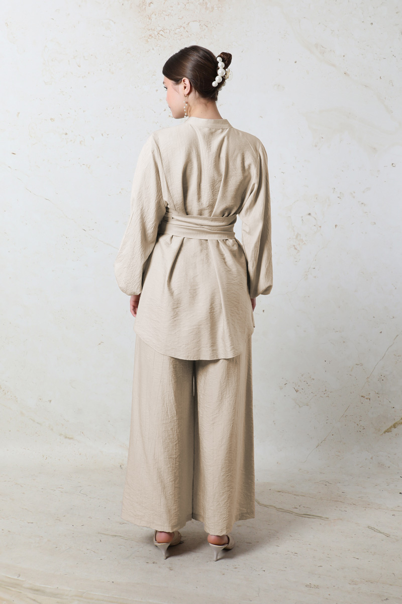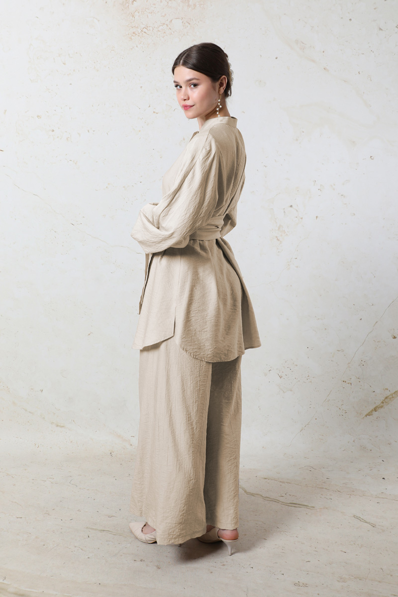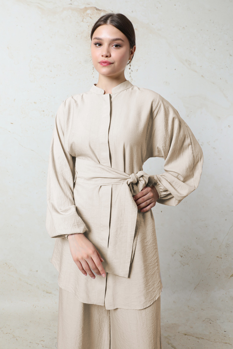 Kendinden Kemerli İkili Takım Siyah. Dik Yakalıdır.Geniş Kesimdir.Pantolon beli lastiklidir. Yandan ceplidir. Günlük kullanım ve özel günlerinizde tercih edebilirsiniz.