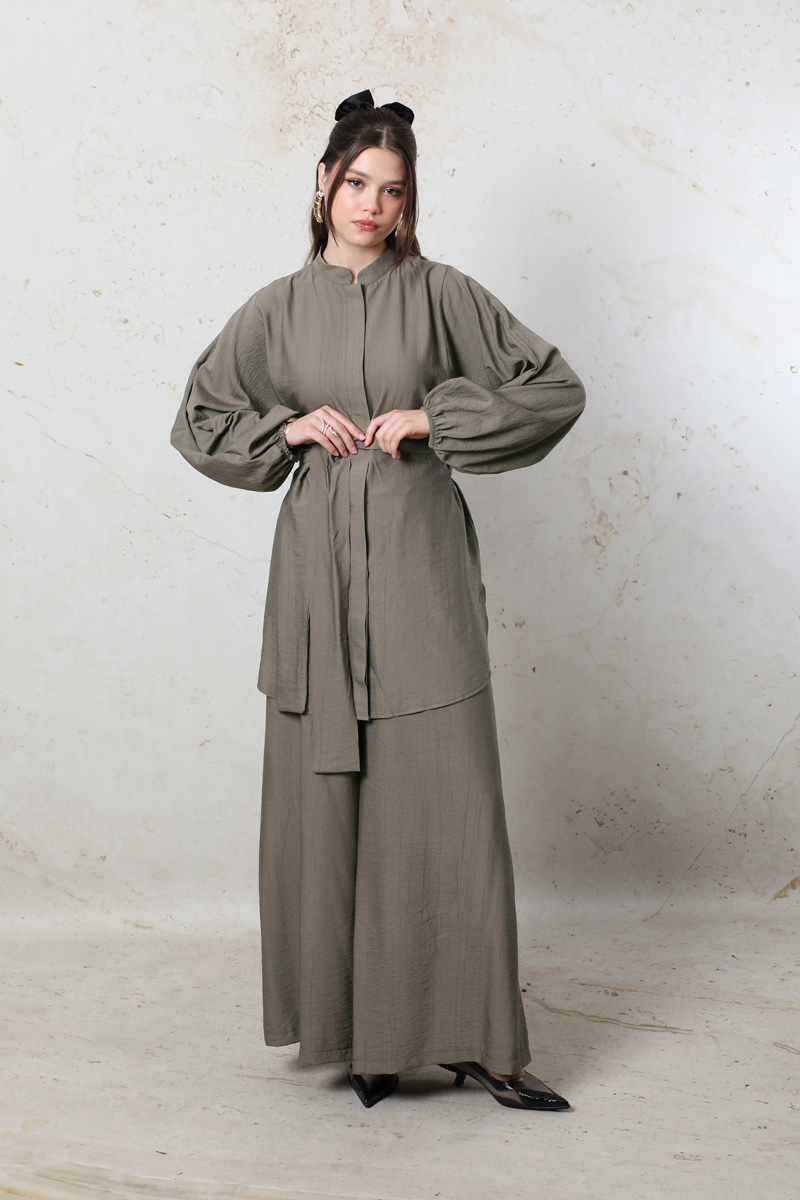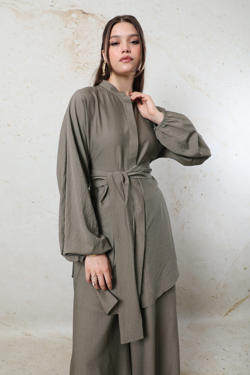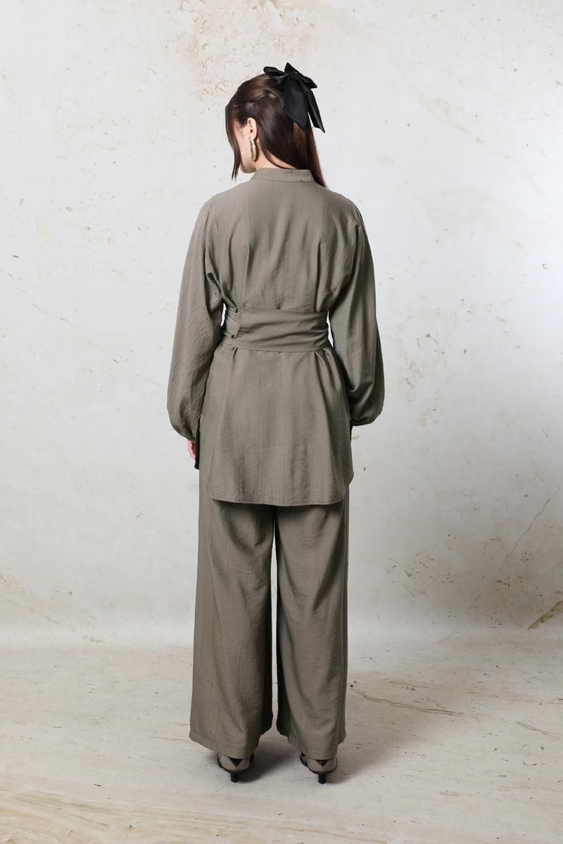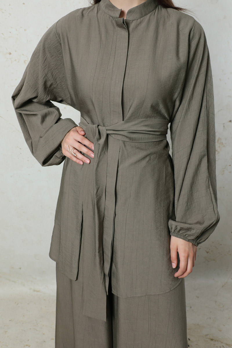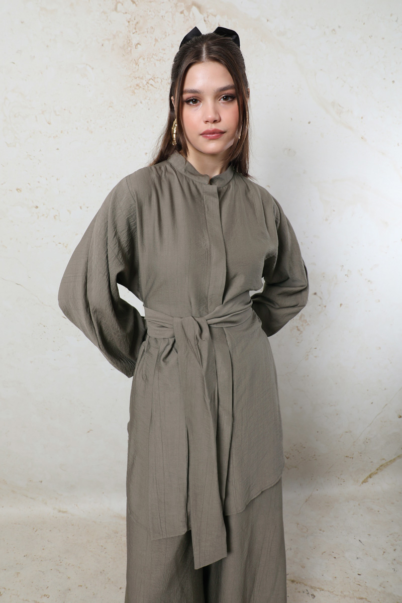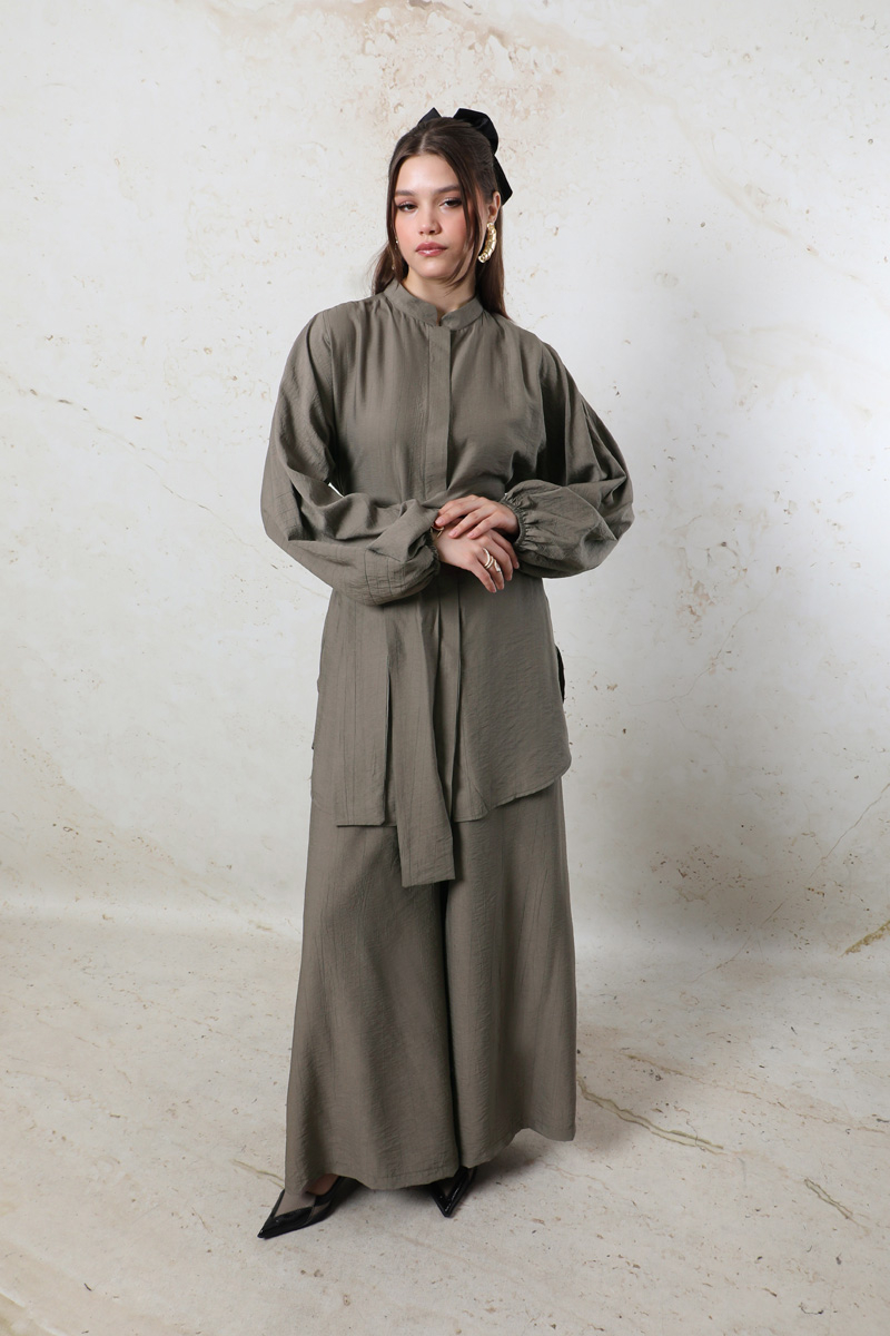 Kendinden Kemerli İkili Takım Siyah. Dik Yakalıdır.Geniş Kesimdir.Pantolon beli lastiklidir. Yandan ceplidir. Günlük kullanım ve özel günlerinizde tercih edebilirsiniz.