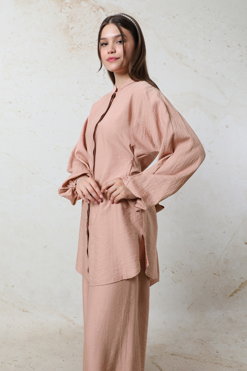 Kendinden Kemerli İkili Takım Siyah. Dik Yakalıdır.Geniş Kesimdir.Pantolon beli lastiklidir. Yandan ceplidir. Günlük kullanım ve özel günlerinizde tercih edebilirsiniz.