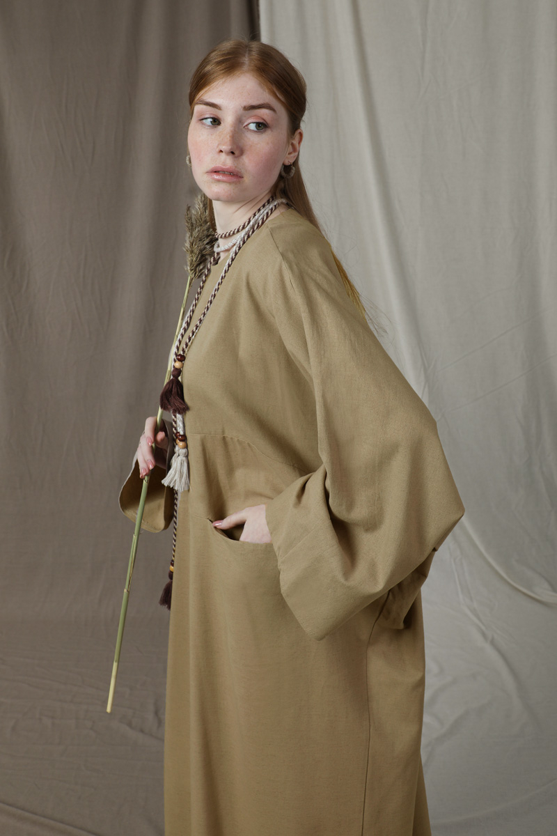 Salaş Keten Elbise Camel. Düşük omuzlu. Yarasa kol detaylıdır. Arkadan gizli fermuarlıdır. Önden torba ceplidir. Günlük kullanım ve özel günlerinizde tercih edebilirsiniz.