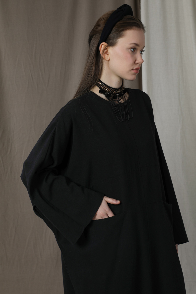 Salaş Keten Elbise Siyah