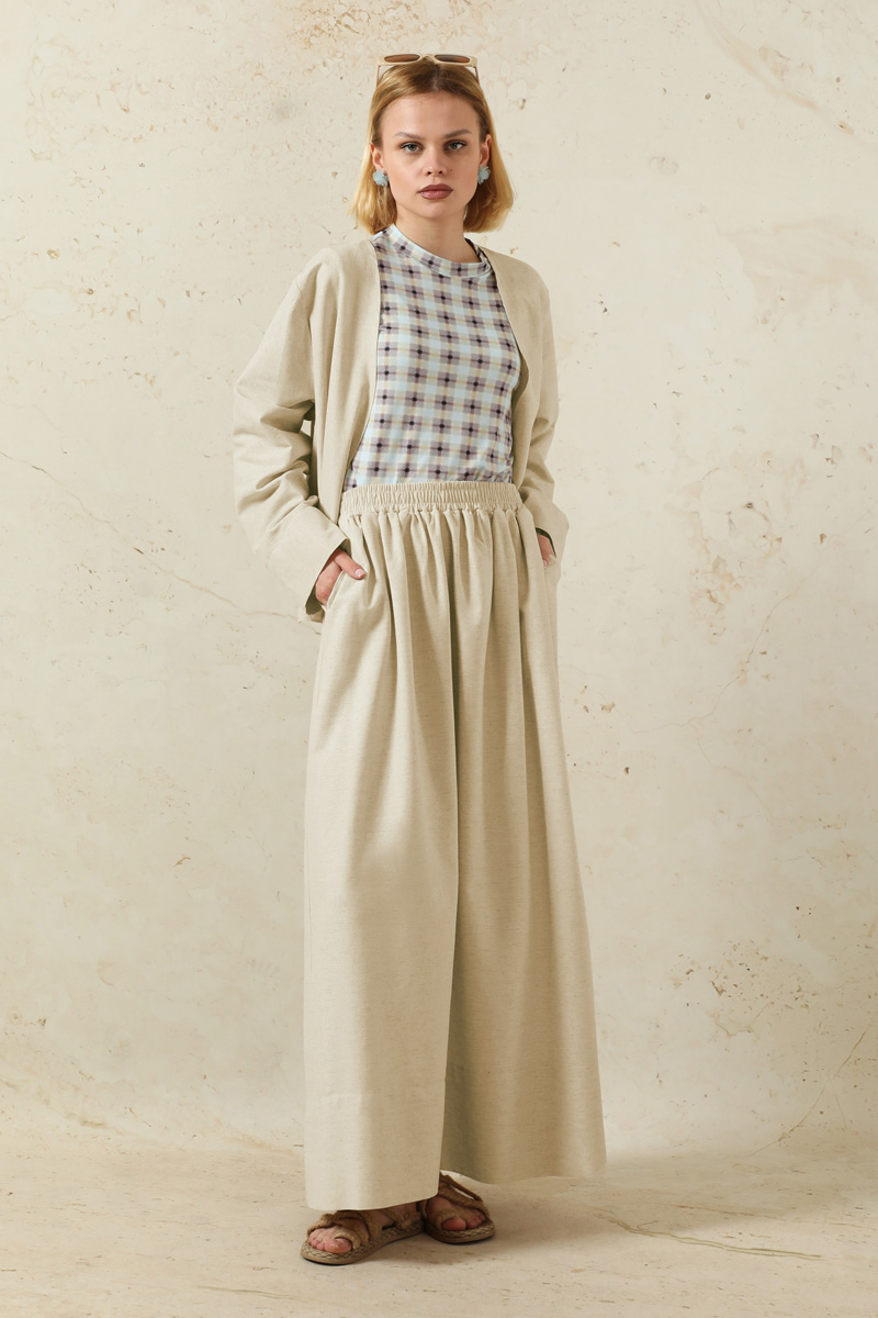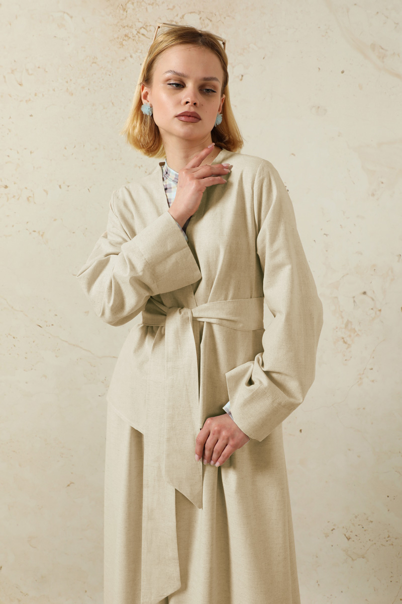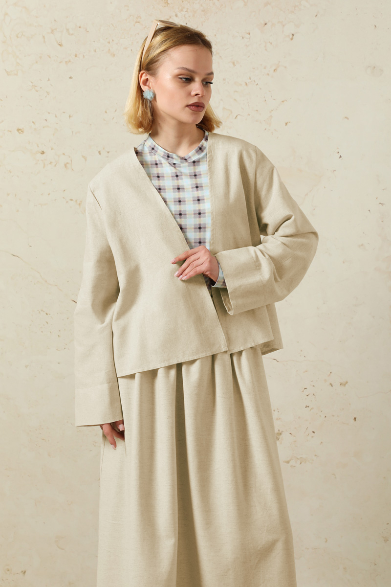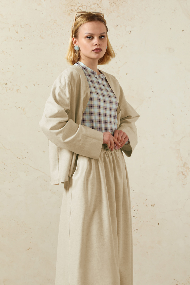 Kimonolu Etek Takım Taş. Kol ve etek ucu geniş dikiş detaylıdır. Etek Beli lastiklidir. Etek yan ceplidir. Geniş kuşaklıdır. Günlük kullanım ve özel günlerinizde tercih edebilirsiniz.