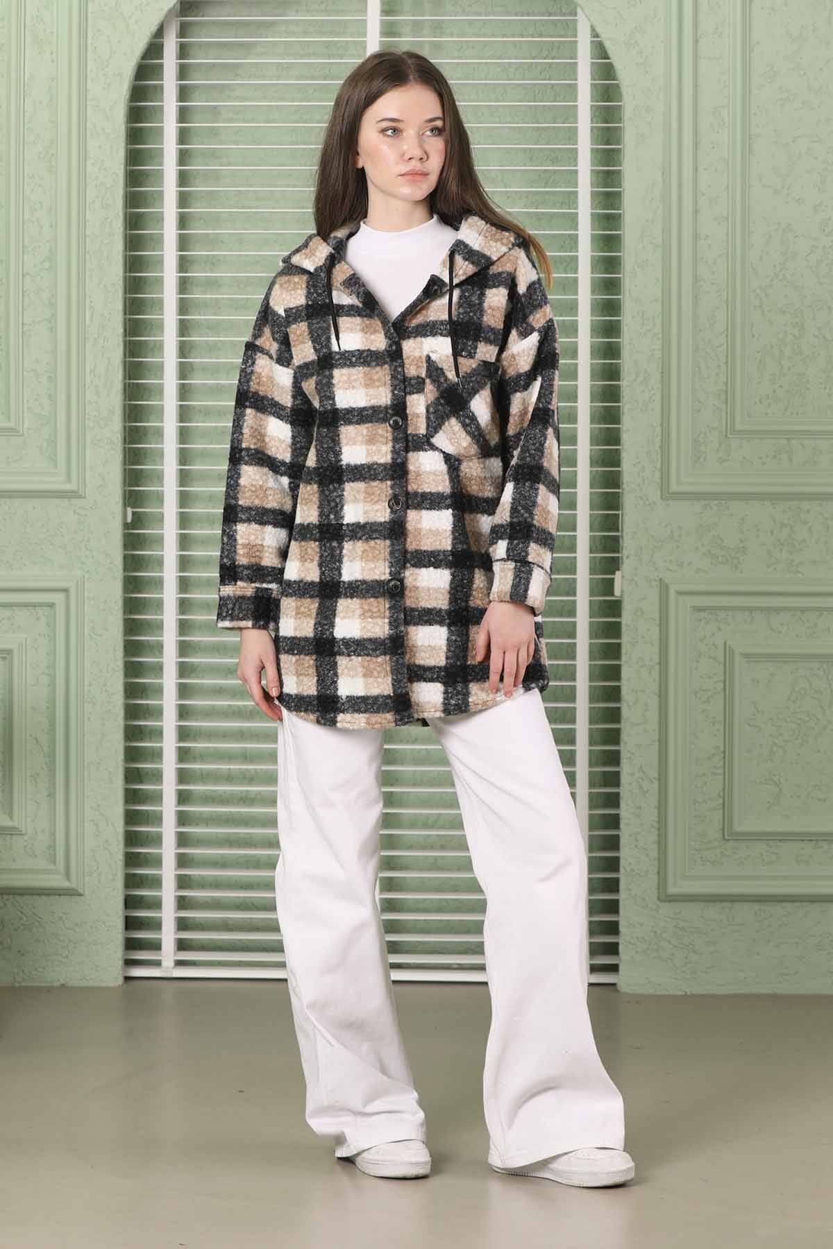 Kıvırcık Kapüşonlu Gömlek Ceket Bej