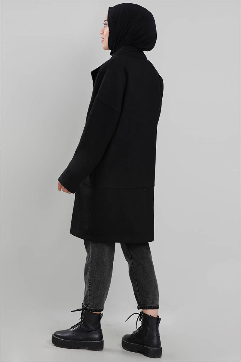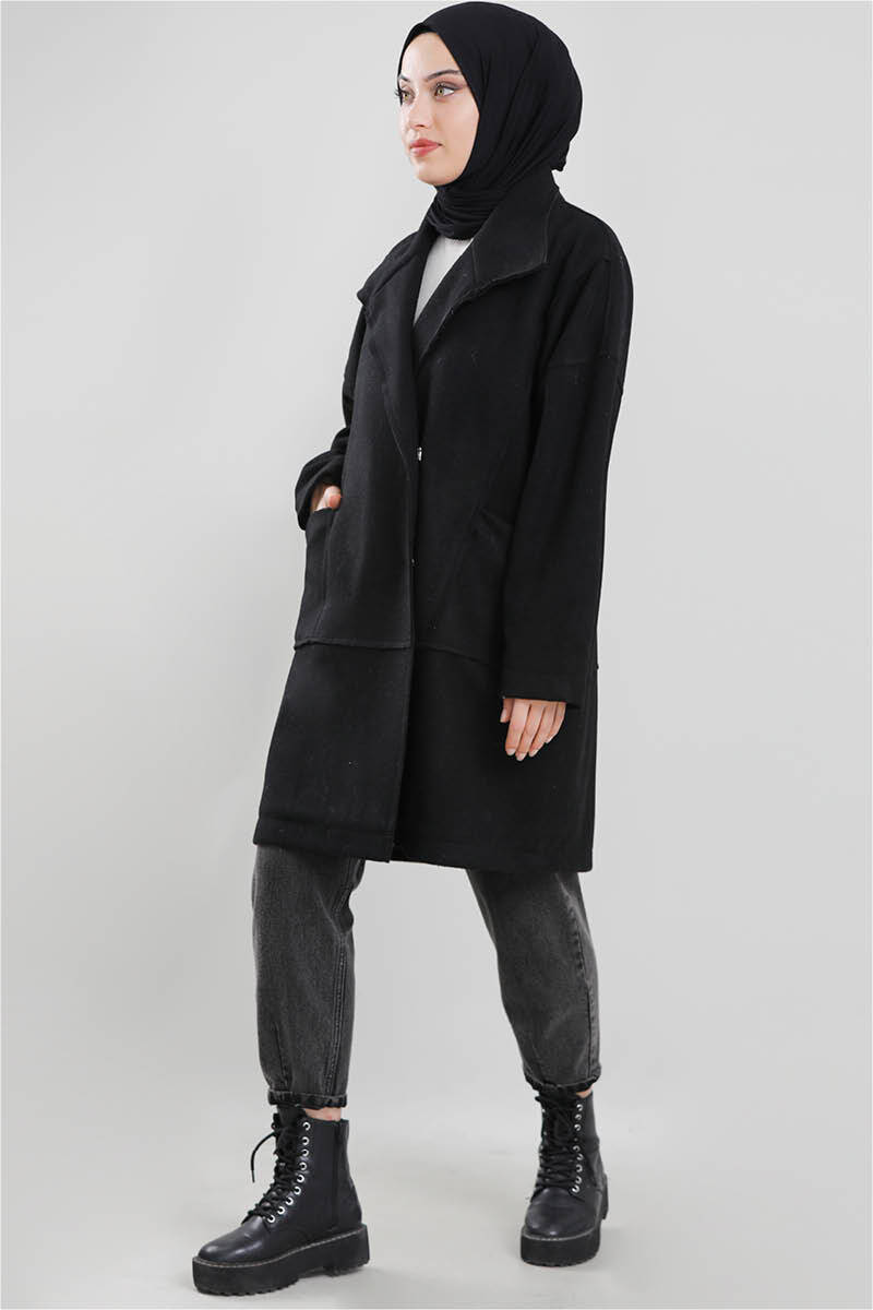 Düşük omuz, kruvaze kapama çıtçıtlı, yandan cepli, astarlı.