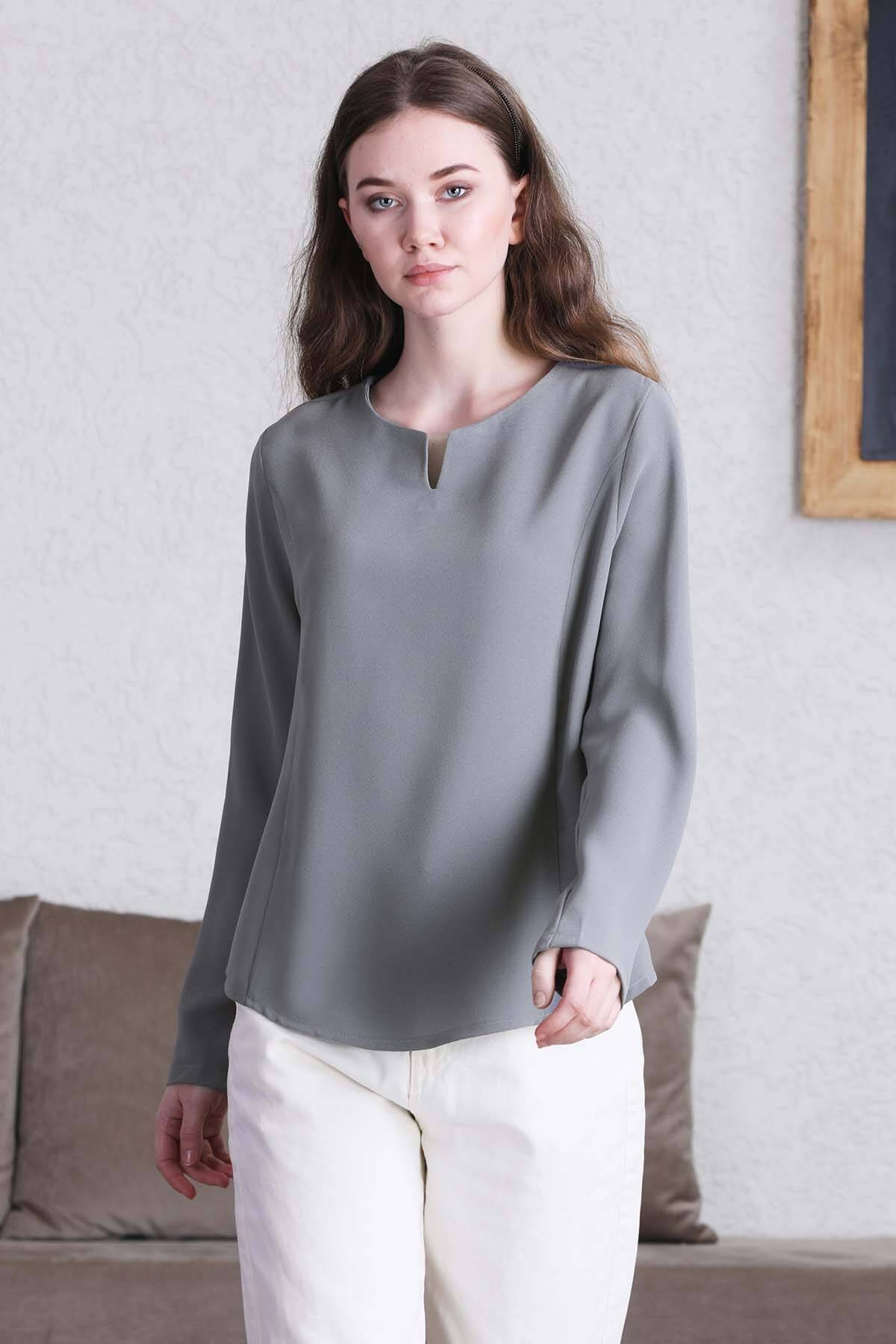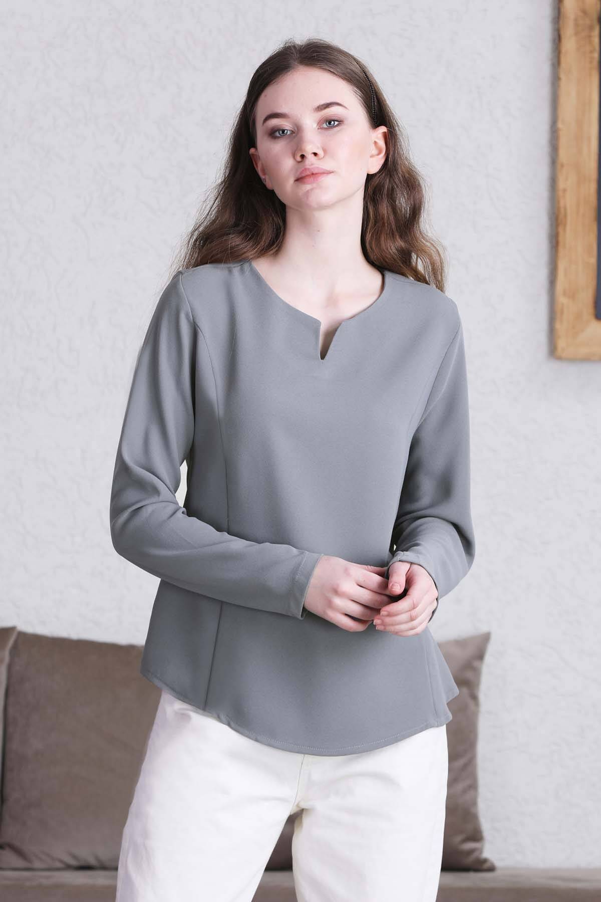 Klasik Bluz Koyu Gri. Yakasında damla detaylı dikiş mevcuttur. Etek, pantolon üstlerinde tercih edebilirsiniz. Rahat Kalıp.