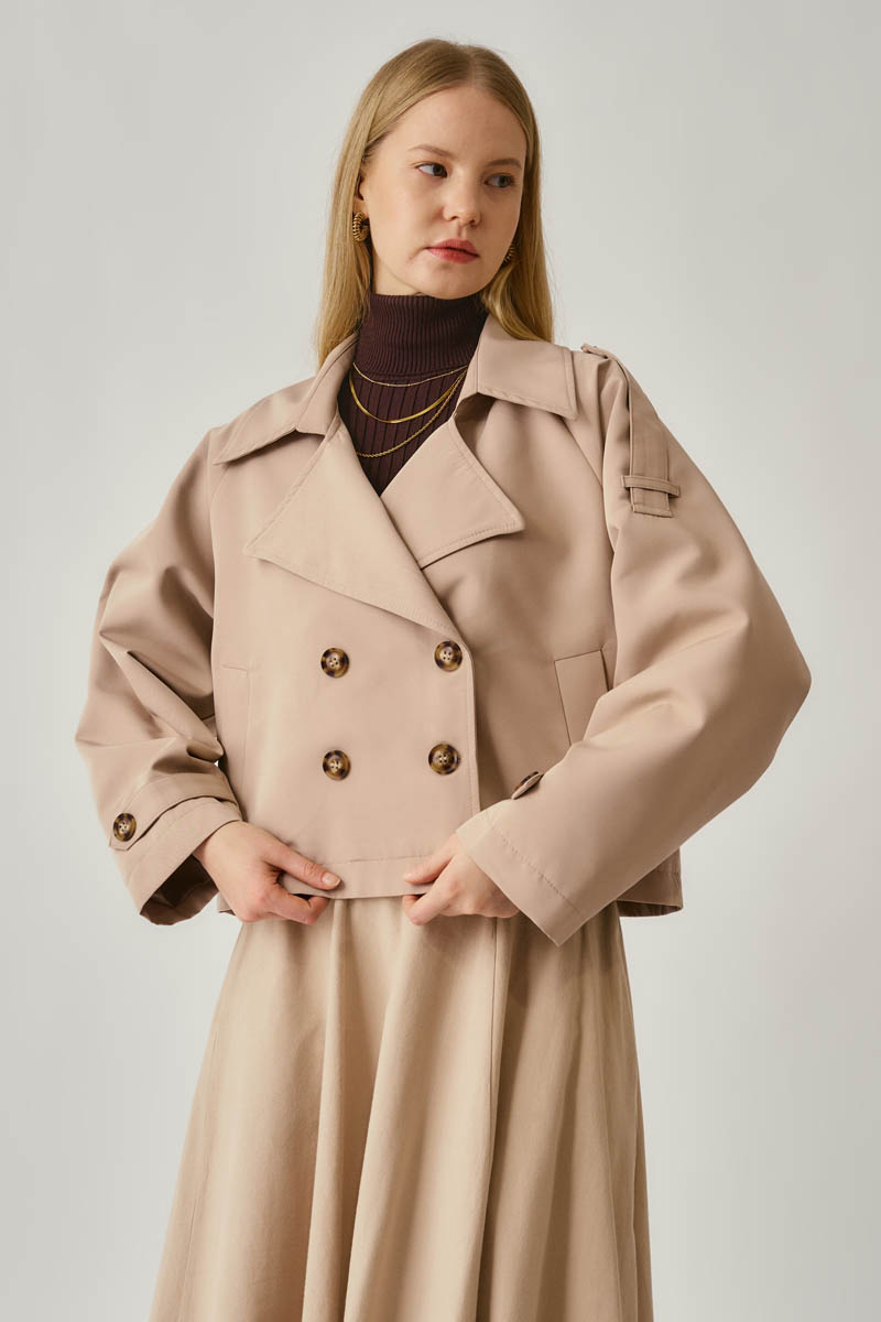 Klasik Kısa Trençkot Taş