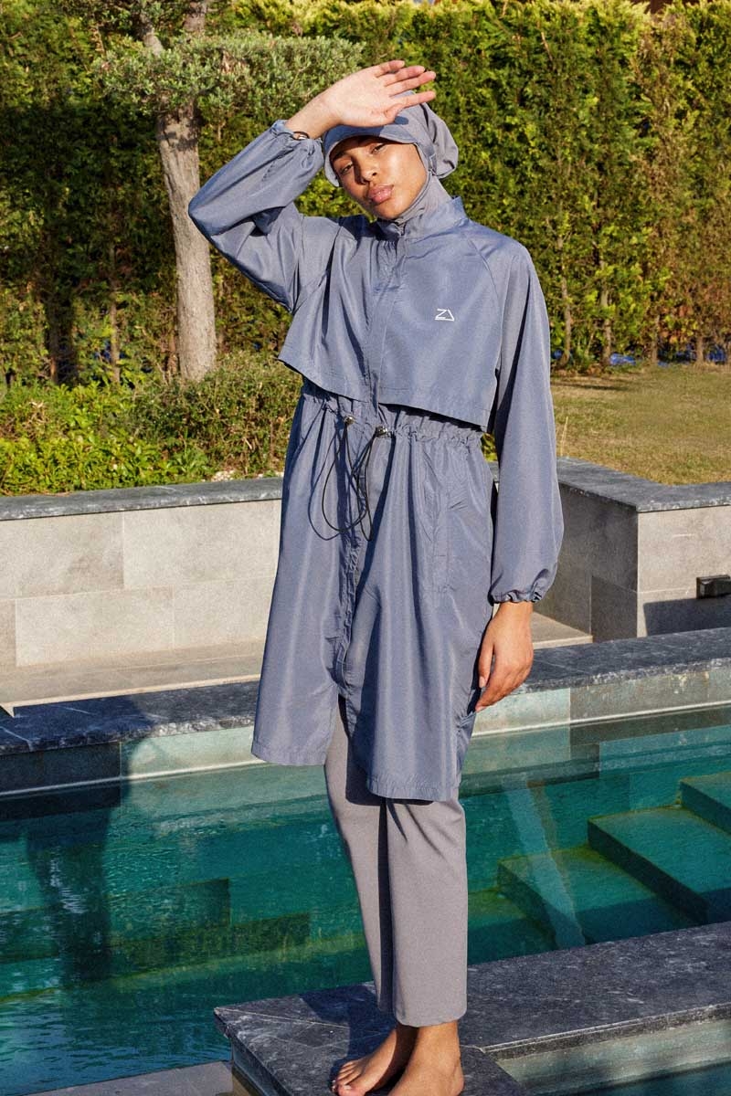 Klasik Tesettür Mayo Takımı Gri. Hakim yakalıdır, ürünün bel kısmında ayarlanabilir stoper mevcuttur, rüzgarlıklıdır, yandan kısa yırtmaçlıdır, önden gizli fermuarlıdır, önden cepli ve cepleri fermuarlıdır. Paket İçeriği:Tayt, üst tunik ve bonesi takım olarak satılmaktadır. (Şapka takıma dahil değildir.)
