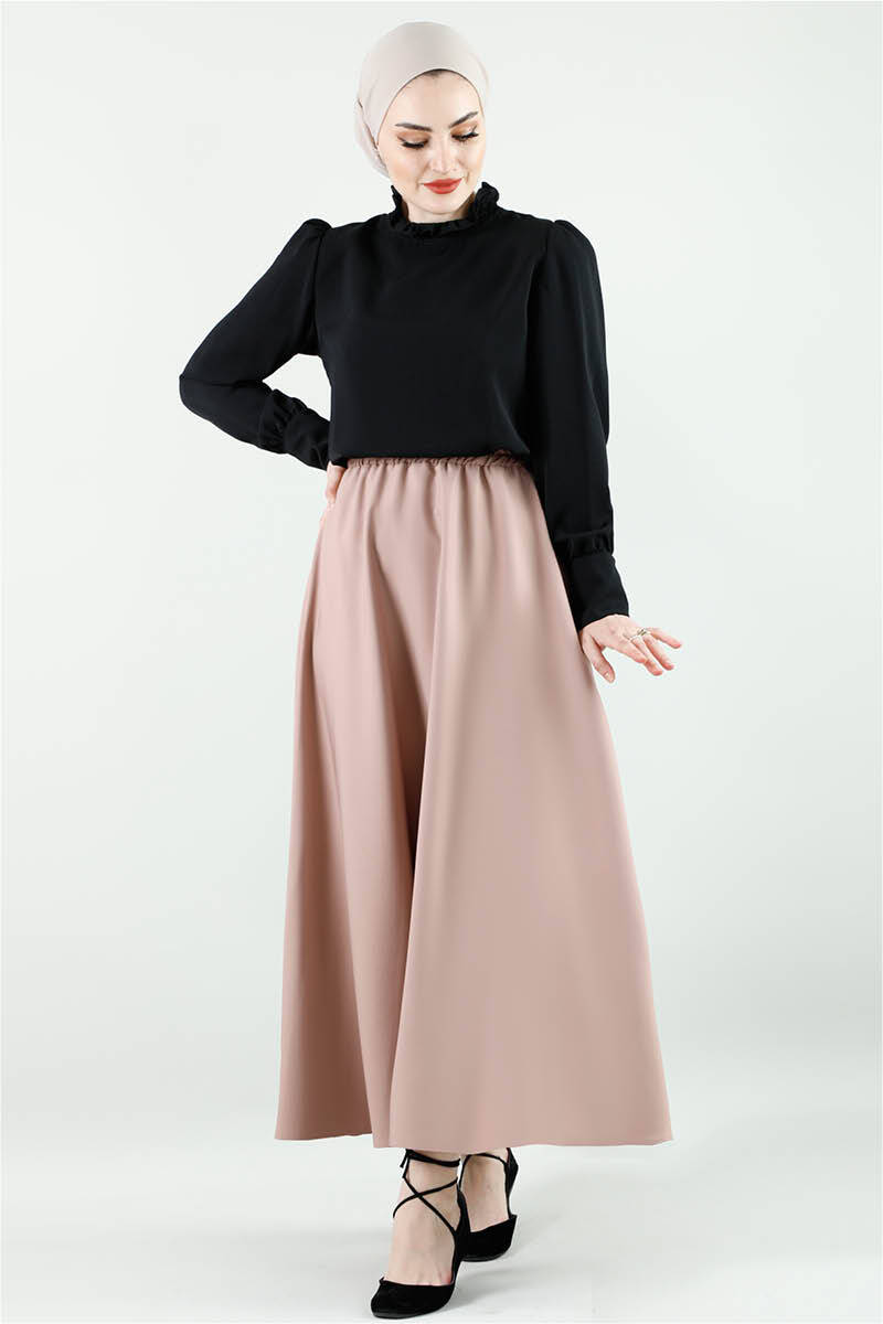 Yeni sezon ürünüdür. Beli lastiklidir Rahat kalıptır. Kloş kesimdir.