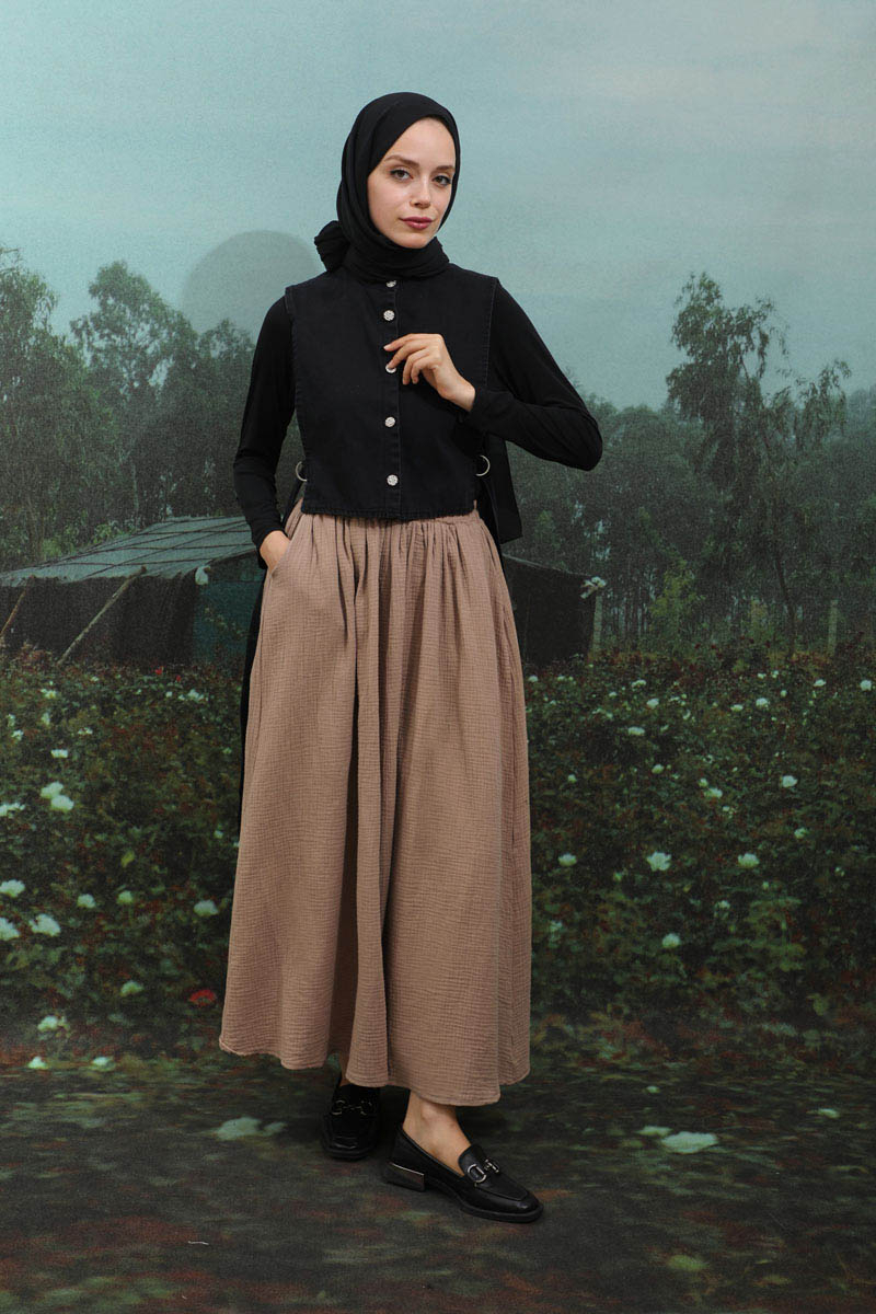 Kloş Müslin Etek Vizon