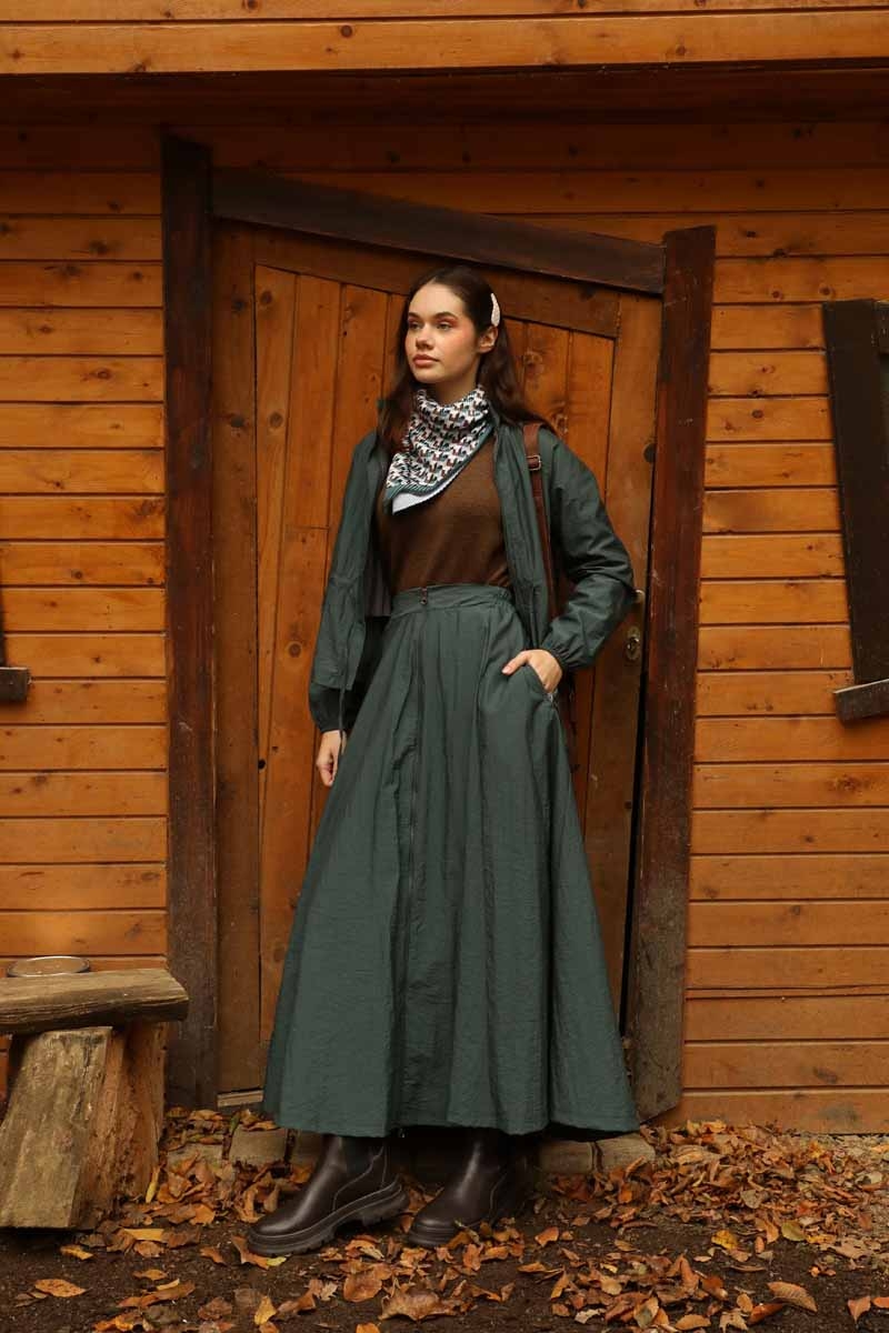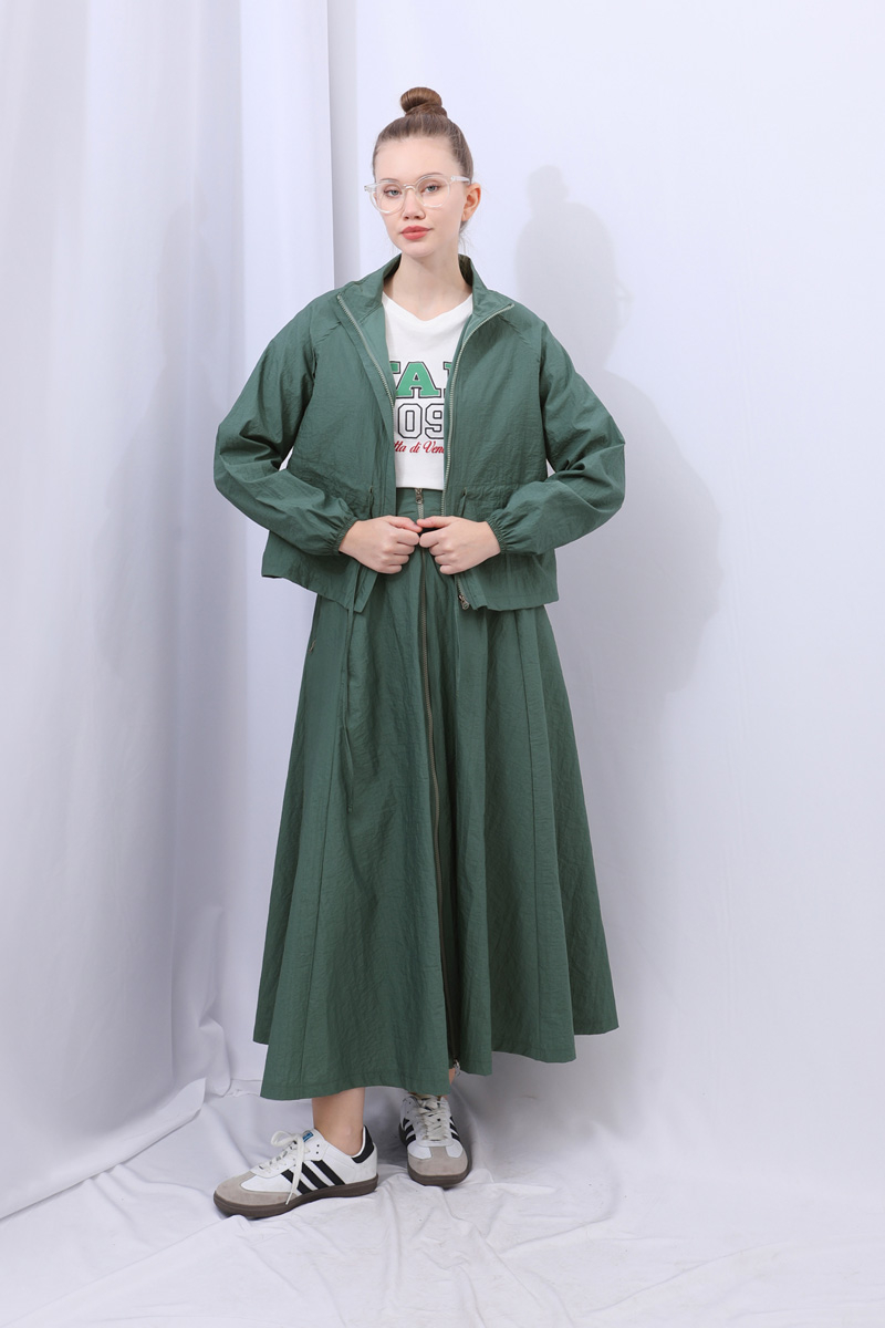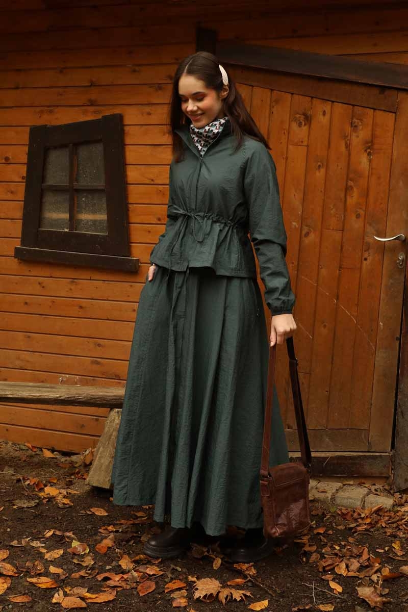 Kloş Paraşüt Etek Takım Zümrüt