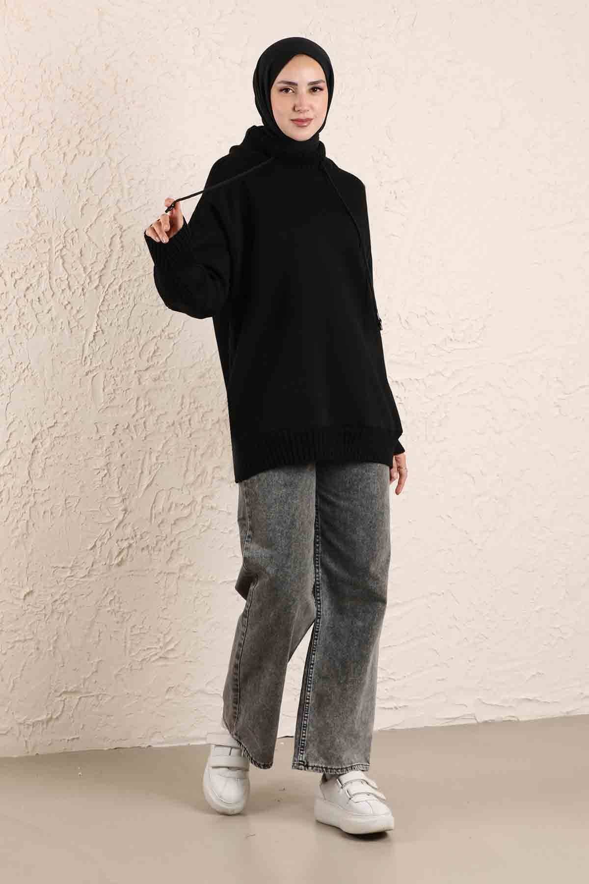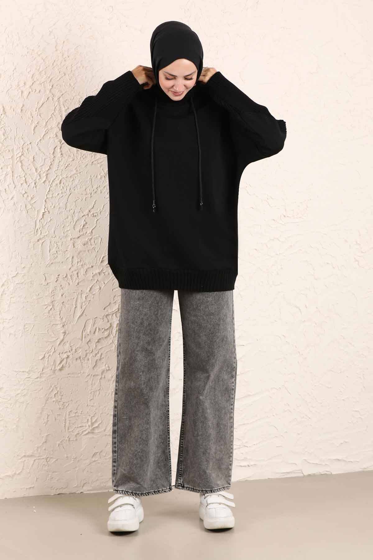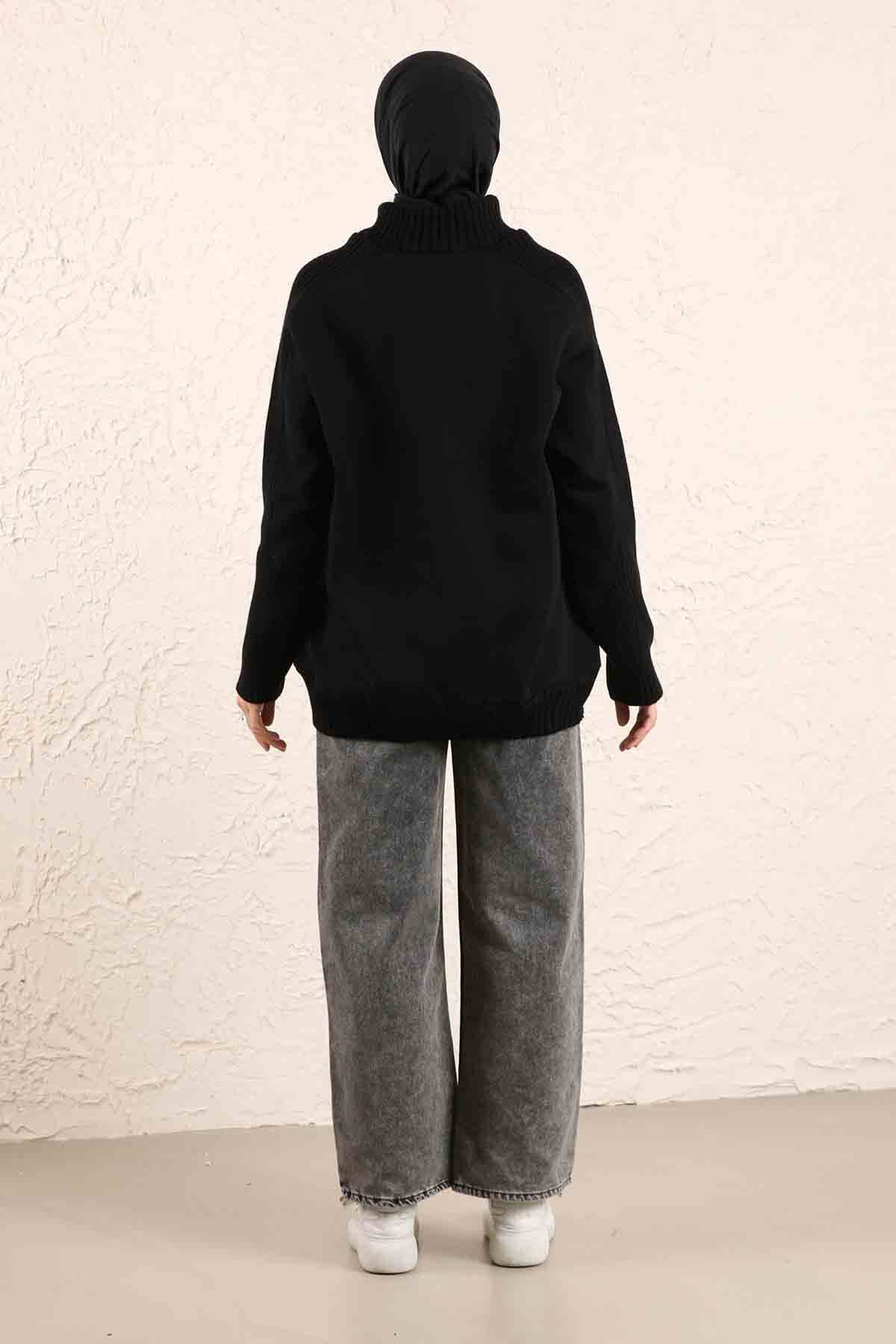 Knitted Sweat Black. There are knitted knitwear details on the collar, sleeve and hem. It is a straight tie collar.