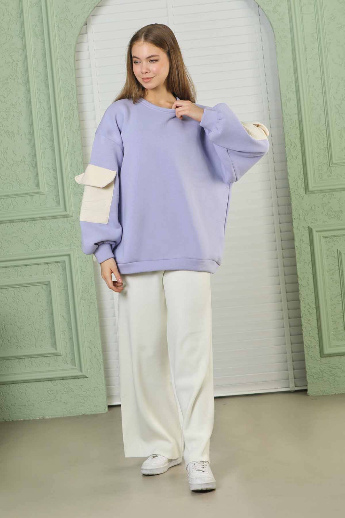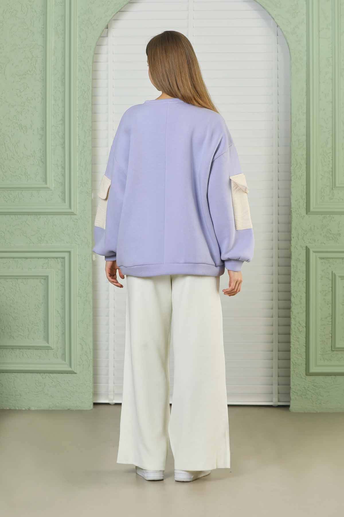Kolları Cepli Oversize Sweat Lila. Oversize model