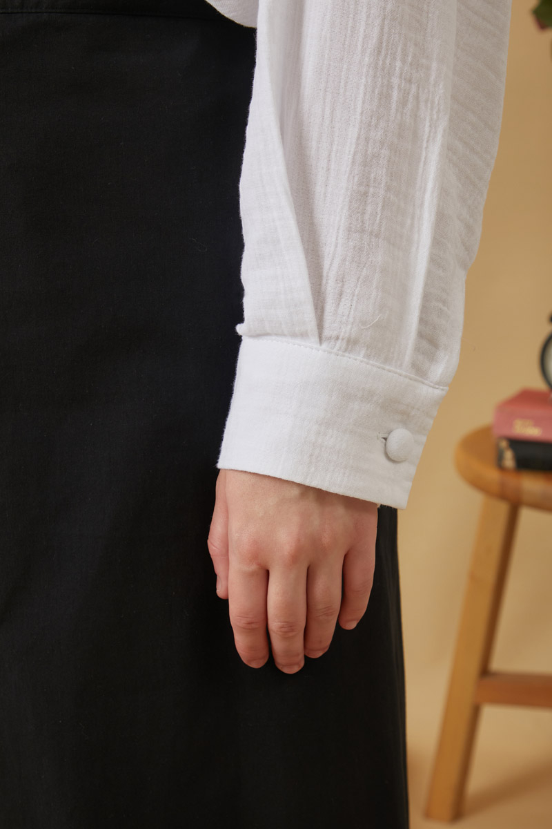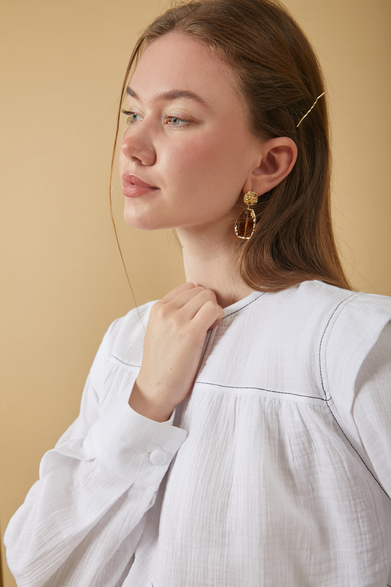 Kontrast Dikişli Müslin Bluz Beyaz