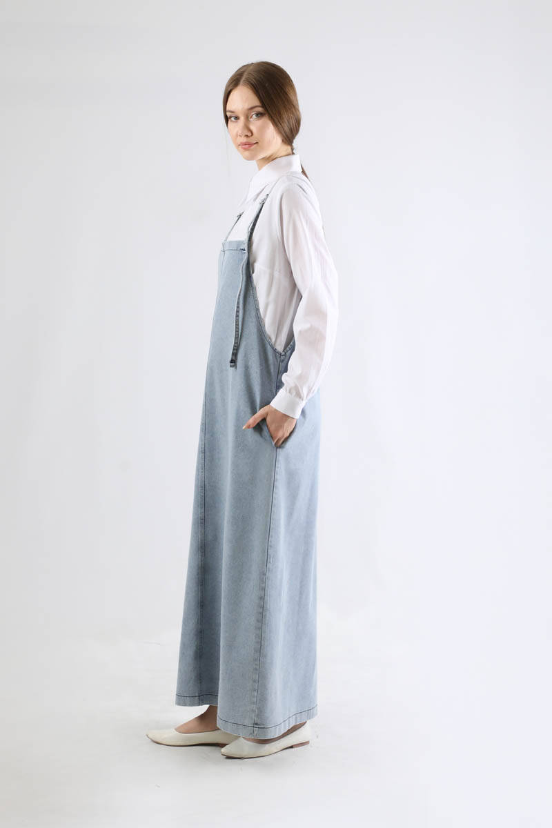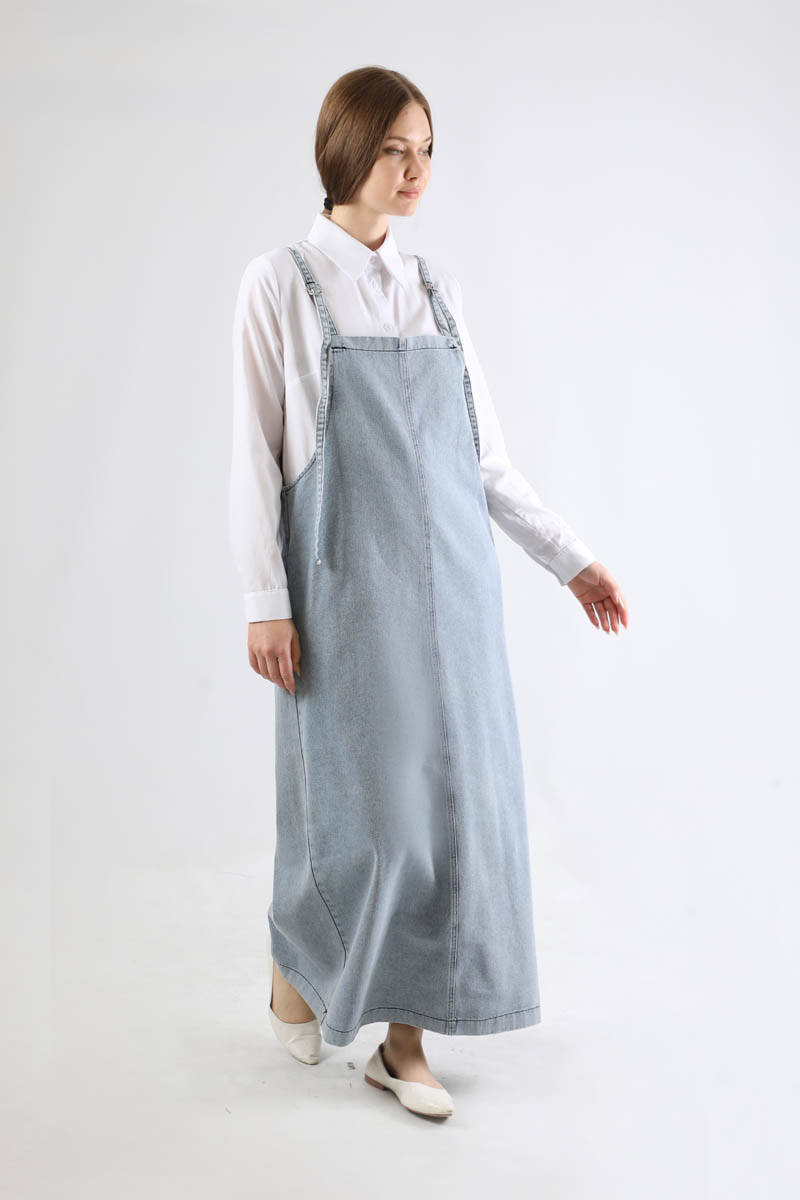 Kot Jile Elbise Açık Mavi. omuz askısı ayarlanabilirdir. Yandan ceplidir. Düz kesmdir. Günlük kullanım ve özel günlerinizde tercih edebilirsiniz.