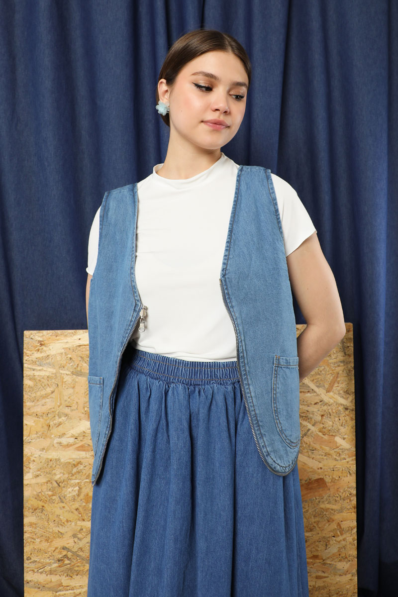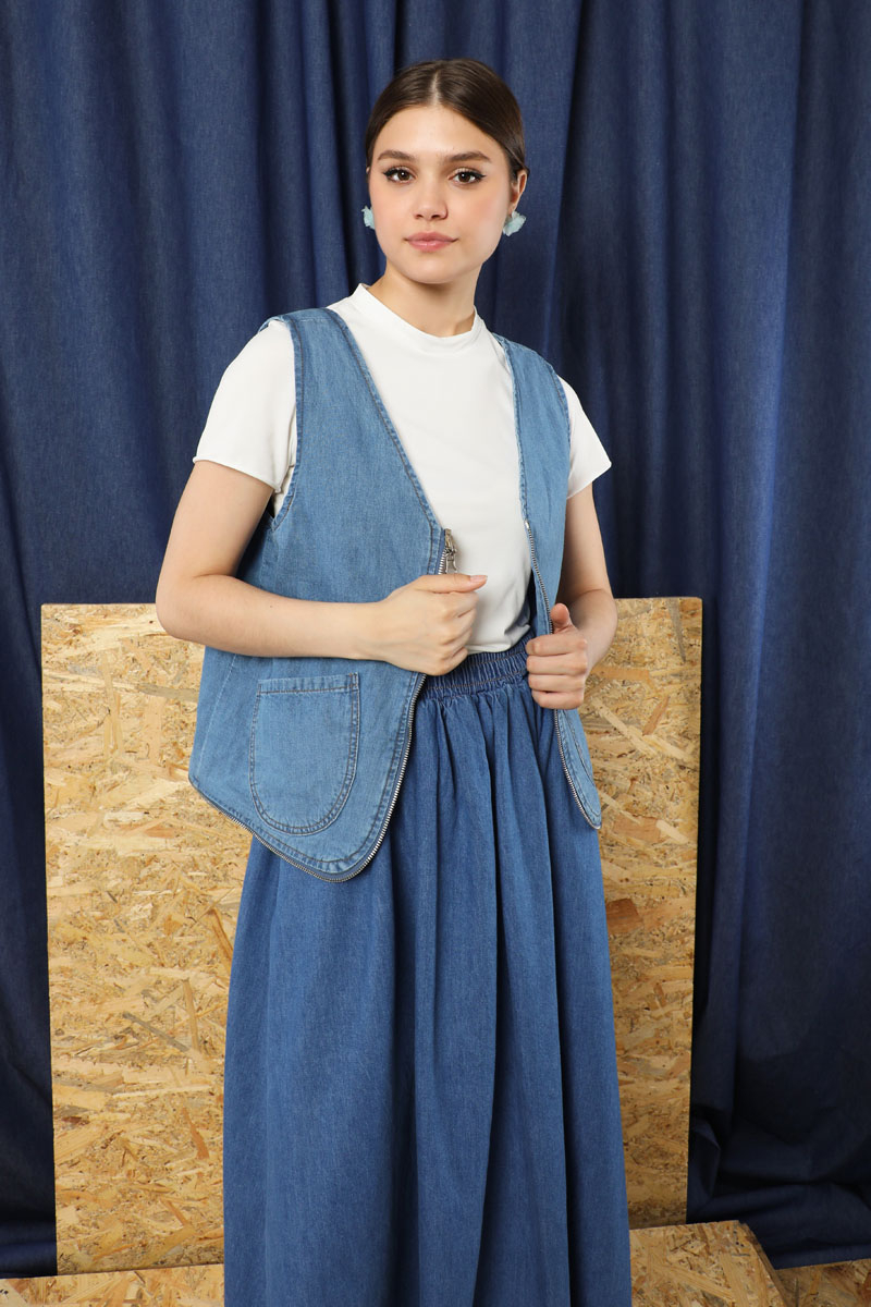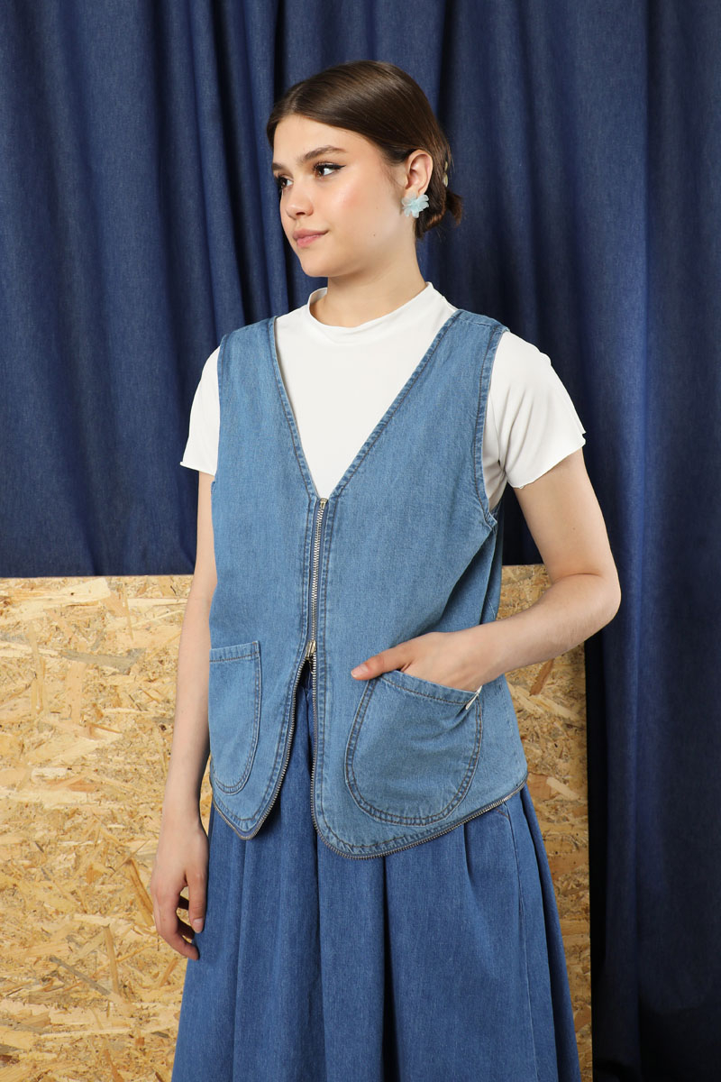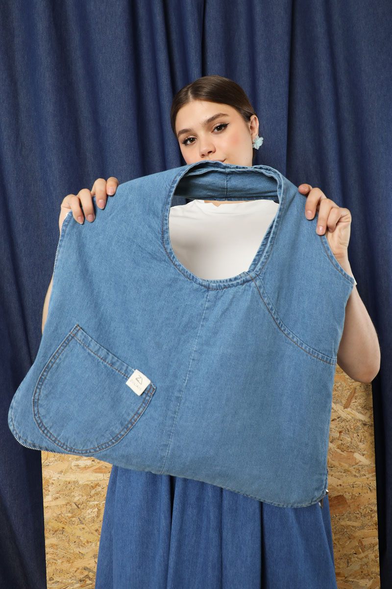 Kot Yelek Çanta mavi. Ürünümüz fermuarı tam kaparıldığında çanta yarım kapatıldığında yelek olarak kullanlılabilmektedir.İç Ve dış kısımlarında birden fazla cepleri mevcuttur.