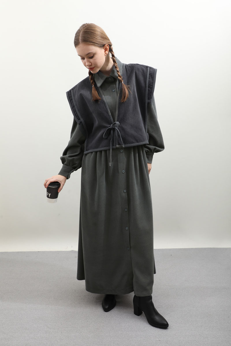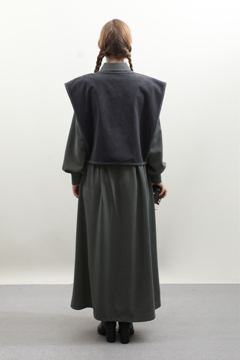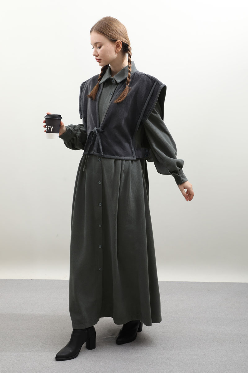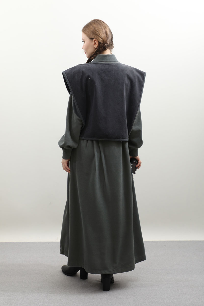 Kot Yelekli Triko Elbise Antrasit. Gömlek yakadır, önden ceplidir, belden pile detaylıdır, yandan ceplidir. astarsızdır. Yelek kenarları elbise kumaşından biye detaylıdır, v yakadır, önden bağlamalıdır, yanlarıdan düğme detaylıdır. Günlük kullanım ve özel günlerinizde tercih edebilirsiniz.