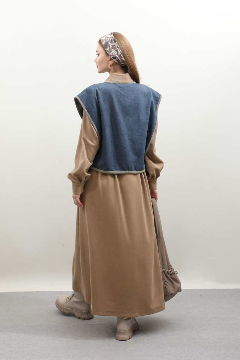Kot Yelekli Triko Elbise Vizon