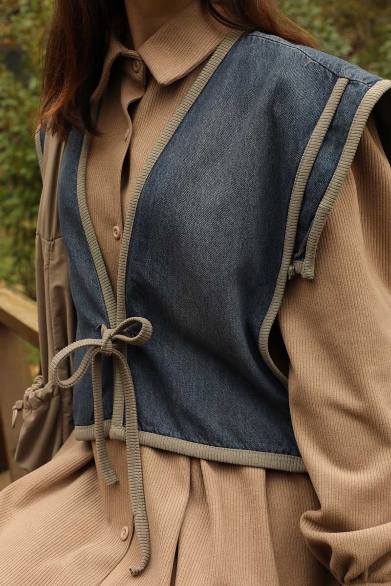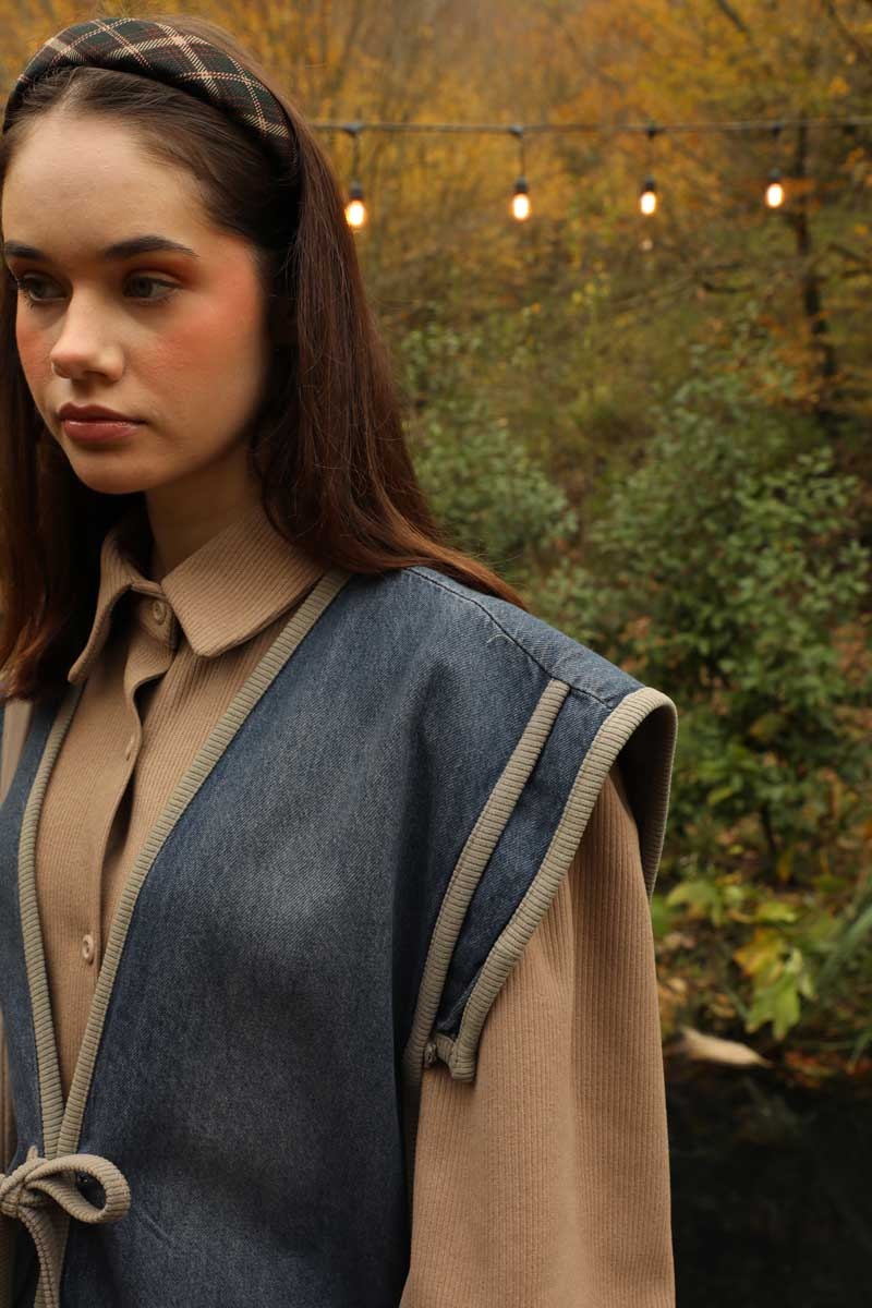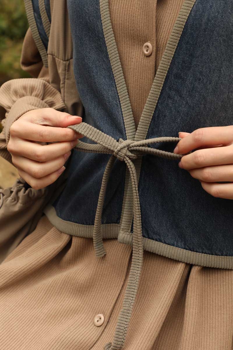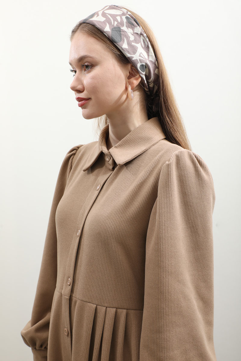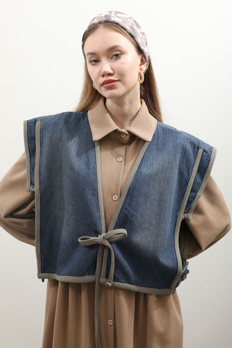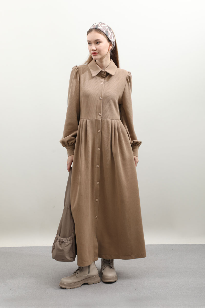 Kot Yelekli Triko Elbise Vizon. Gömlek yakadır, önden ceplidir, belden pile detaylıdır, yandan ceplidir. astarsızdır. Yelek kenarları elbise kumaşından biye detaylıdır, v yakadır, önden bağlamalıdır, yanlarıdan düğme detaylıdır. Günlük kullanım ve özel günlerinizde tercih edebilirsiniz.