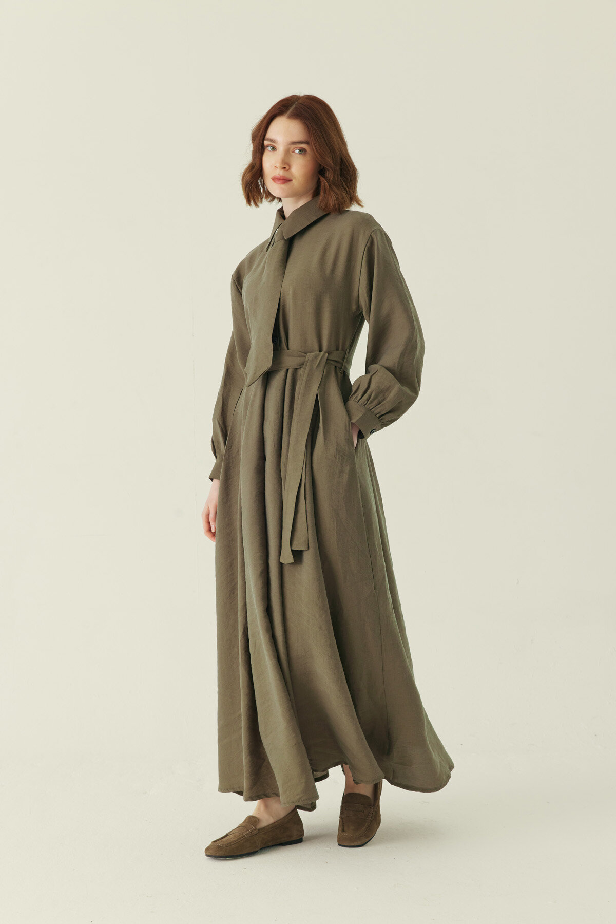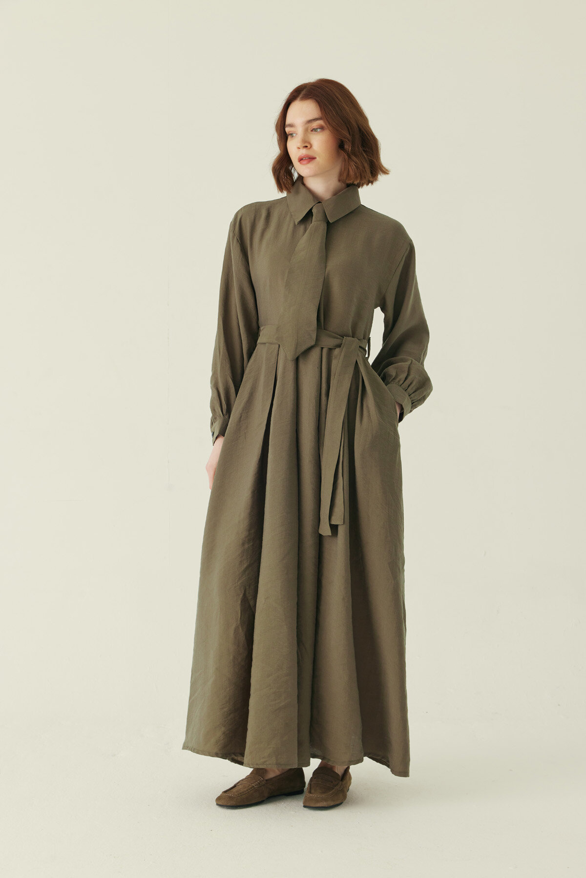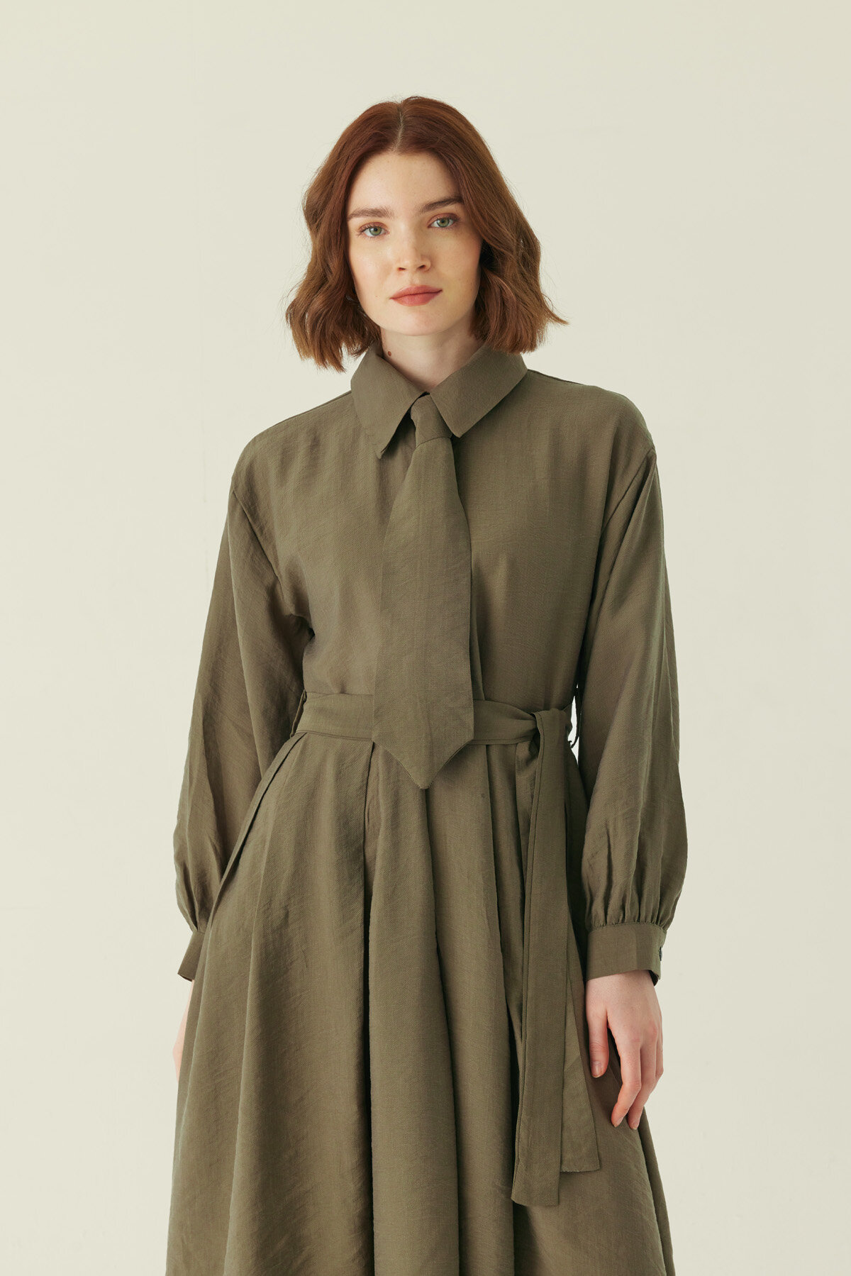 Zarif kravat detayıyla tasarımına güçlü bir karakter kazandıran Kravat Detaylı Elbise, akıcı ve dökümlü kumaş formuyla dengeli bir siluet sunar. Rahat kalıbı sayesinde gün boyu konfor sağlarken, hem günlük kombinlerde hem de özel günlerde şık bir görünüm elde etmenize yardımcı olur. Zamansız çizgisiyle farklı stil yorumlarına kolayca uyum sağlayan bir parçadır.