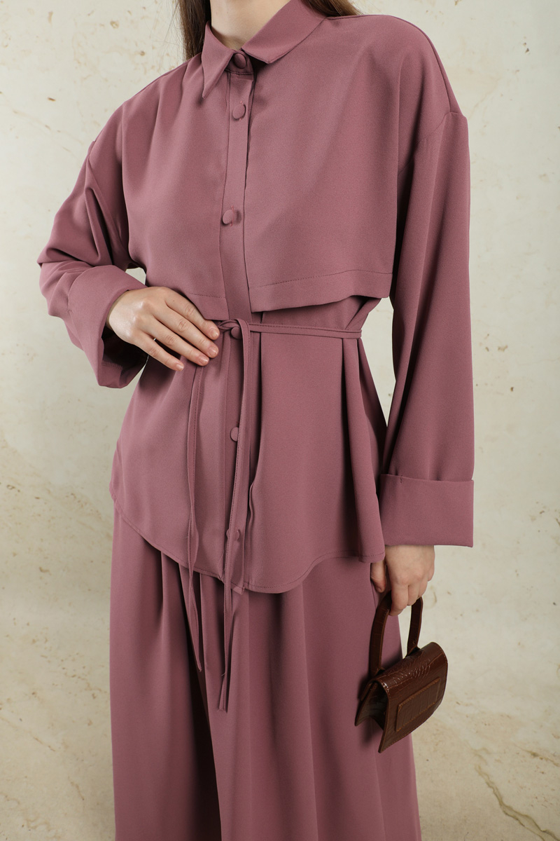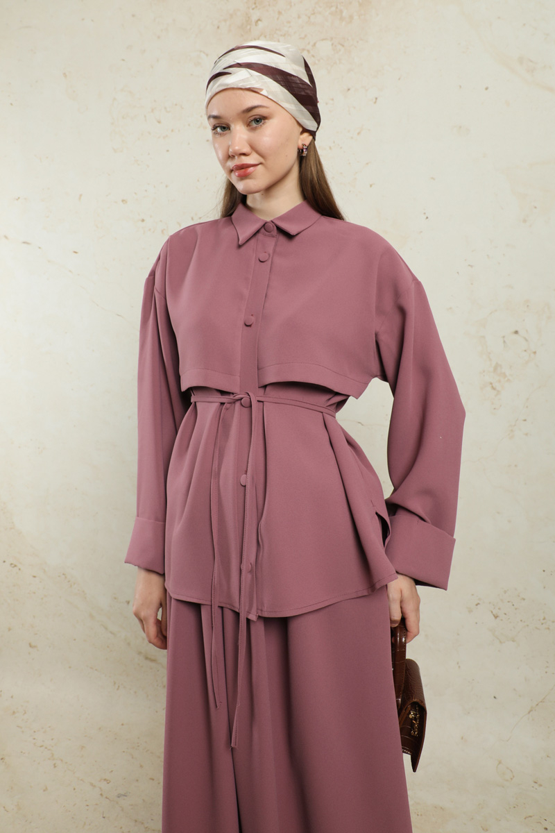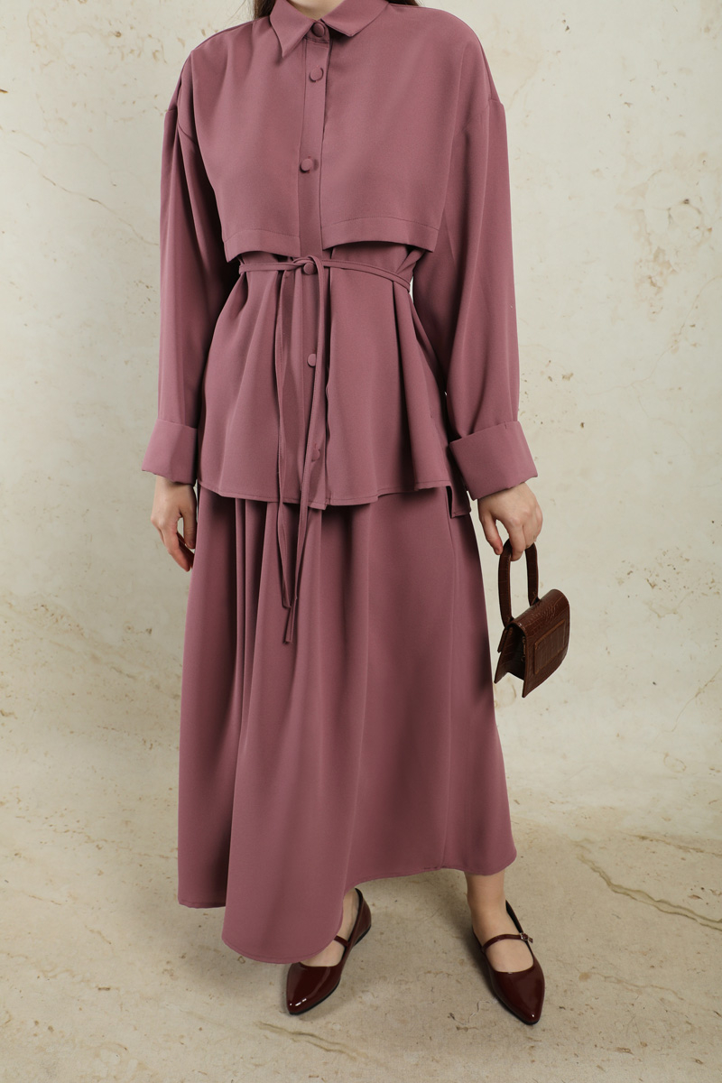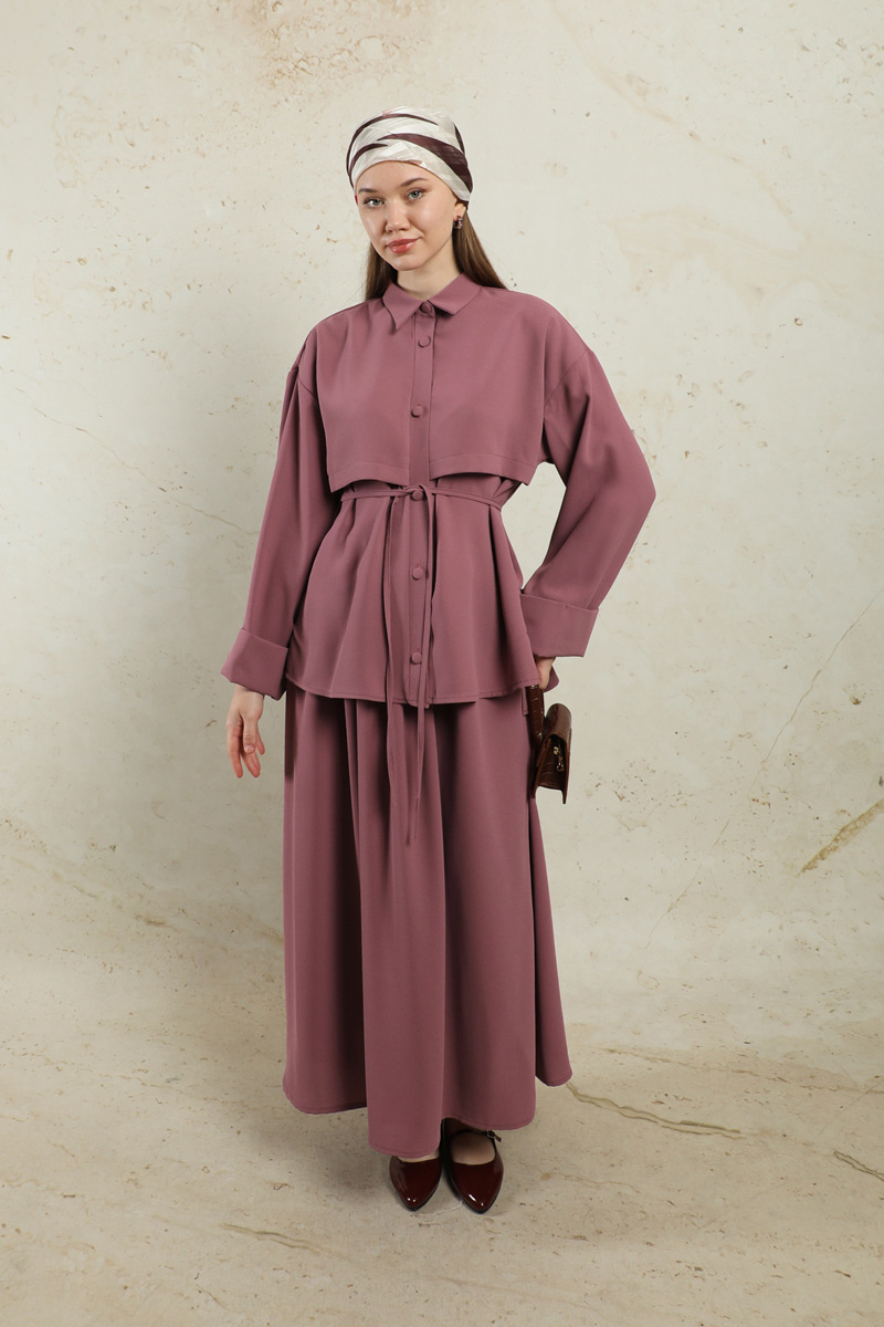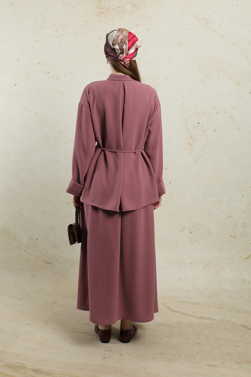 Krep Etek Takım Gül Kurusu. Düşük kolludur. Arkadan A pile detaylıdır. Önden düğmelidir. Yandan ceplidir. Duble kol detaylıdır. Etek beli lastiklidir. Beli İnce kuşaklıdır. Günlük kullanım ve özel günlerinizde tercih edebilirsiniz.