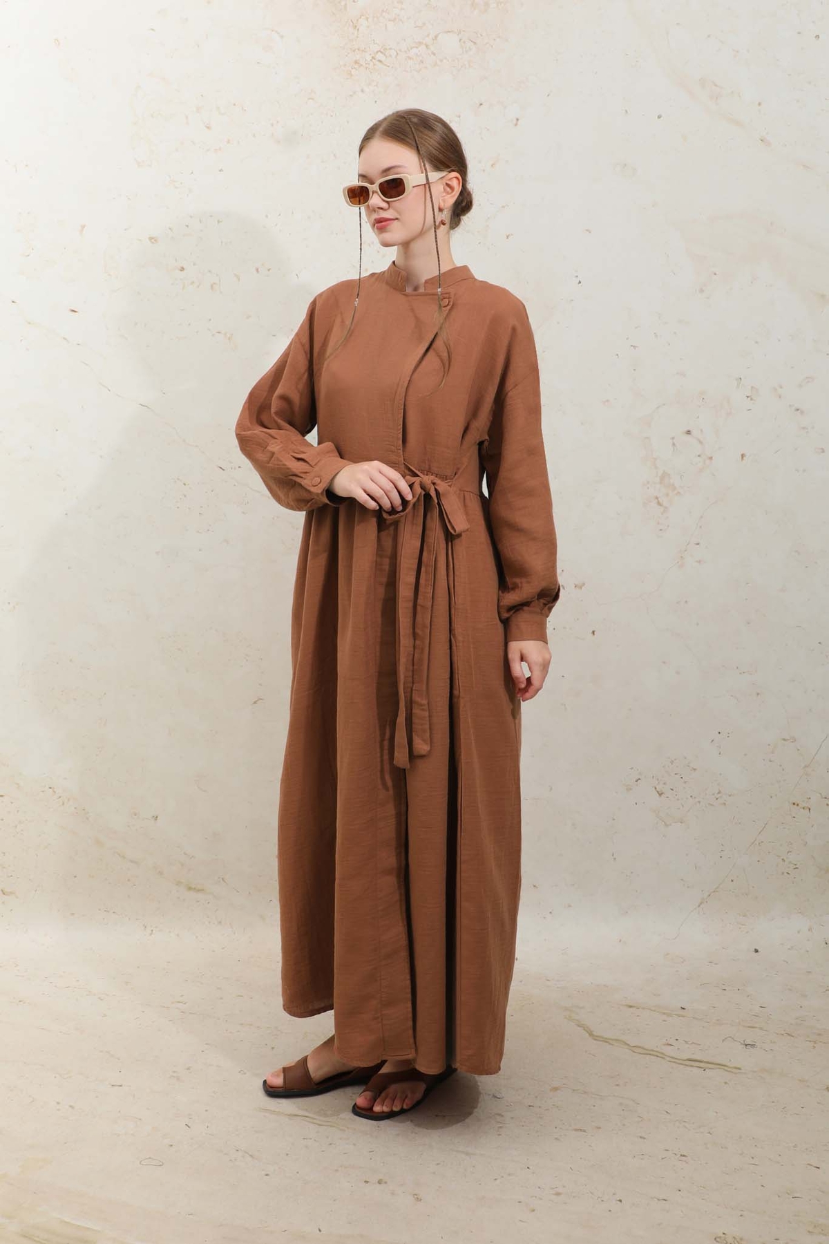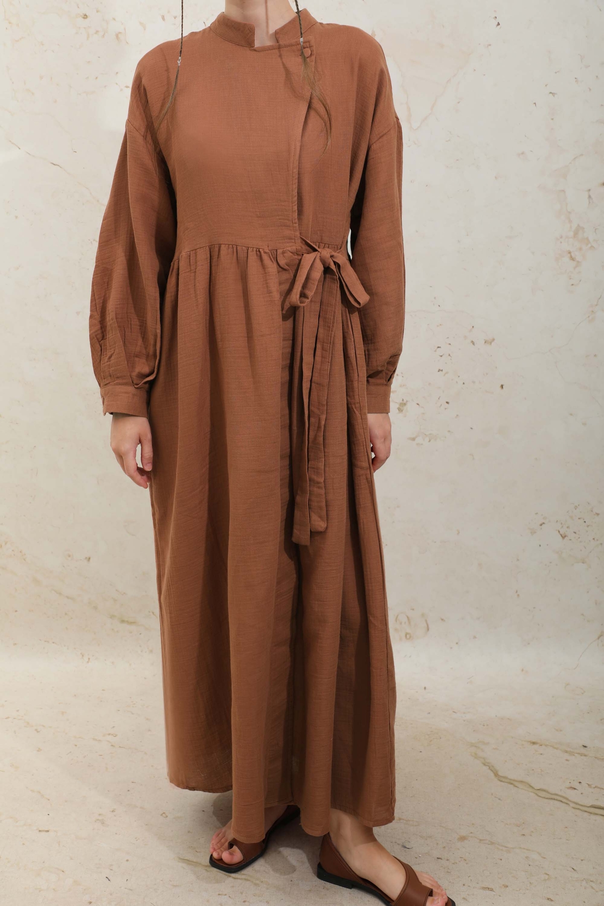 Kruvaze Bağlamalı Müslin Elbise Kiremit