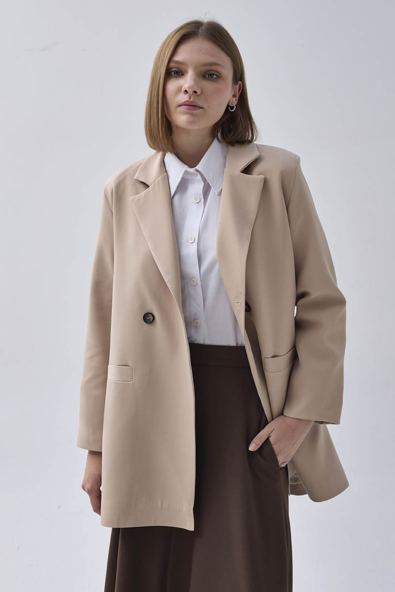Kruvaze Blazer Ceket Taş
