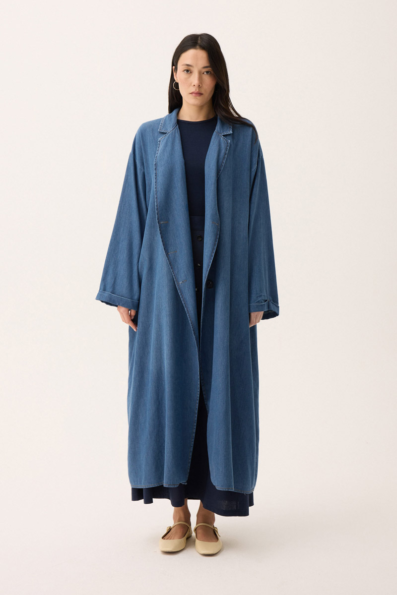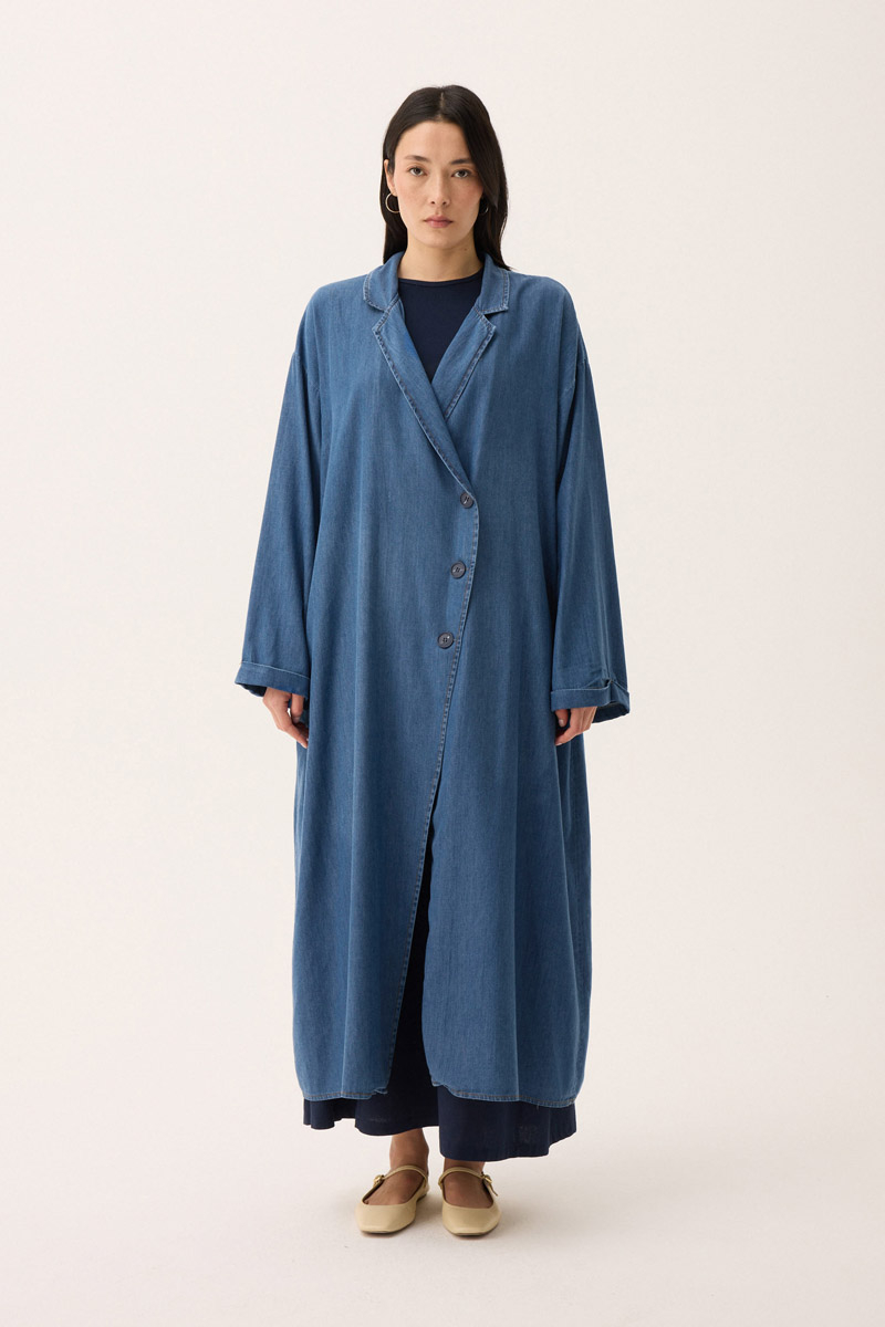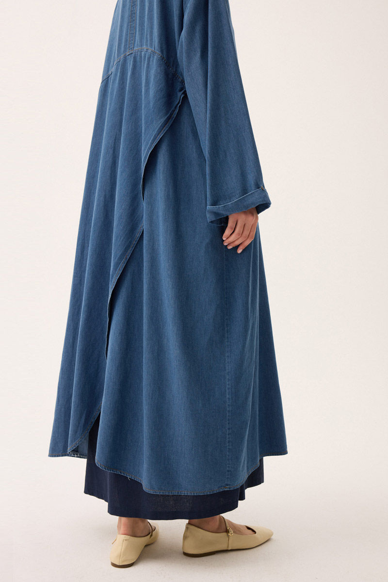 Kruvaze Düğmeli Denim Kap Açık Mavi. Asimetrik kapama yakadır, önden düğmelidir, bol kalıptır, arkadan çapraz aller detaylıdır, düşük omuzludur, duble kolludur, yandan ceplidir, astarsızdır. Günlük kullanım ve özel günlerinizde tercih edebilirsiniz.