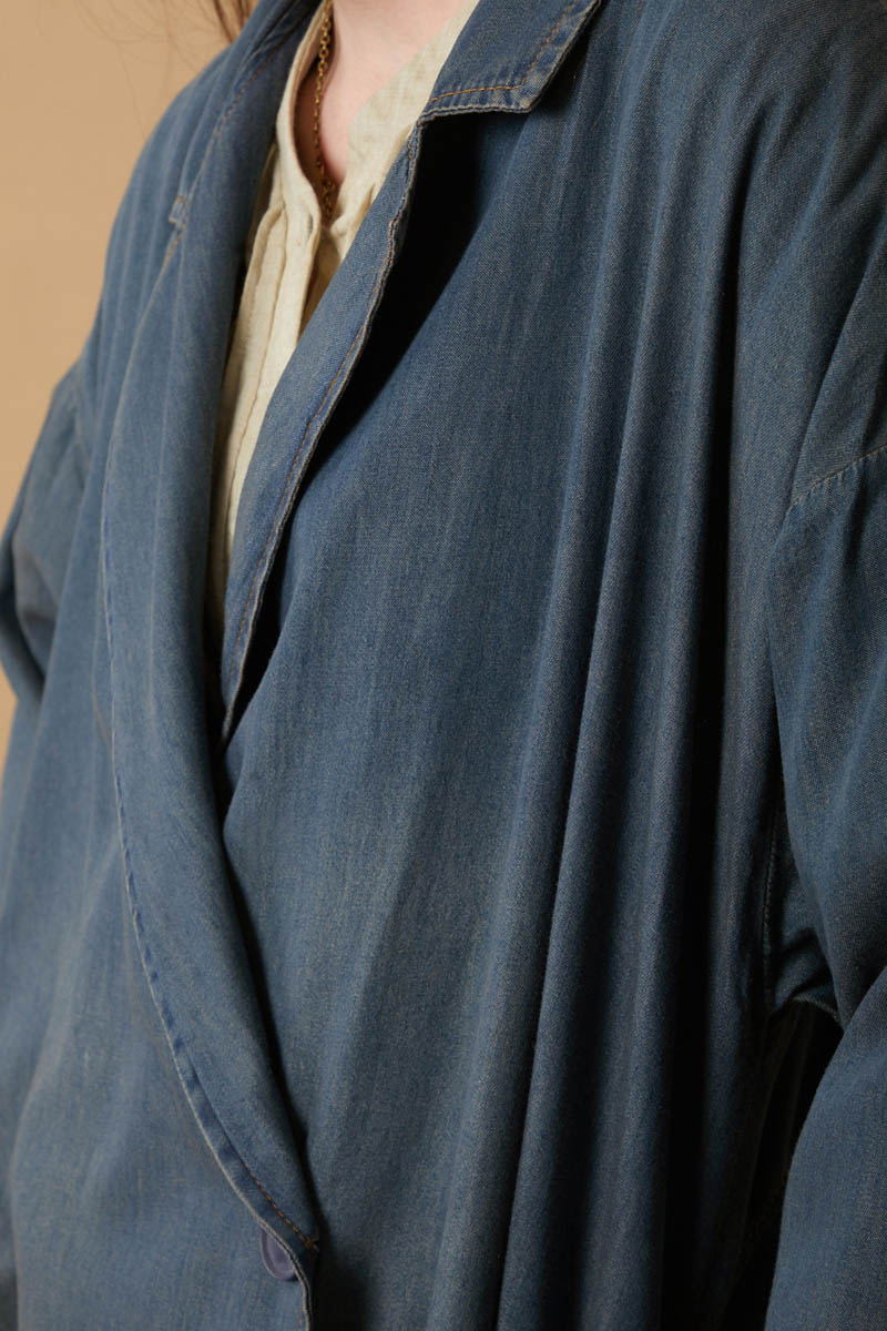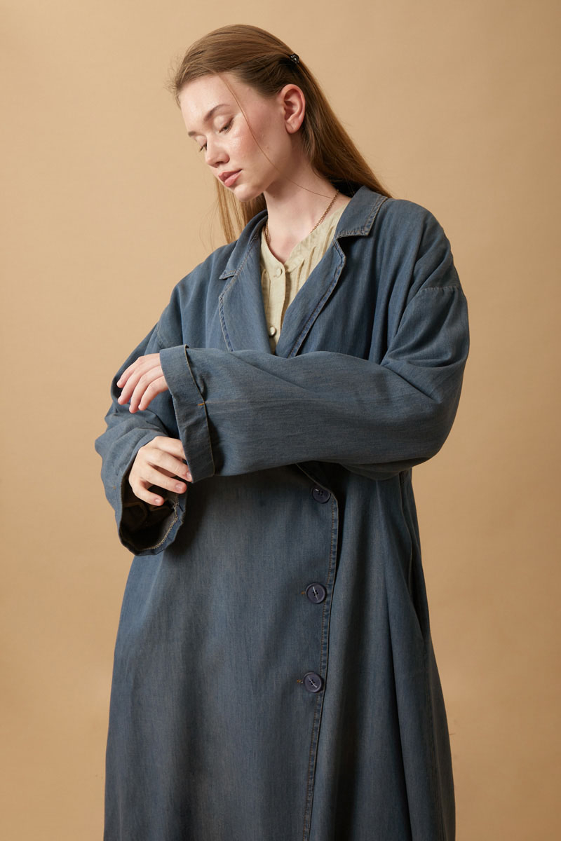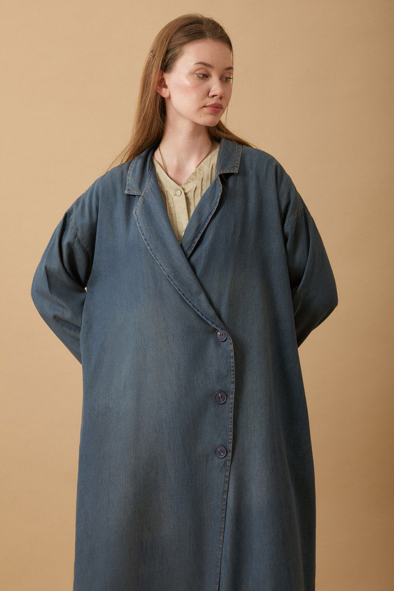 Kruvaze Düğmeli Denim Kap Koyu Mavi. Asimetrik kapamal akadır, önden düğmelidir, bol kalıptır, arkadan çapraz aller detaylıdır, düşük omuzludur, duble kolludur, yandan ceplidir, astarsızdır. Günlük kullanım ve özel günlerinizde tercih edebilirsiniz.