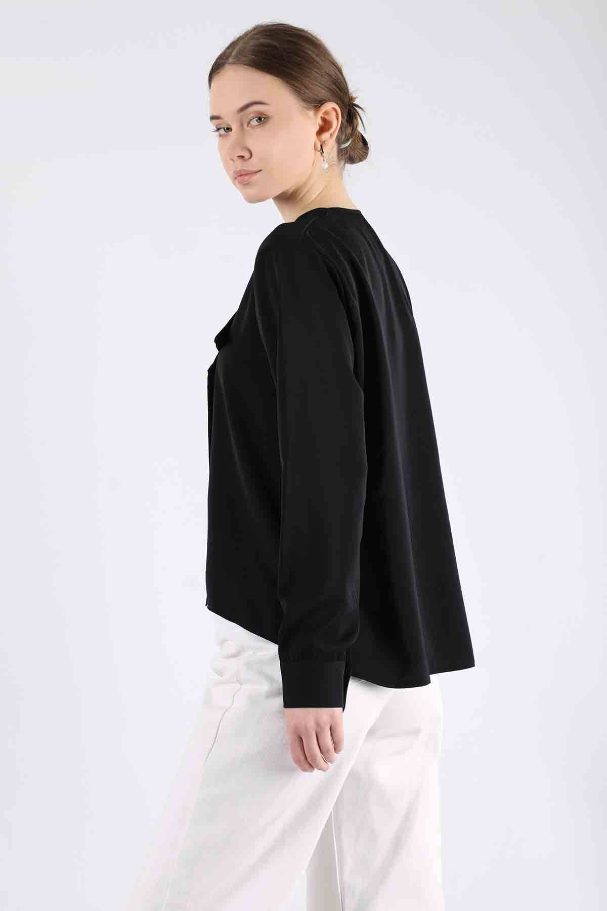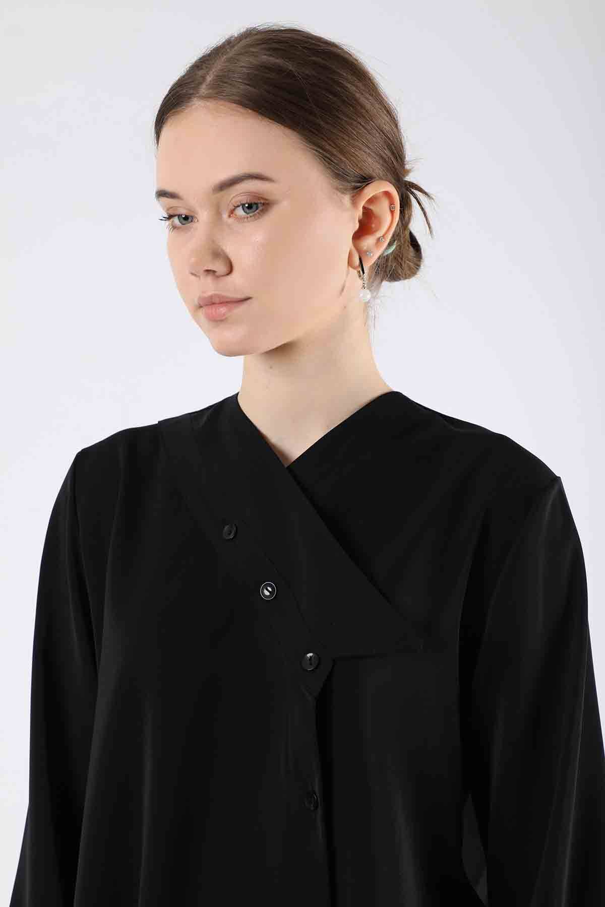 Kruvaze Kapama Gömlek Siyah