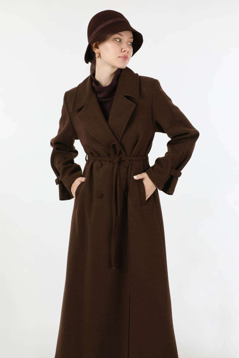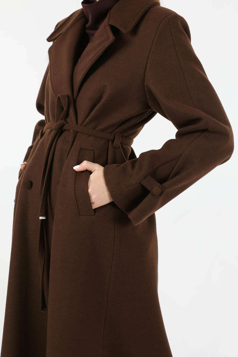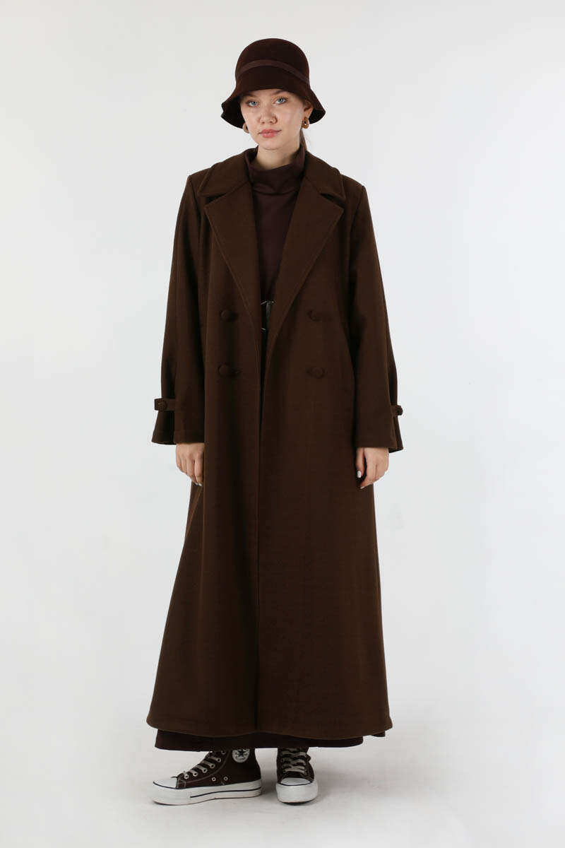 Kruvaze Kapama Apolet Detaylı Kaban Kahve