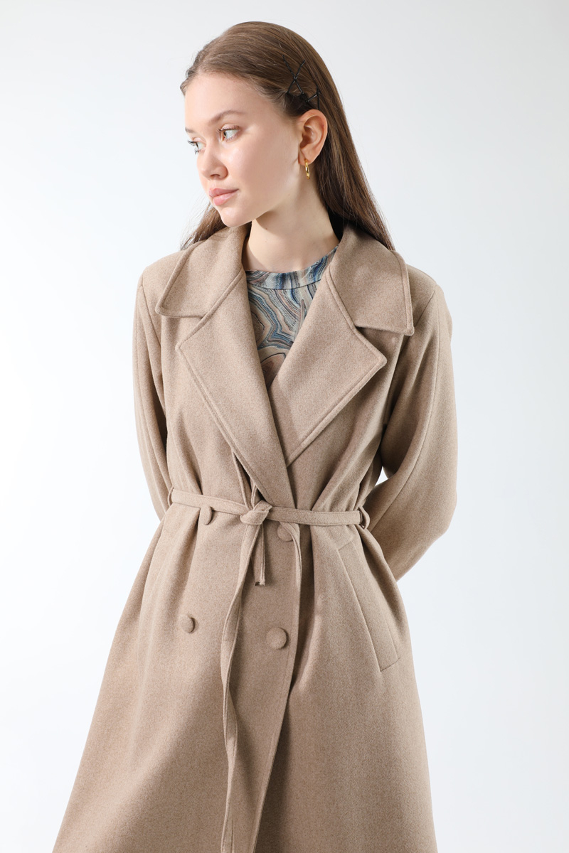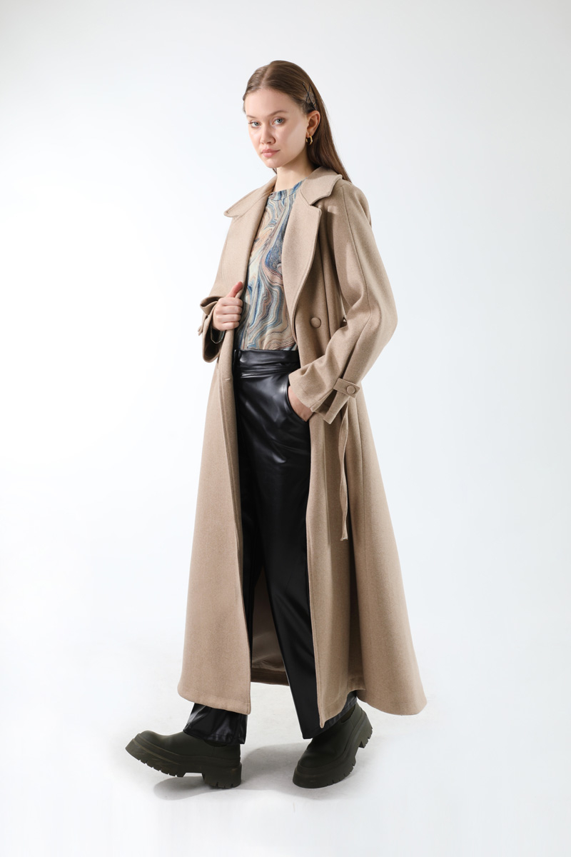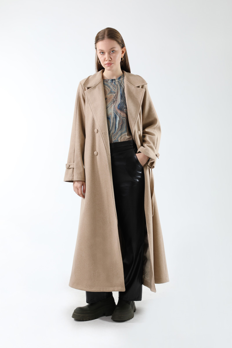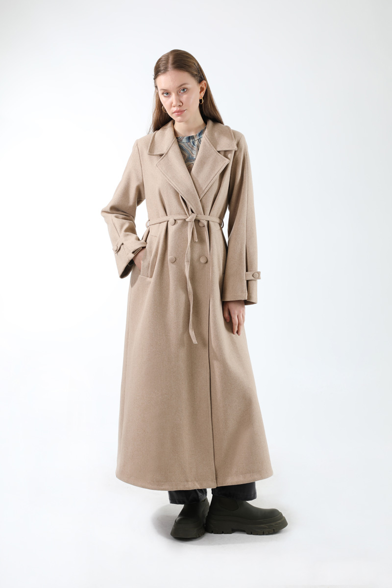 Kruvaze Kapama Apolet Detaylı Kaban Vizon