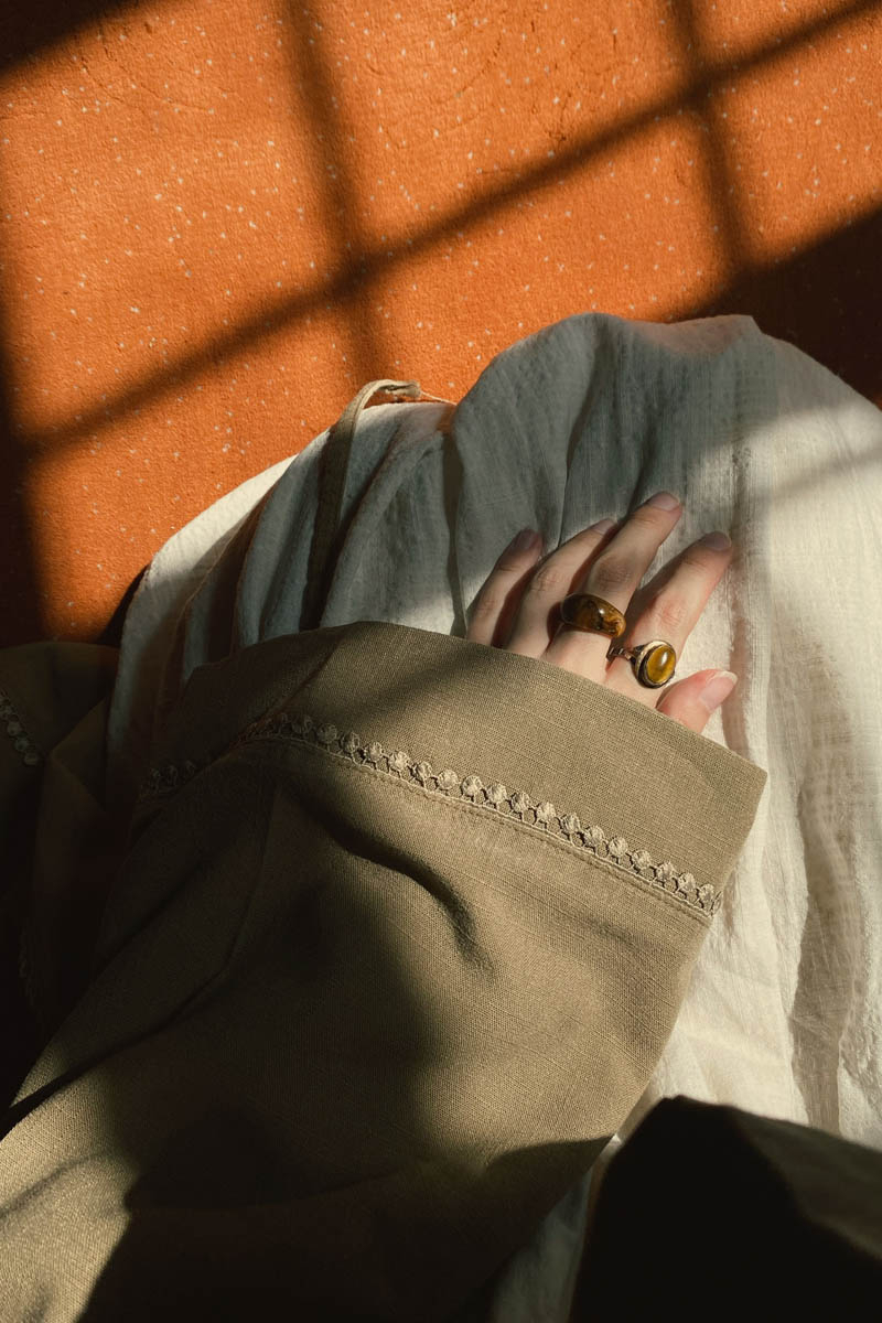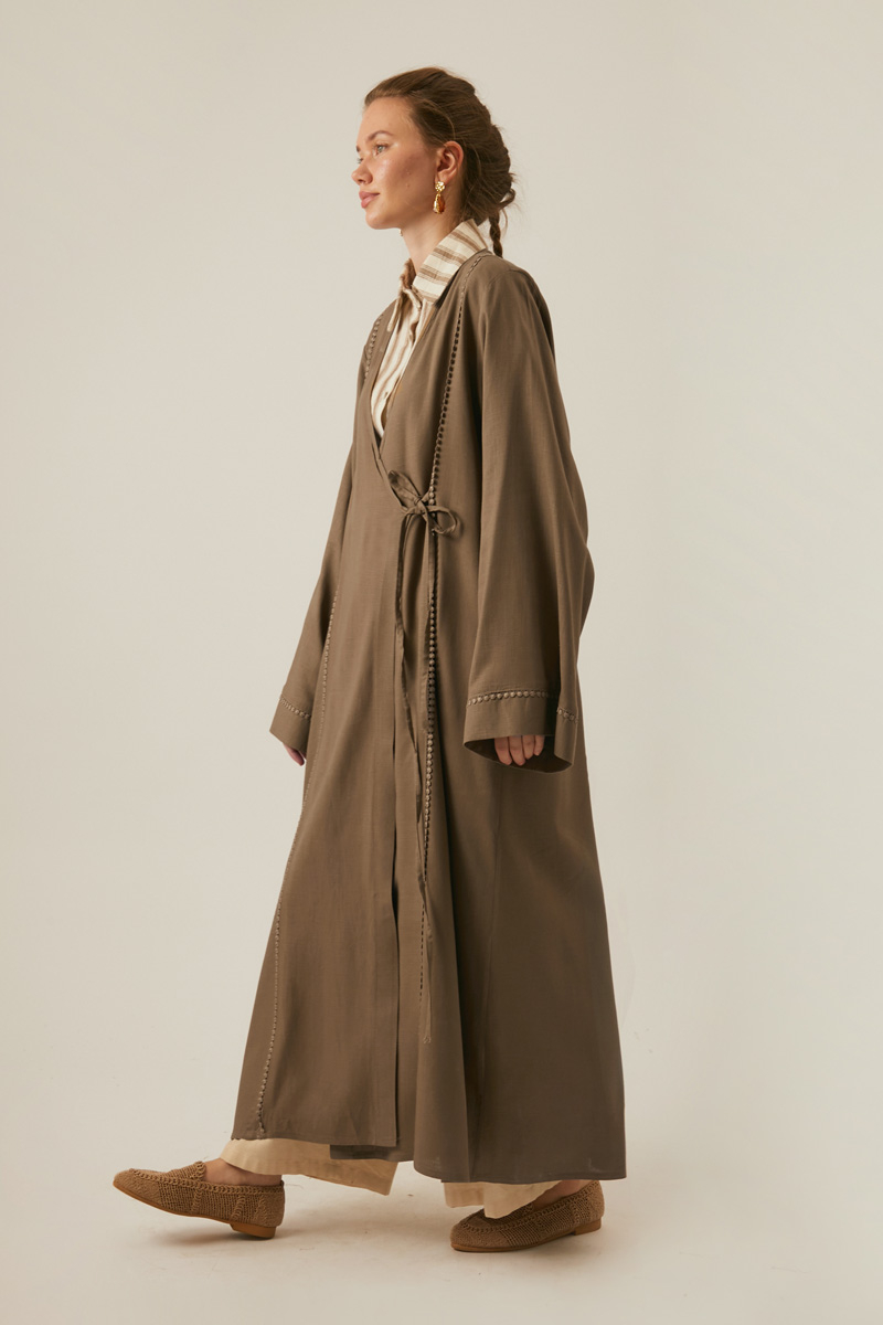 Kruvaze Keten Kimono Toprak, Şıklığı ve konforu bir arada arayanlar için özel olarak tasarlanan Kruvaze Keten Kimono, yaz günlerinin ve özel anlarınızın vazgeçilmezi olmaya aday. Hafif ve nefes alabilen keten kumaşı sayesinde gün boyu rahatlık sunarken, kruvaze kesimi ile modern ve zarif bir siluet çiziyor.