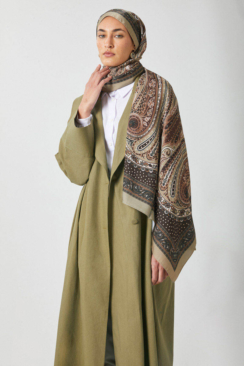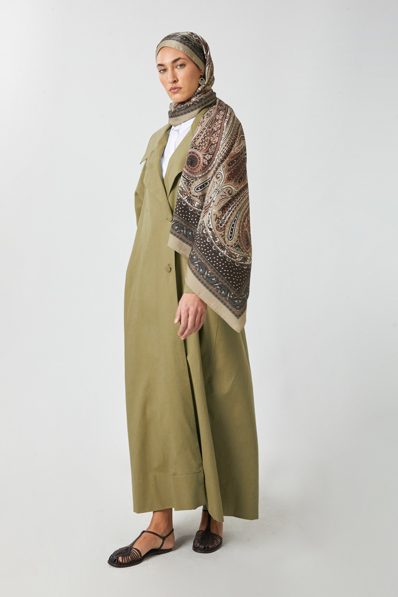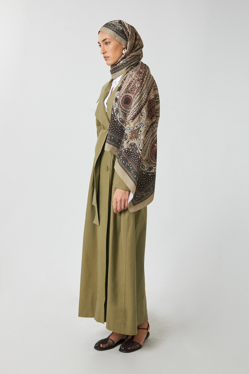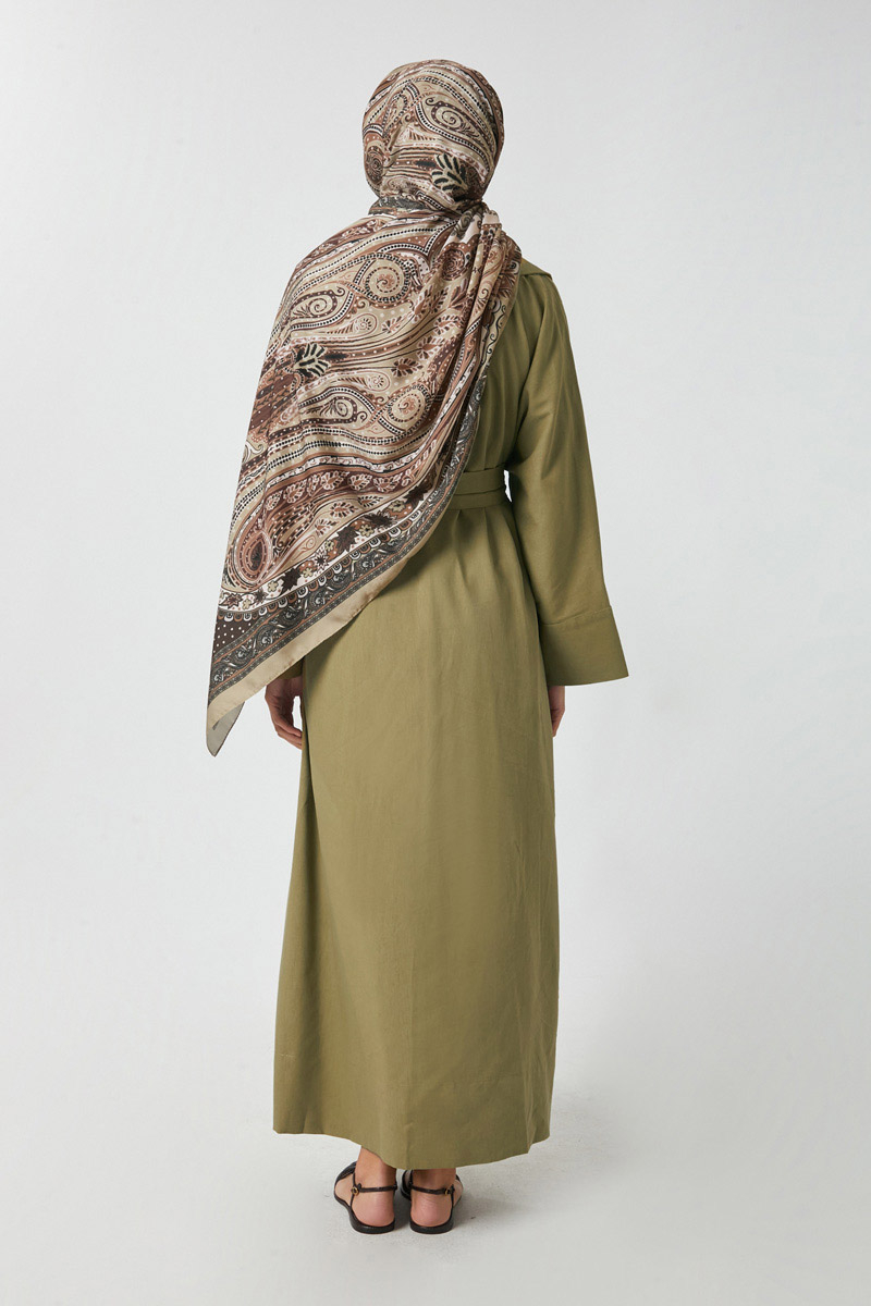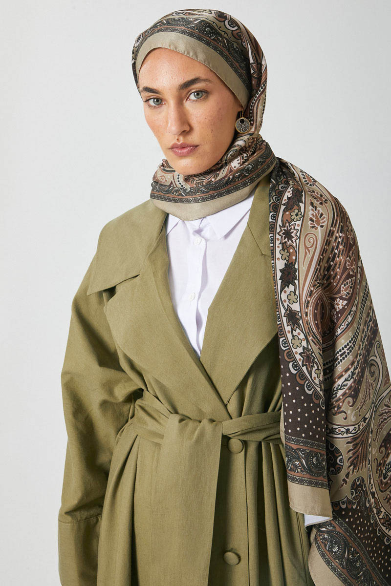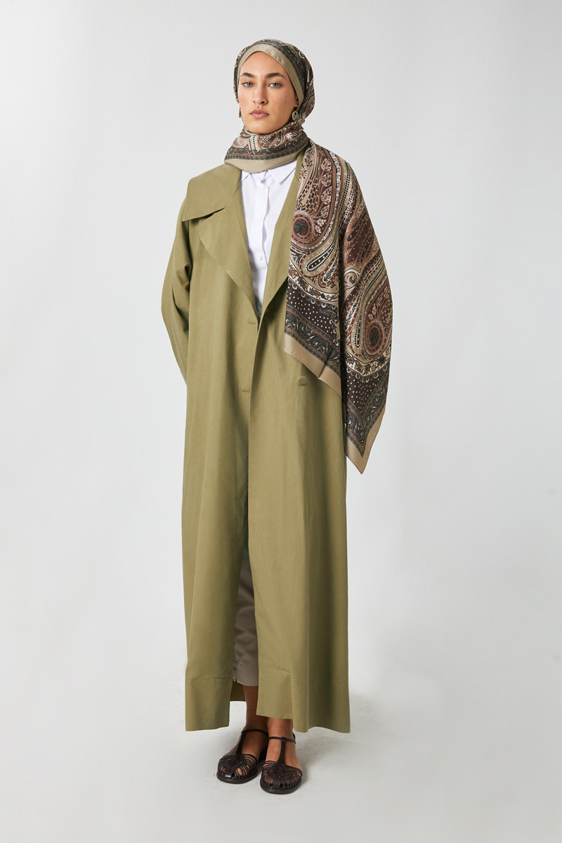 Kruvaze Keten Trenç Haki. Kruvaze kapamadır, düşük omuzludur, beli kemerlidir, yandan ceplidir, astarsızdır. Günlük kullanım ve özel günlerinizde tercih edebilirsiniz.