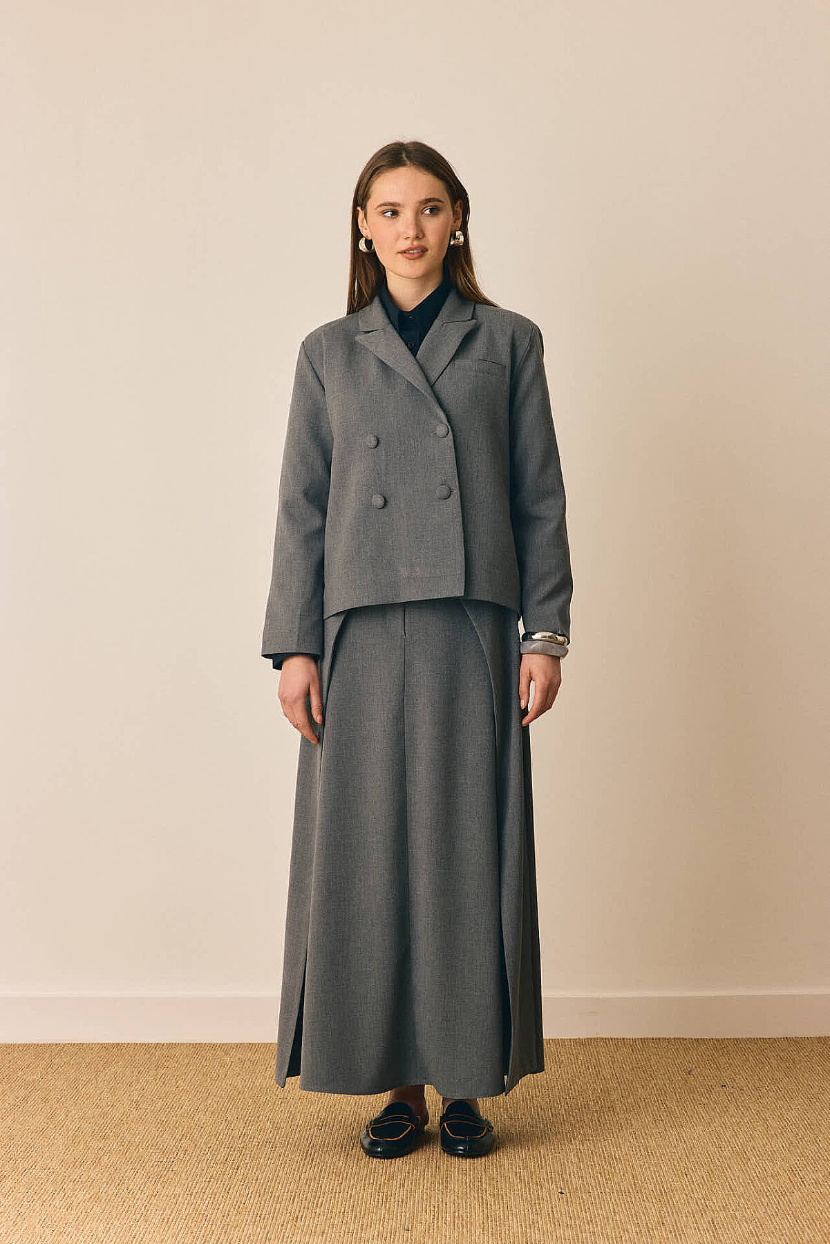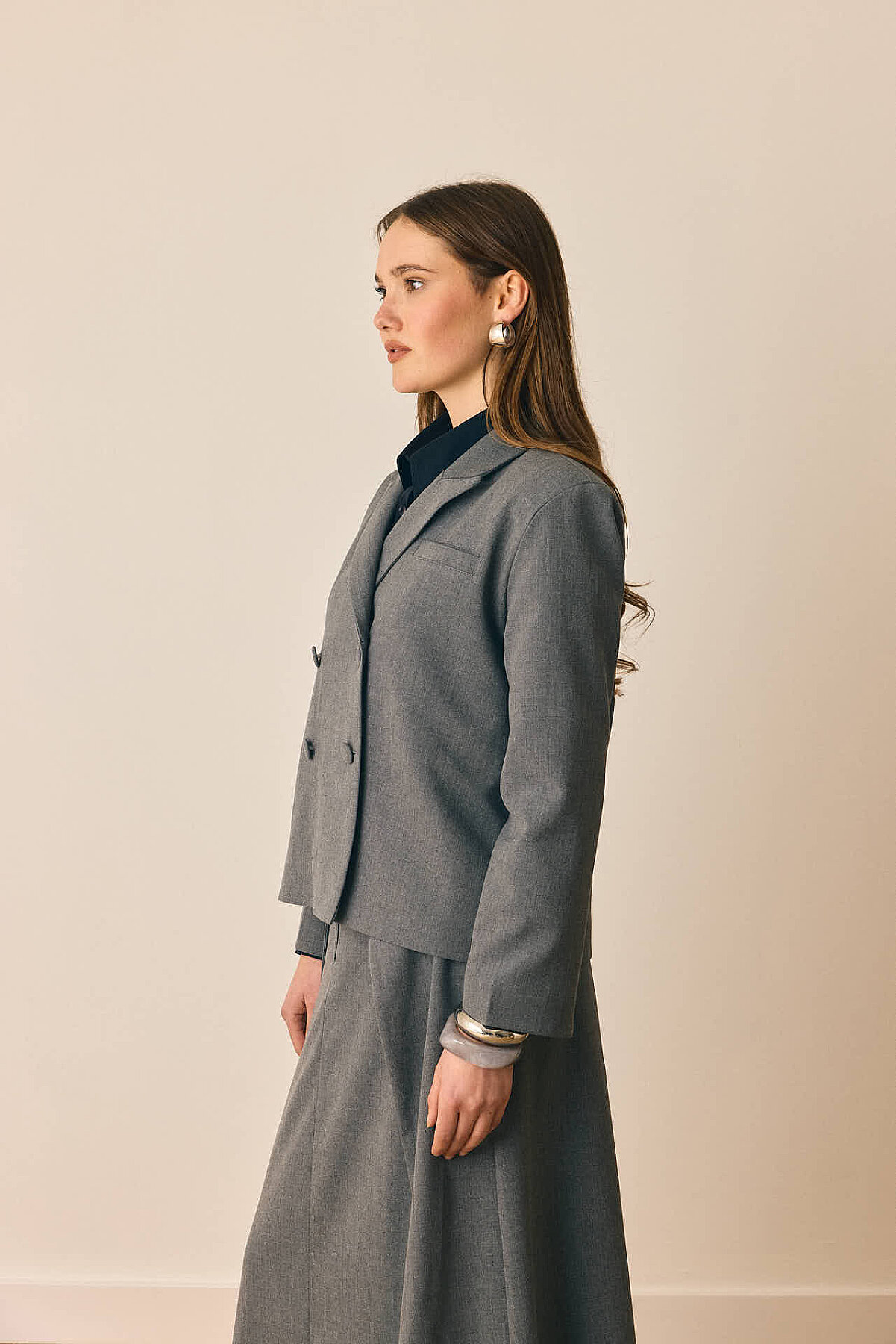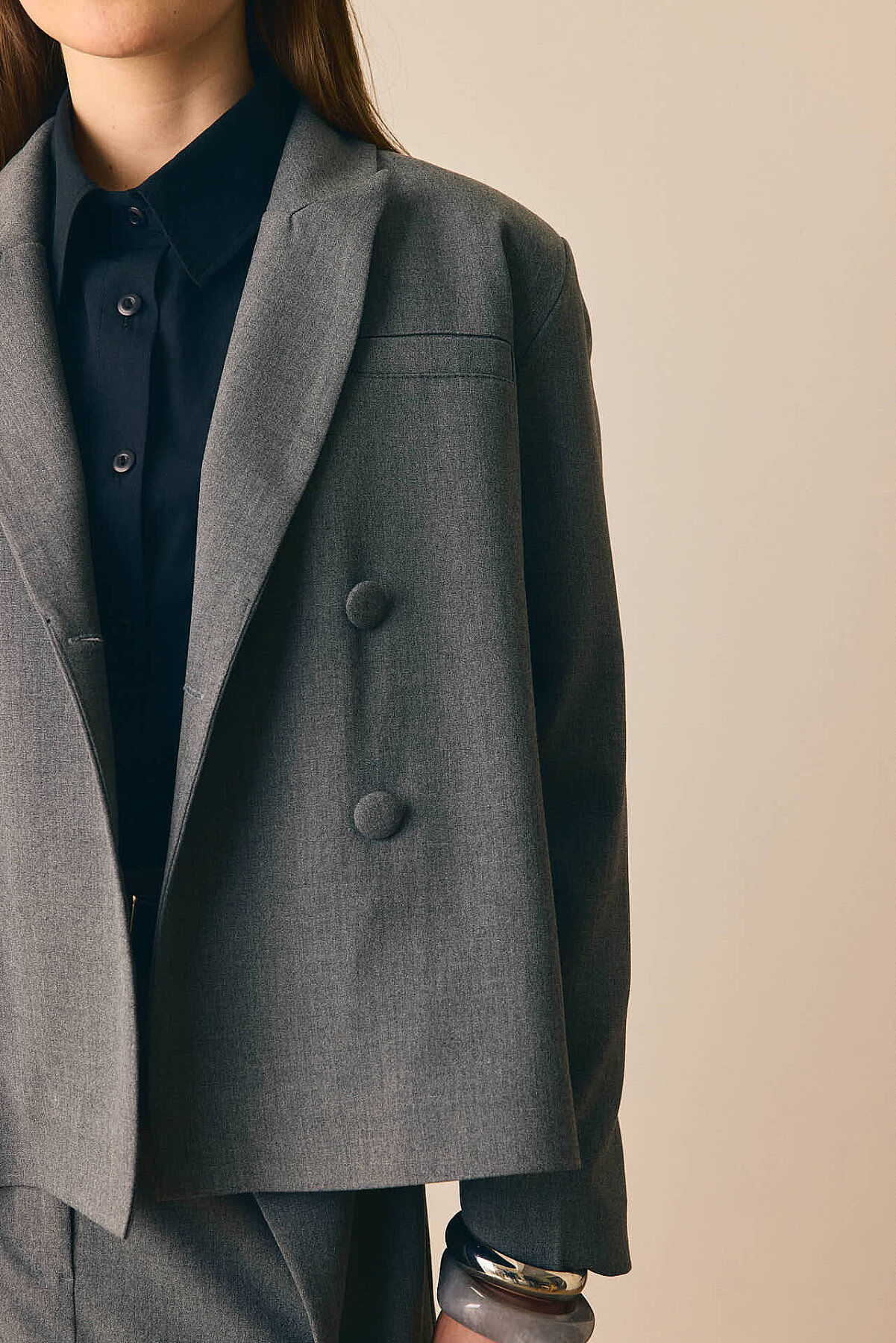 Kruvaze Kısa Ceket , minimal ve zarif tasarımıyla modern şıklığı yansıtır. Kruvaze yaka detayı ve önden düğmeli formu ile klasik blazer görünümünü taşırken, kısa boyu sayesinde hem etek hem de pantolon kombinlerinde kolaylıkla kullanılabilir. Astarlı yapısı konforlu bir kullanım sunar.