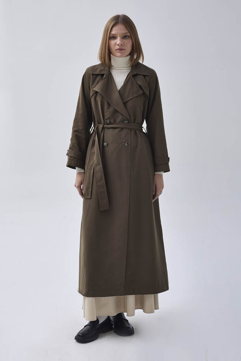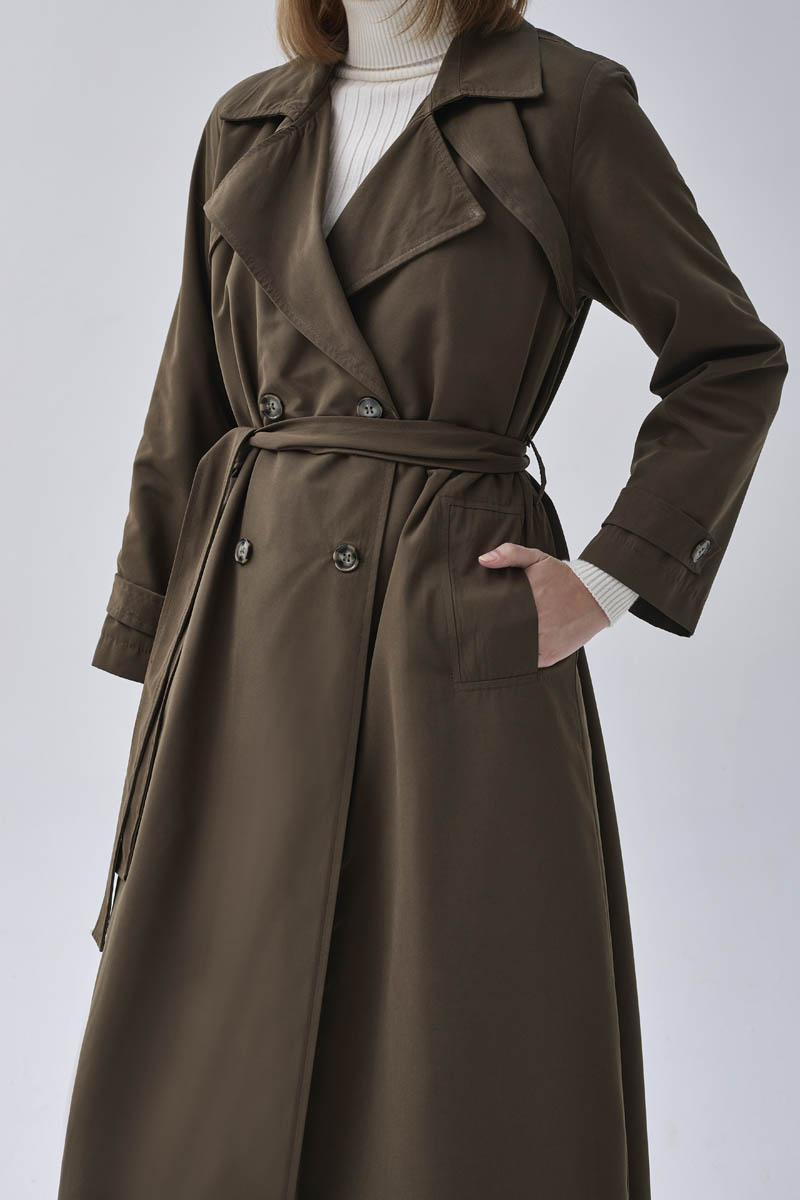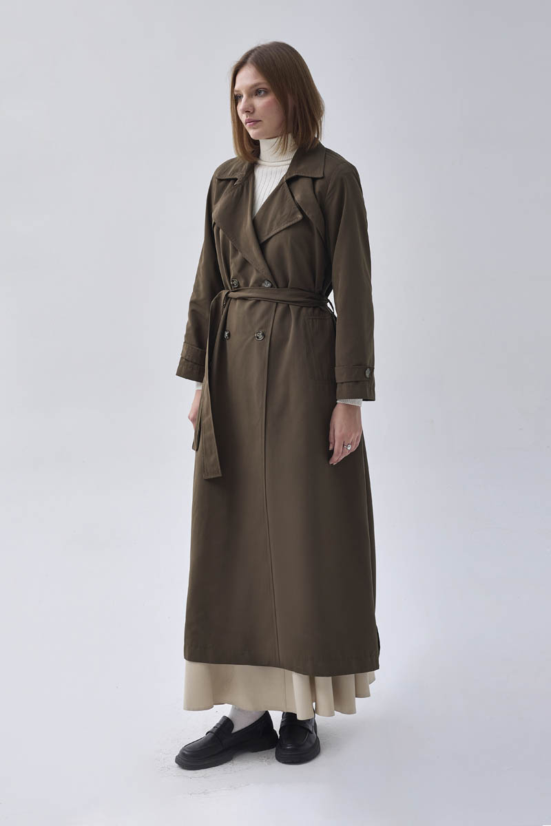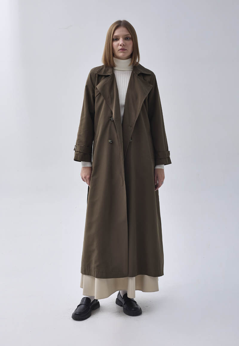 With its timeless design, this trench coat is a versatile outerwear piece that complements any outfit. The double-breasted lapel detail, front button closure, and long silhouette offer a classic and sophisticated look. Perfect for both daily city style and special occasions, it ensures comfortable wear with its fully lined construction.