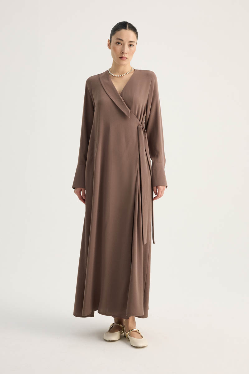 Kruvaze Krep Abaya Kahverengi