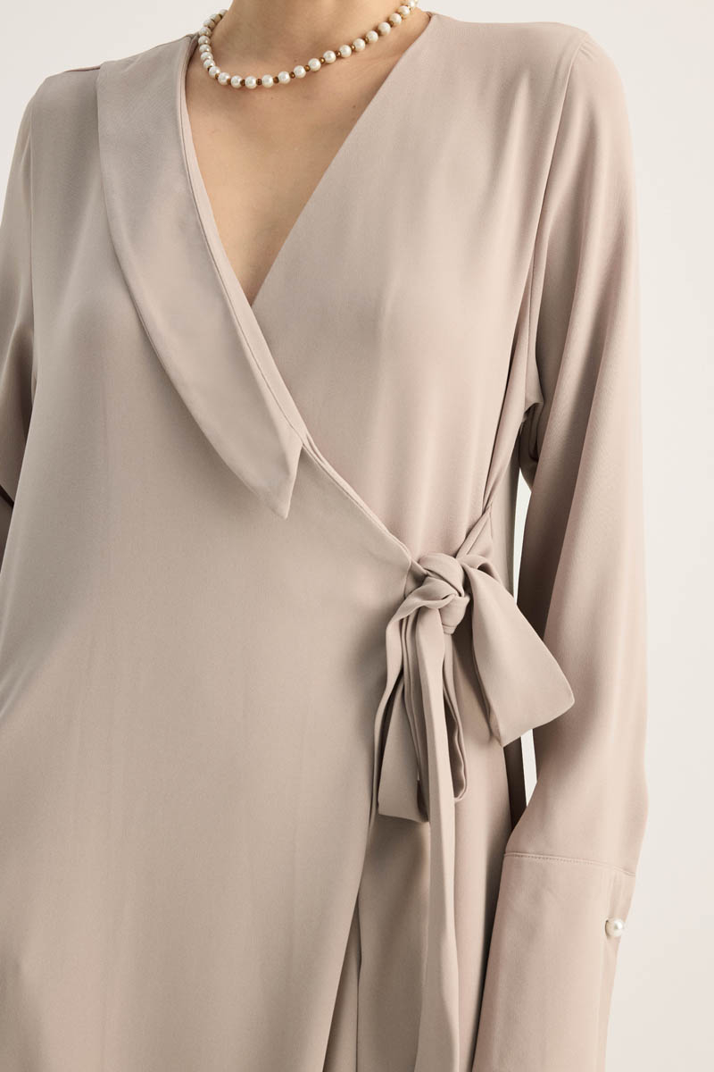 Kruvaze Krep Abaya Taş