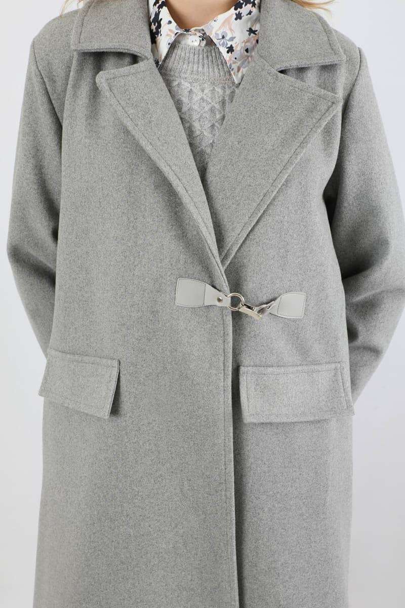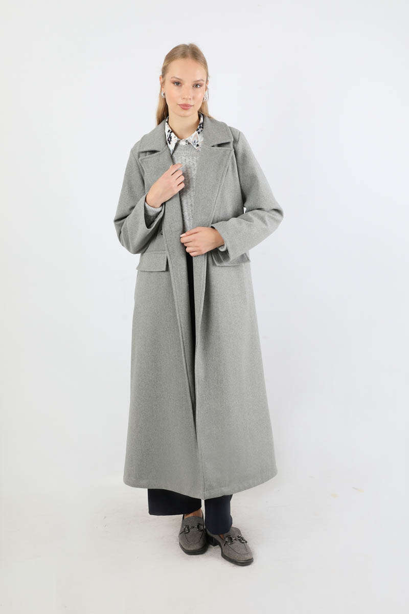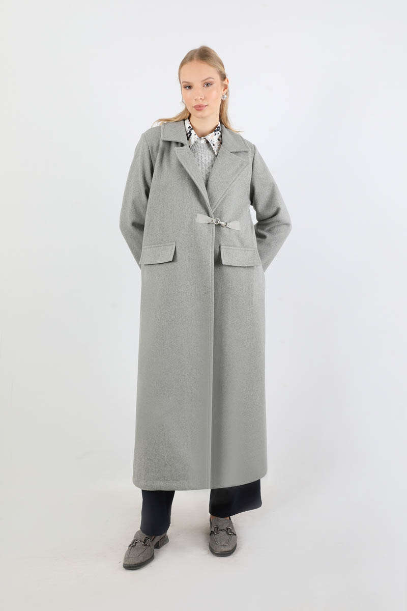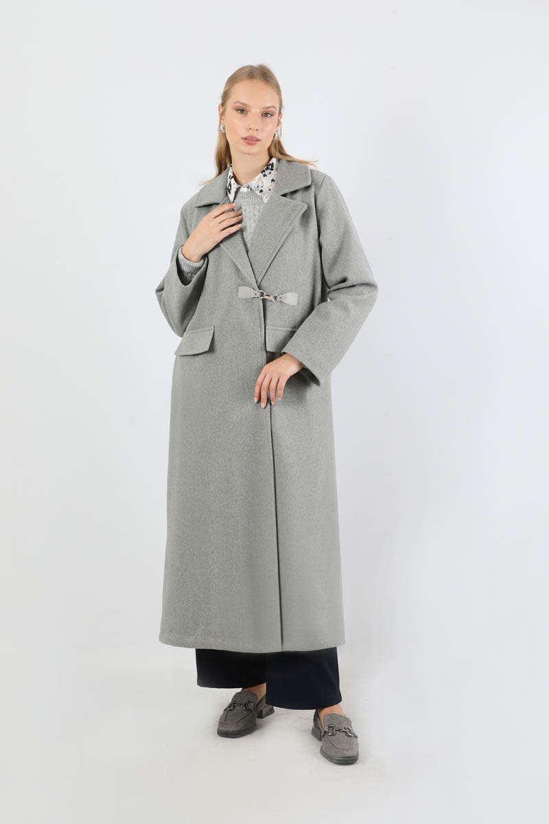 Kruvaze Tokalı Uzun Kaban Gri. Deri kapama Kruvaze toka aksesuar detaylıdır. İçten gizli düğme detaylıdır. Önden kapaklı ceplidir. Astarlıdır. Günlük kullanım ve özel günlerinizde tercih edebilirsiniz.