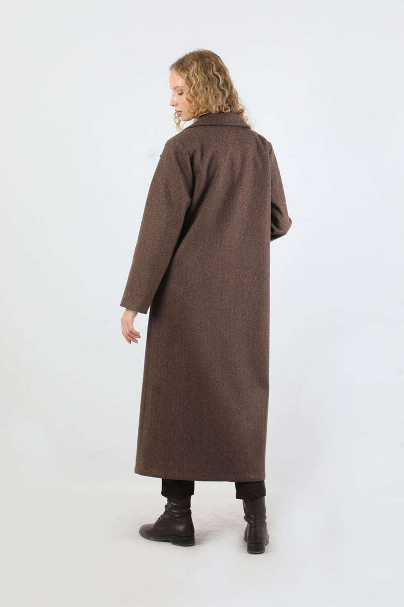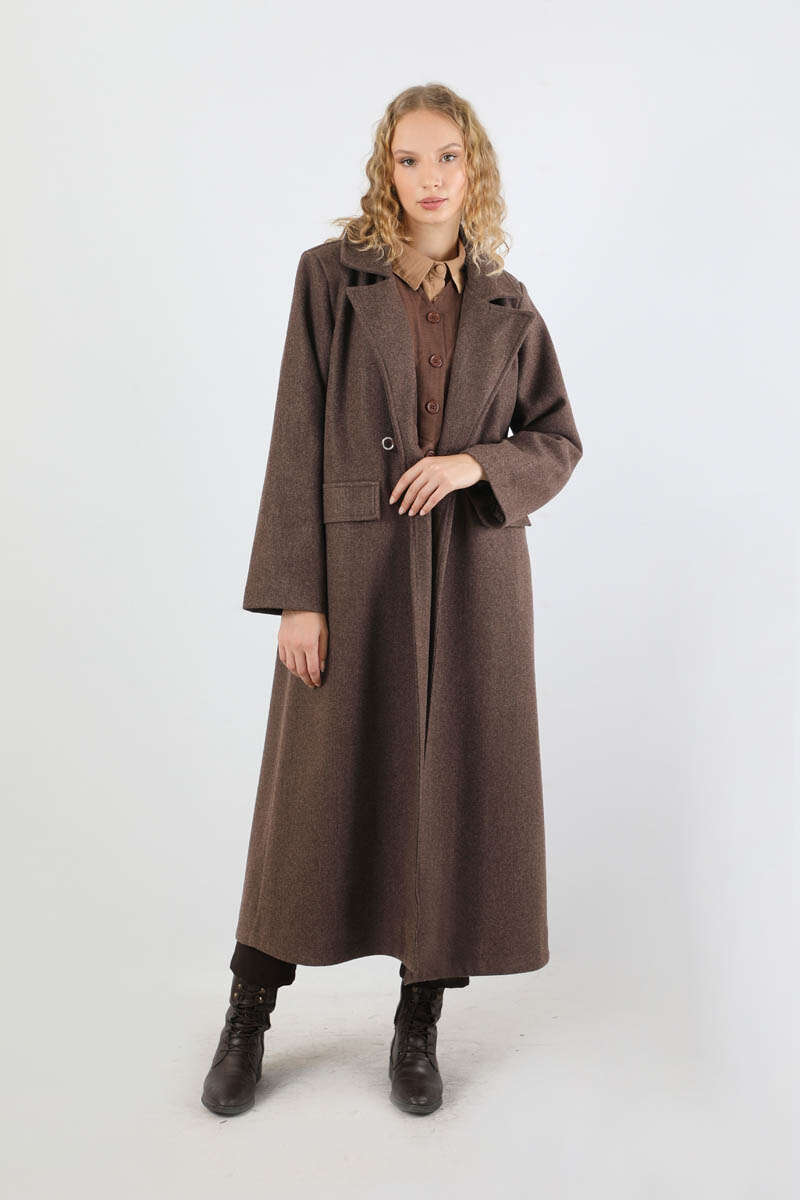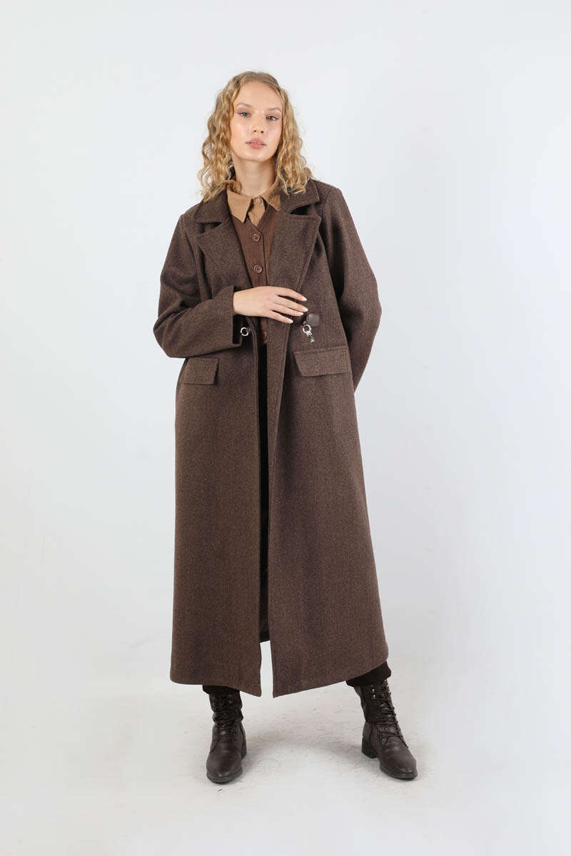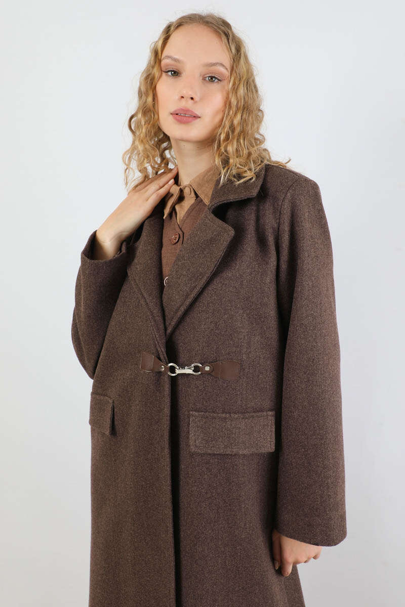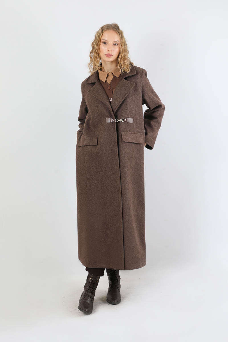 Kruvaze Tokalı Uzun Kaban Kahverengi. Deri kapama Kruvaze toka aksesuar detaylıdır. İçten gizli düğme detaylıdır. Önden kapaklı ceplidir. Astarlıdır. Günlük kullanım ve özel günlerinizde tercih edebilirsiniz.
