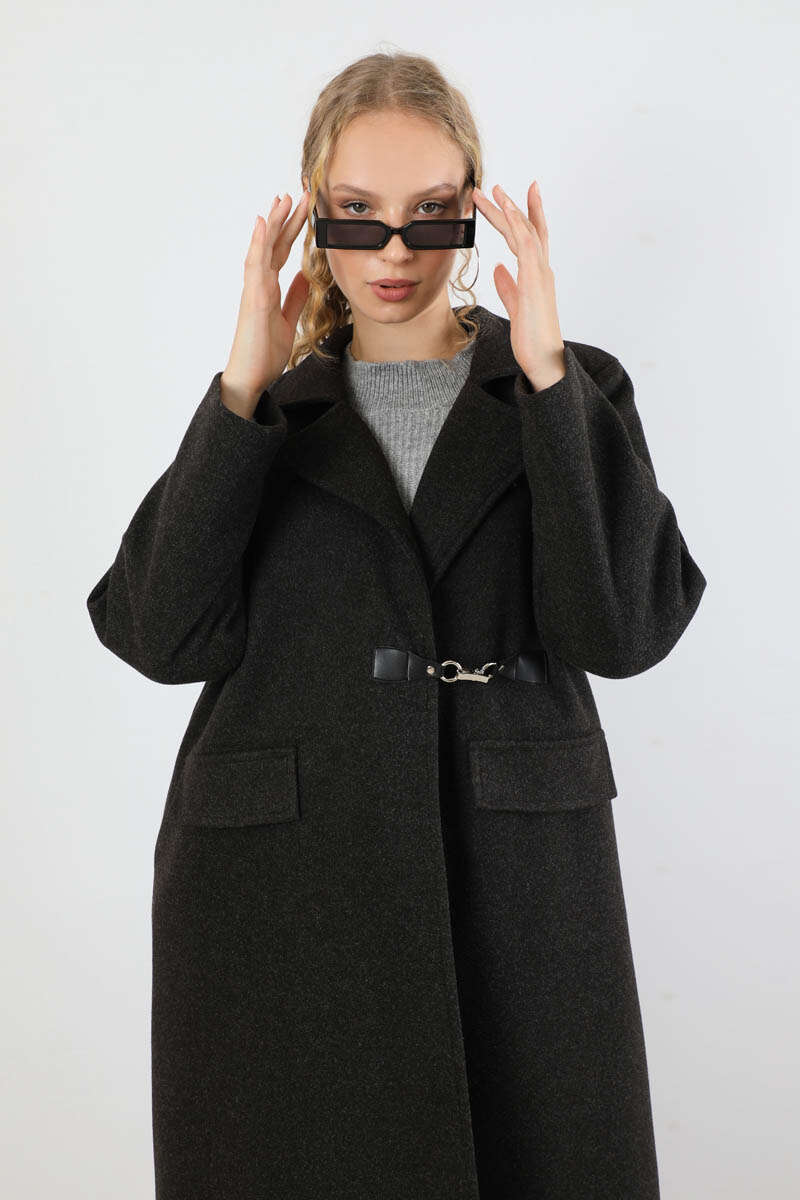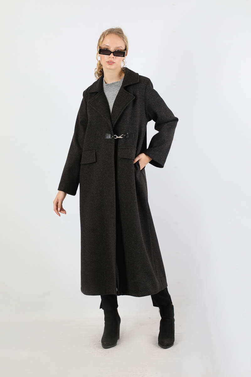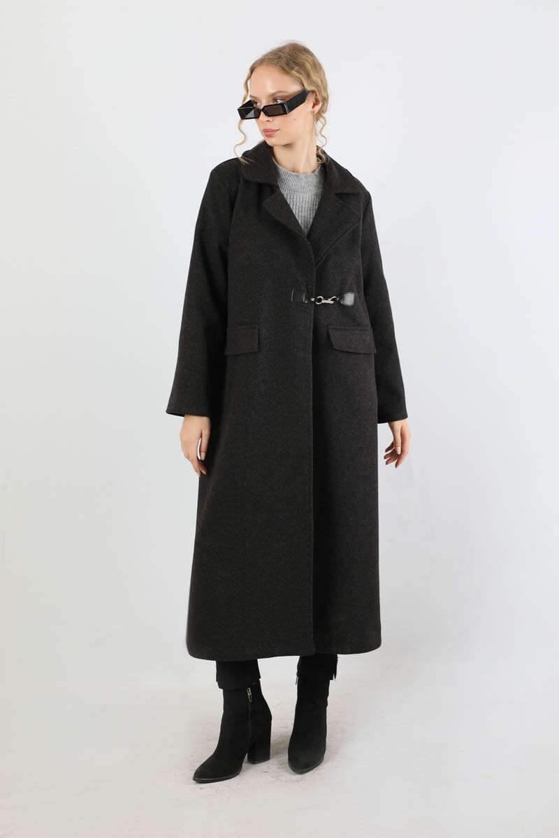 Kruvaze Tokalı Uzun Kaban Siyah. Deri kapama Kruvaze toka aksesuar detaylıdır. İçten gizli düğme detaylıdır. Önden kapaklı ceplidir. Astarlıdır. Günlük kullanım ve özel günlerinizde tercih edebilirsiniz.