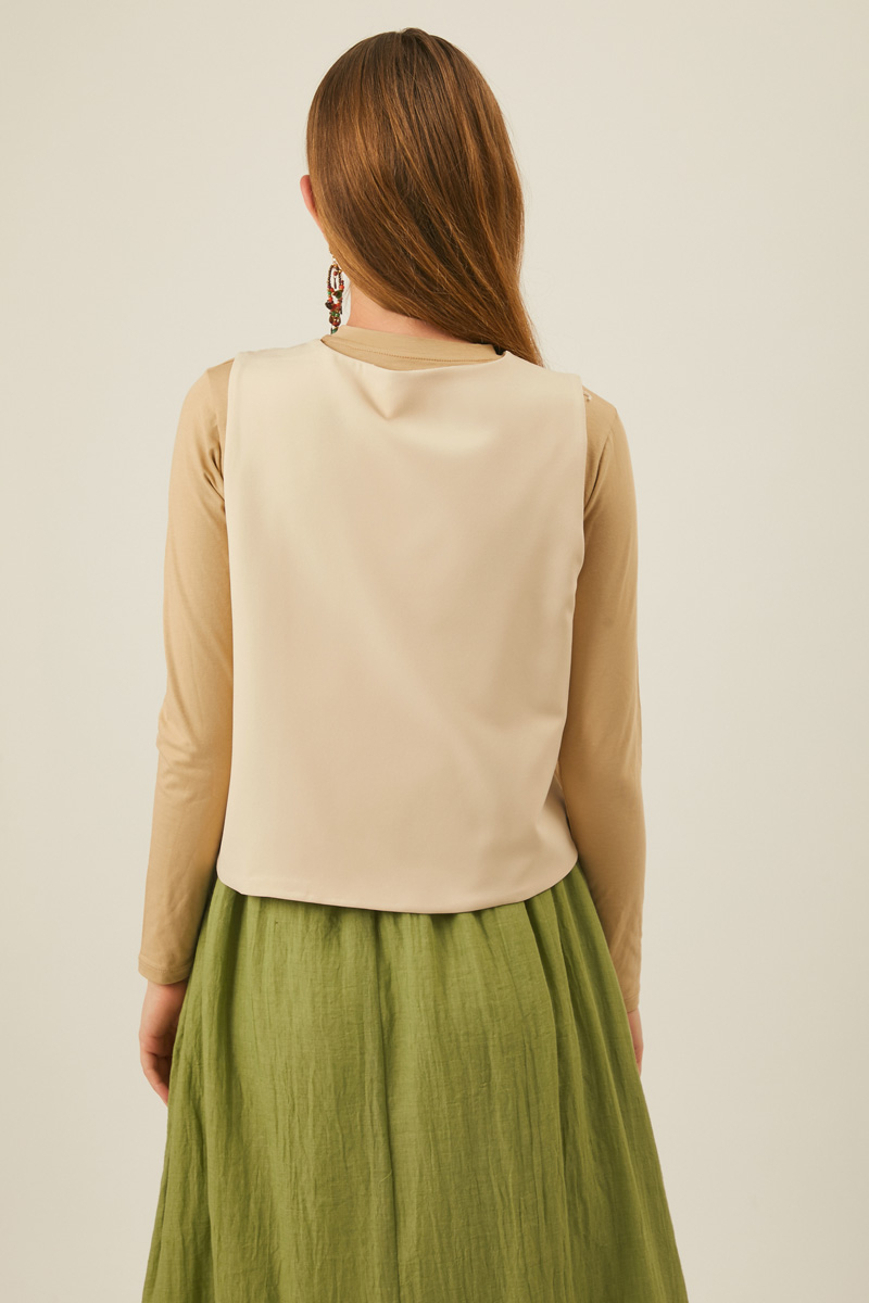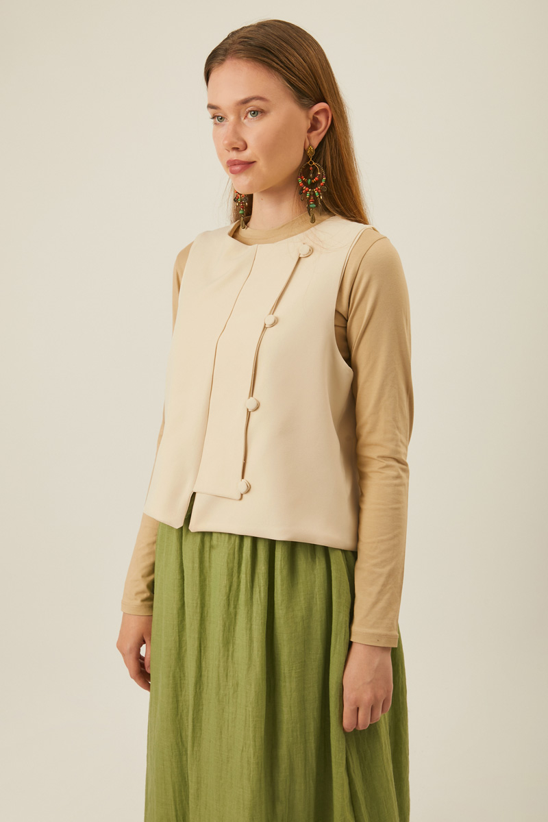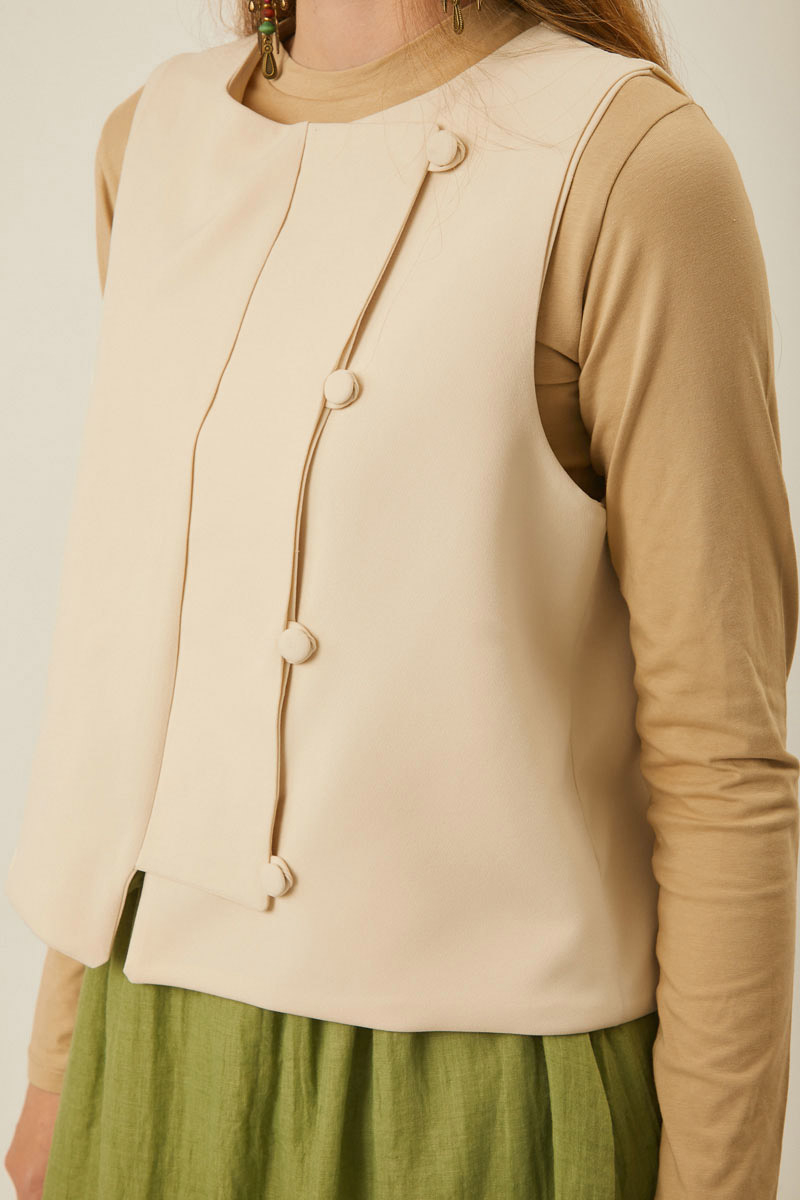 Kruvaze Yelek Taş. Geniş patlıdır. Birit düğmelidir. Kruvaze kapamadır. Astarlıdır. Elbise ve etek kombinlerinizde tercih edebilirsiniz. Mevsimlik üründür.