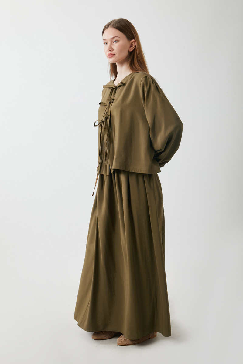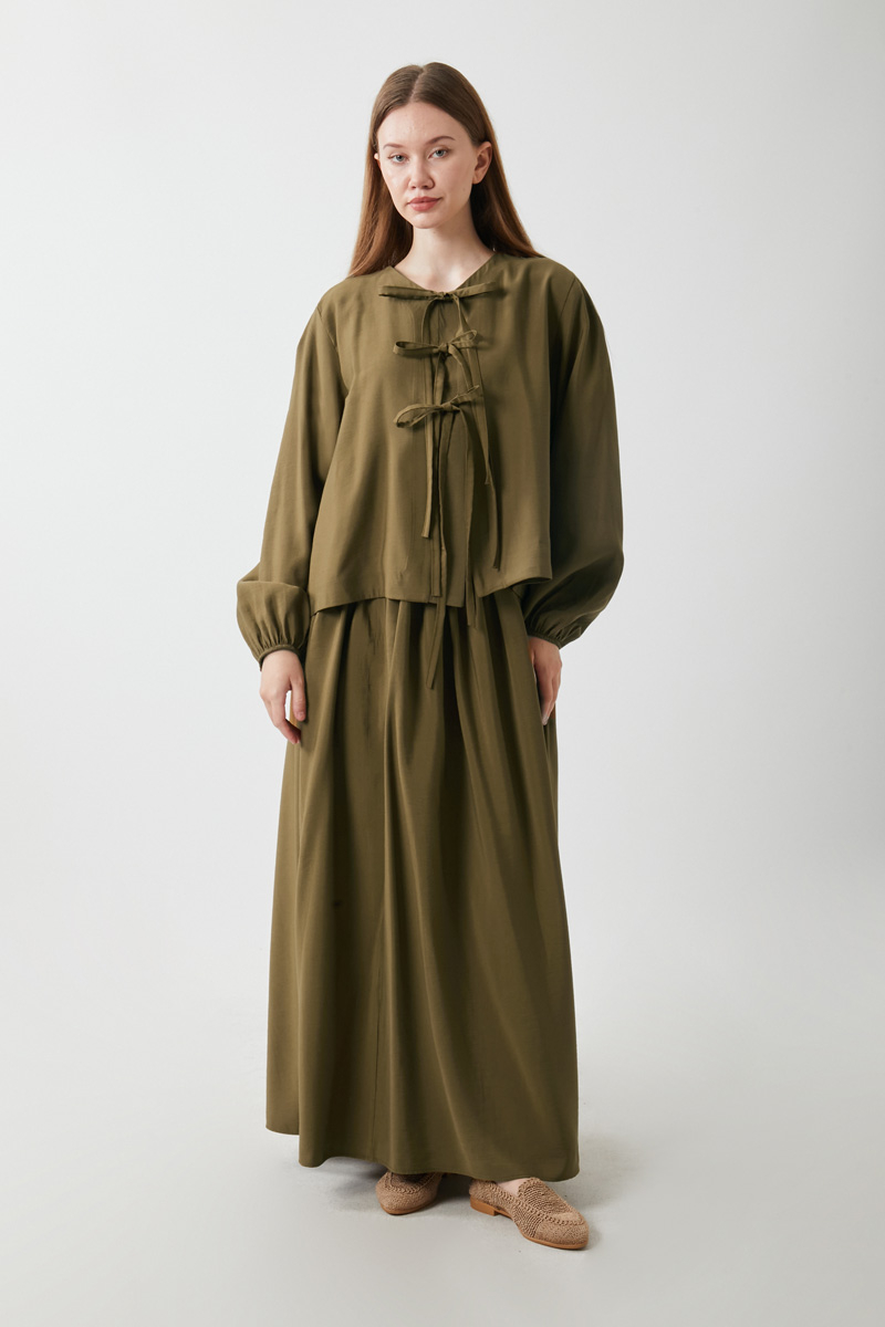 Kurdele Detaylı Etek Takım Koyu Bronz