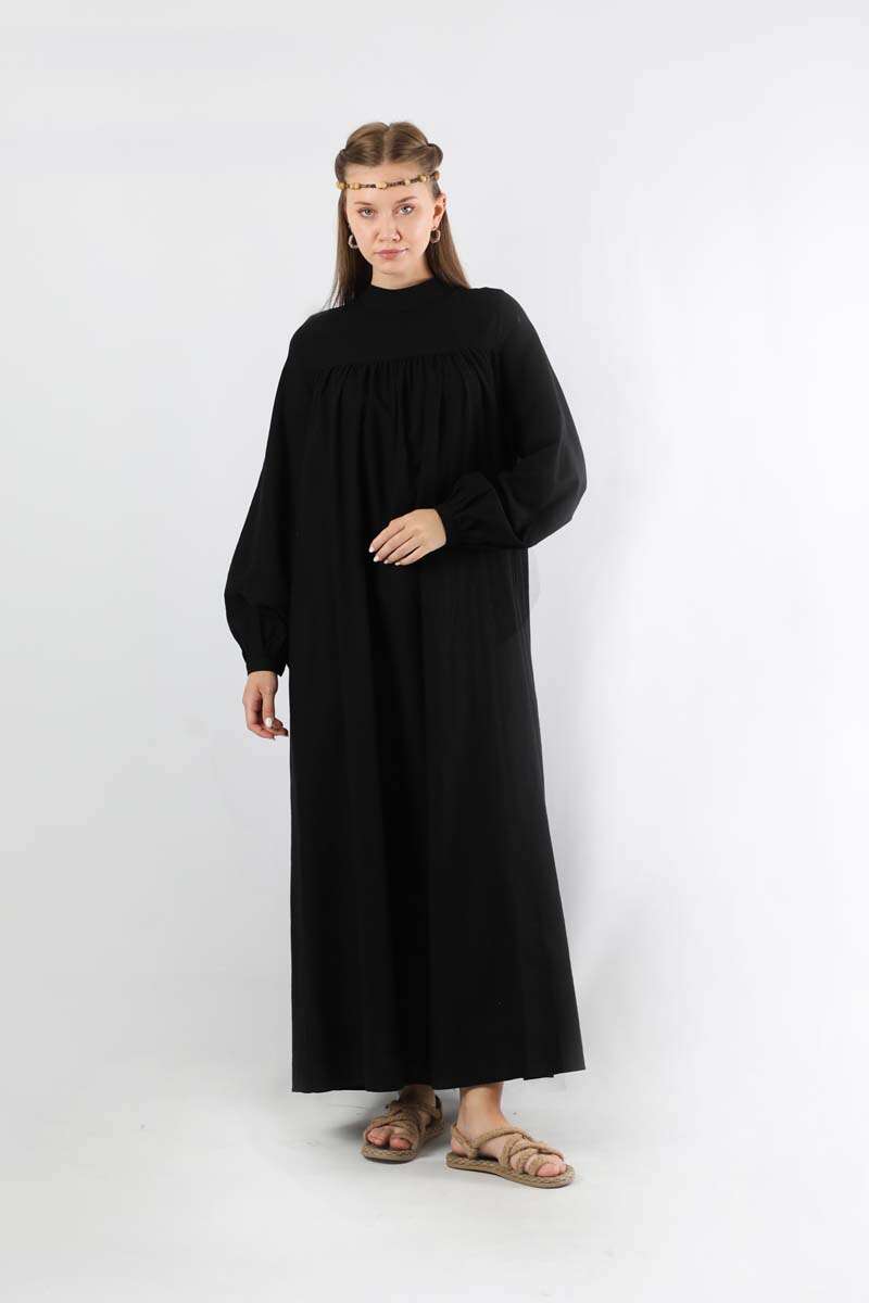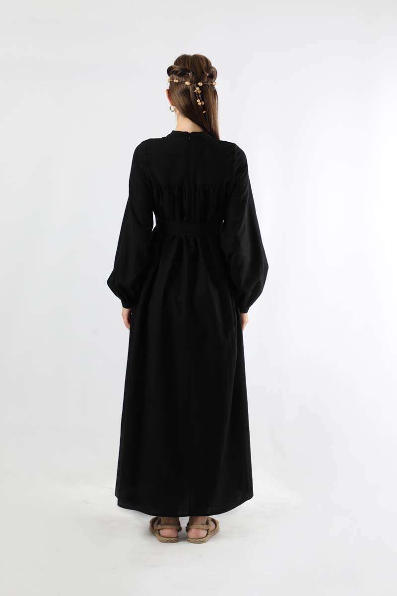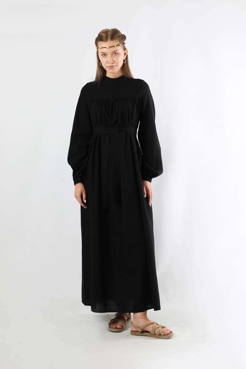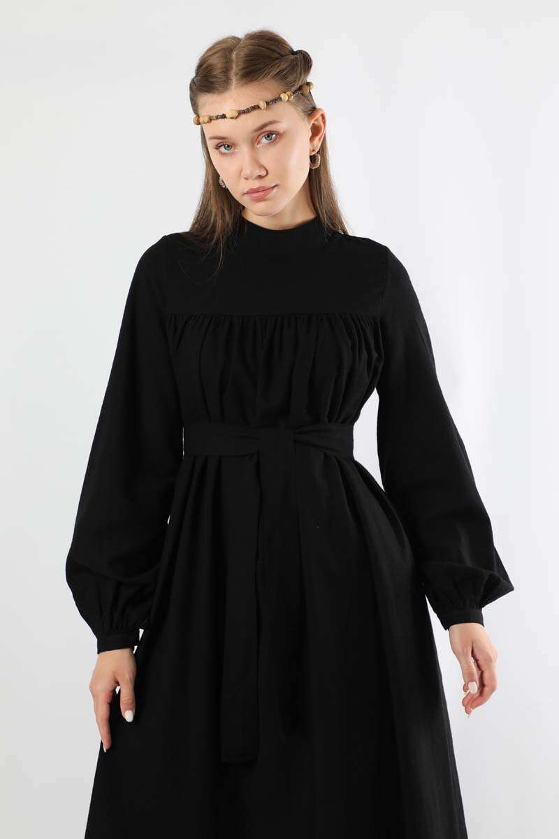 Kuşaklı Büzgülü Elbise Siyah. Dik yakalıdır. Roba detaylıdır ve robasından başlayan büzgü detayı mevcuttur. Balon kolludur. Manşeti büzgülüdür ve kaplama düğmelidir. Kuşaklıdır. Şık olan ürüne özel günlerinizde tercih edebilirsiniz.