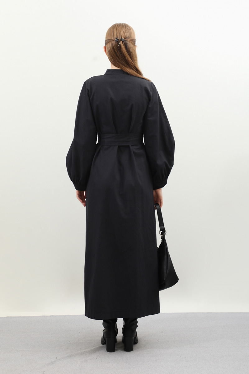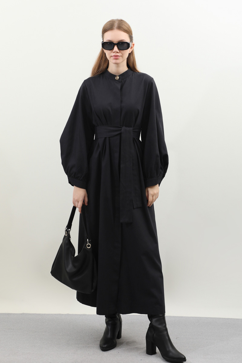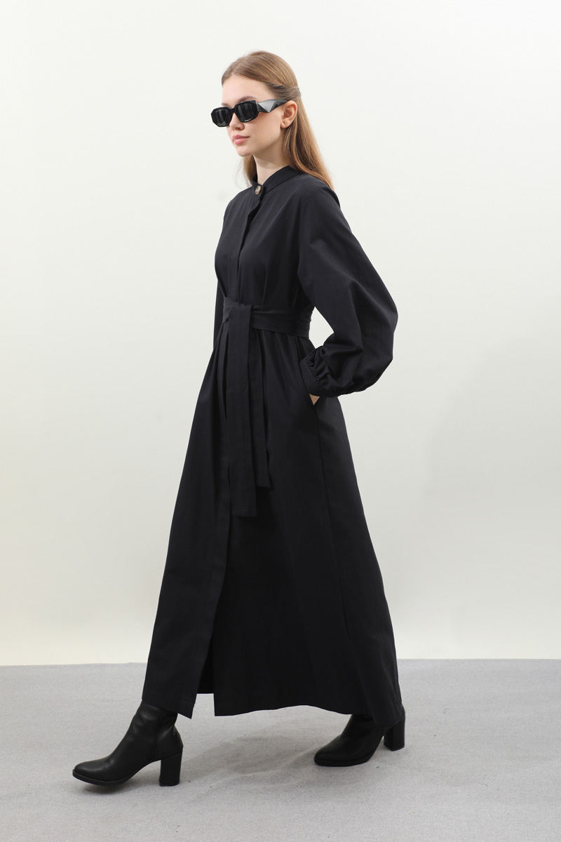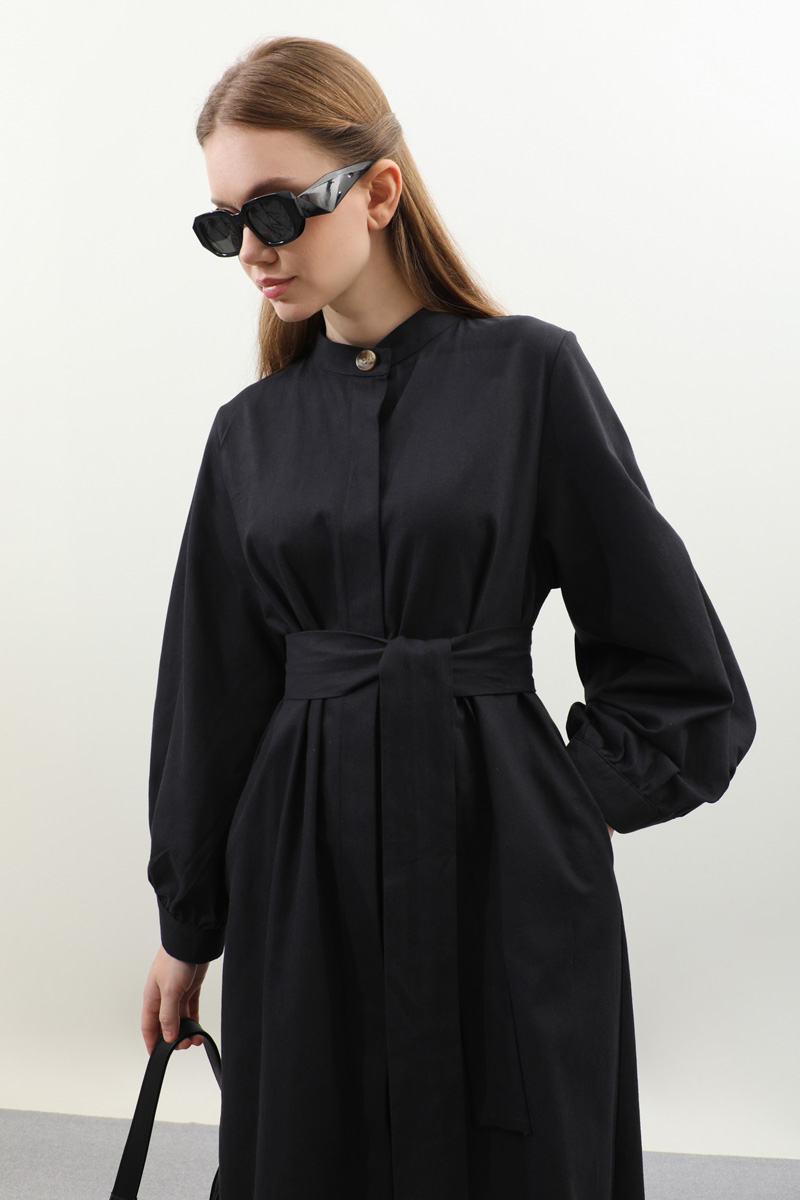 Kuşaklı Gabardin Elbise Siyah, Hakim yakadır, önden gizli düğmelidir, geniş kolludur, geniş manşetlidir daraltmak için ilik düğme eklenmiştir, yandan ceplidir, kuşaklıdır, astarsızdır. Günlük kullanım ve özel günlerinizde tercih edebilirsiniz.