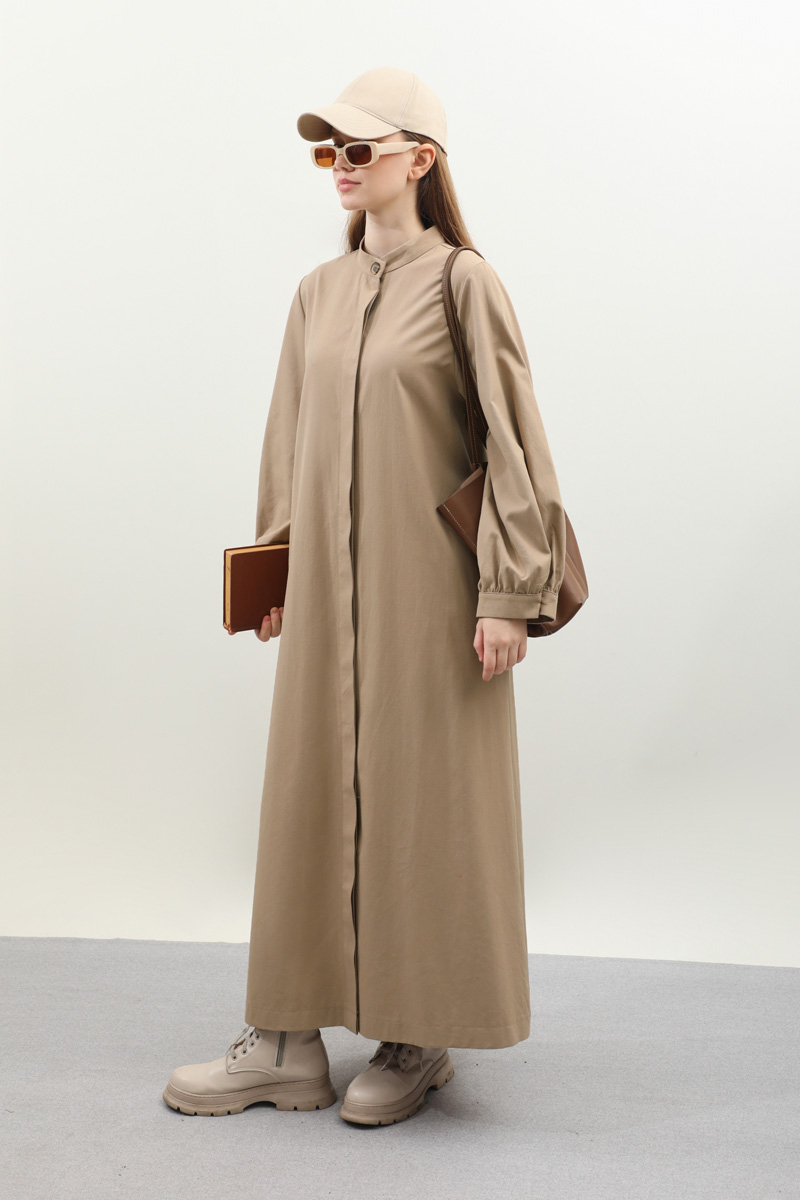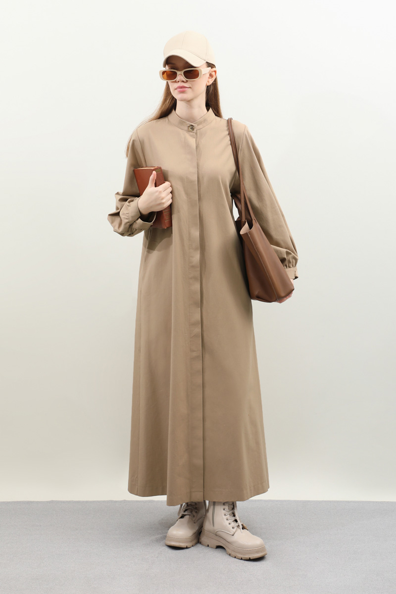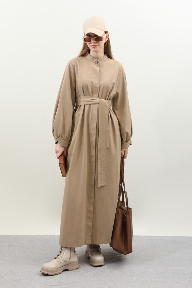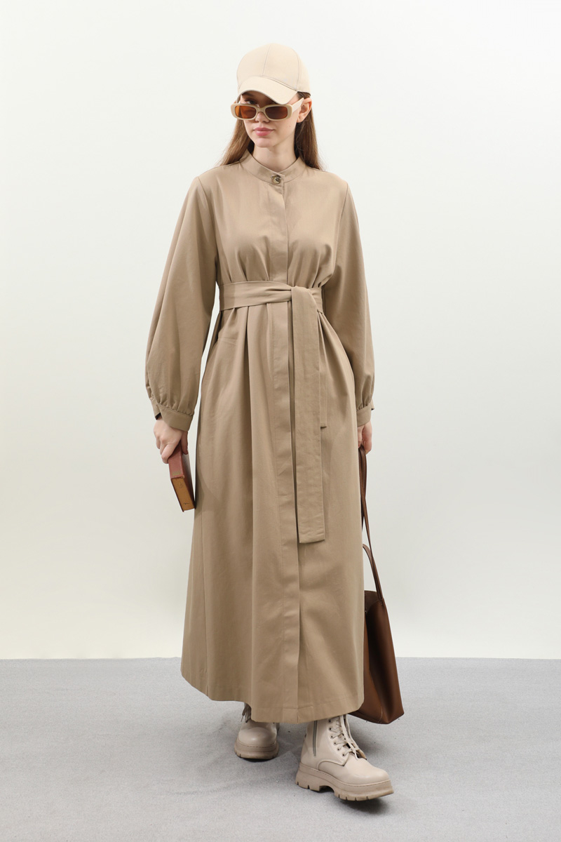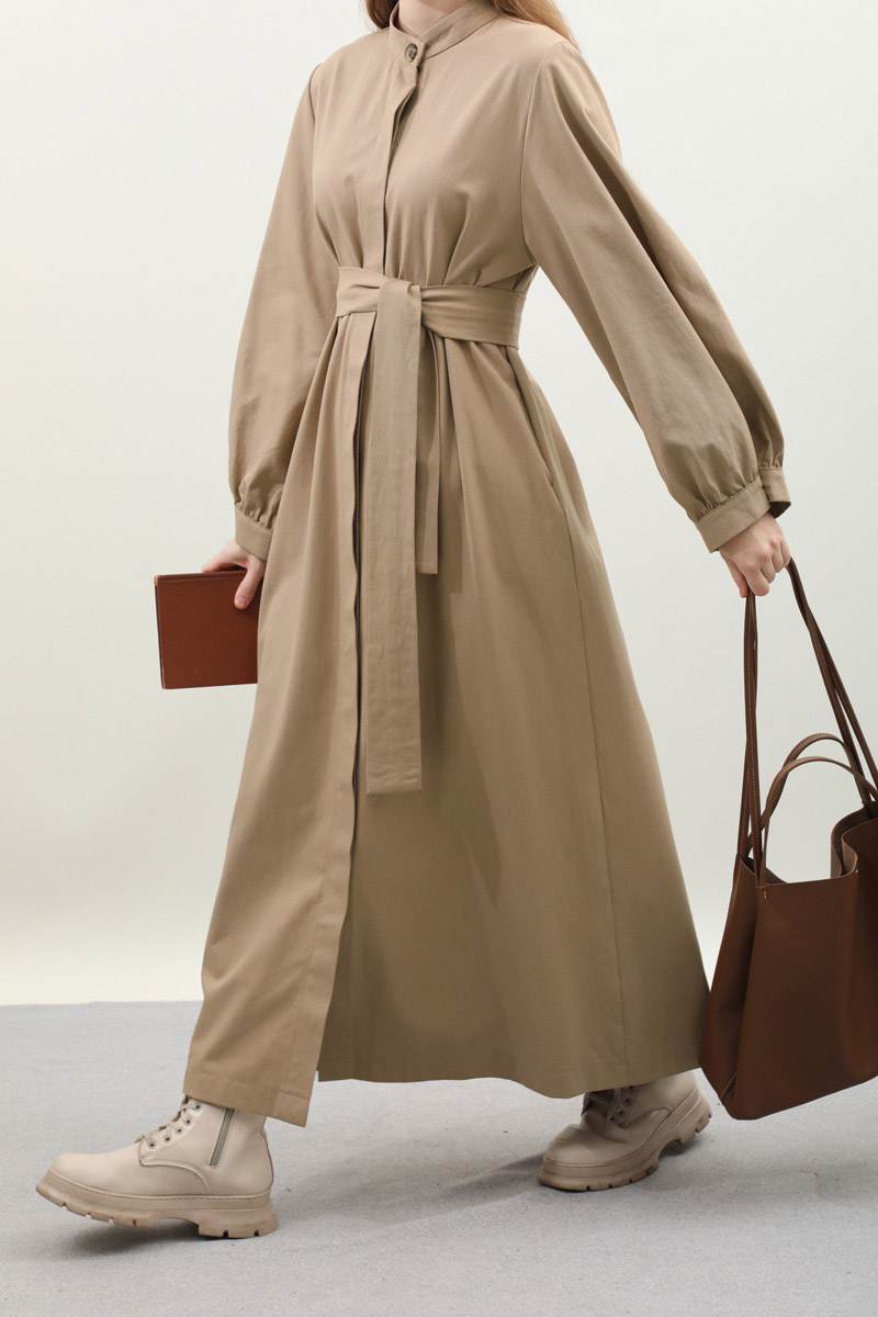 Kuşaklı Gabardin Elbise Vizon, Hakim yakadır, önden gizli düğmelidir, geniş kolludur, geniş manşetlidir daraltmak için ilik düğme eklenmiştir, yandan ceplidir, kuşaklıdır, astarsızdır. Günlük kullanım ve özel günlerinizde tercih edebilirsiniz.