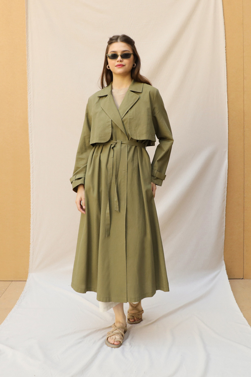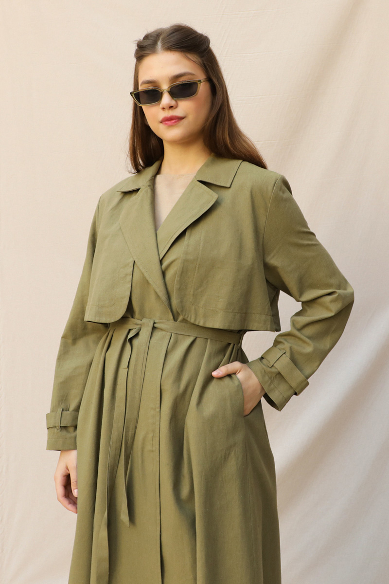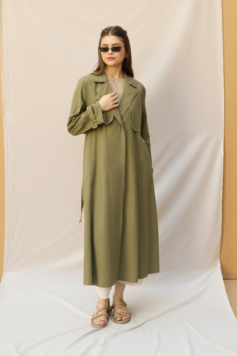 Kuşaklı Uzun Naturel Trençkot Haki. Ceket yakalıdır. Ön ve arkadan rüzgarlık detaylıdır. Arka rüzgarlıkta A Pile detayı mevcuttur. Manşetinde apolet detayı mevcuttur. Yandan ceplidir. Günlük kullanım ve özel günlerinizde tercih edebilirsiniz.