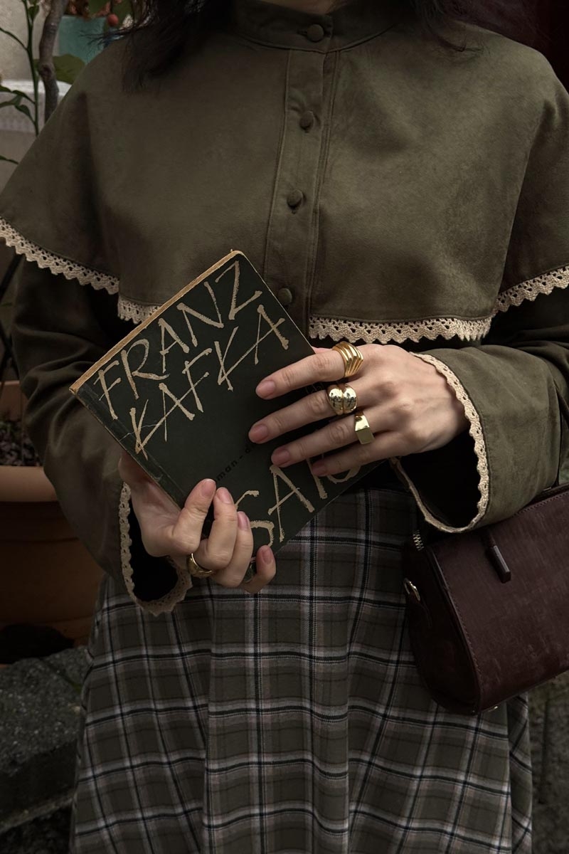 Lace Detailed Suede Shirt Khaki blends romantic touches with a modern silhouette. Its soft suede texture offers a structured yet elegant look, while the lace details on the shoulders and chest add a feminine character to the design. With a button-front closure and straight cut, it provides comfortable wear and can be easily styled with skirts, trousers, or pinafores. A special wardrobe piece for those who want to elevate everyday style with refined details.