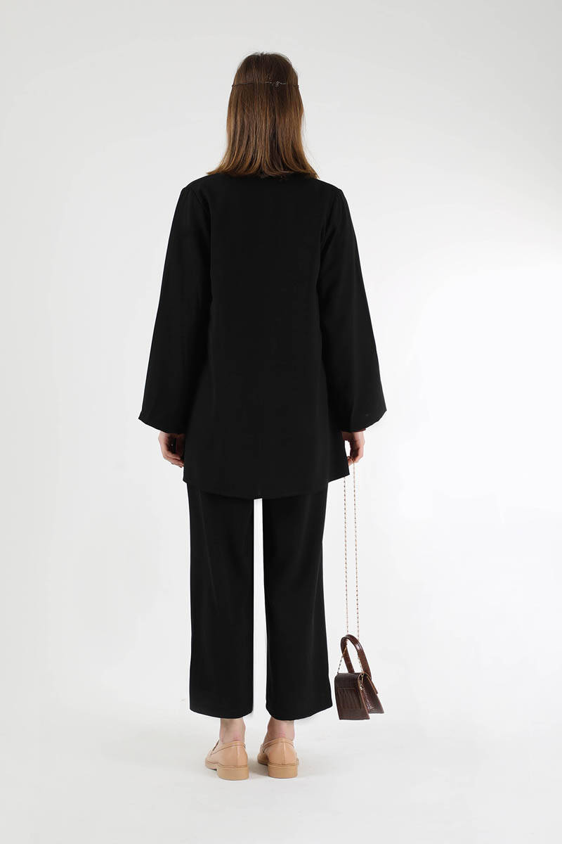 Pantolon ve tunik olmak üzere iki parçadan oluşan takımdır. Tunik V yaka olup bağcık detaylıdır ve önden brilet düğmelidir. Rahat ve esnek yapısı sayesinde kırışmaya dayanıklı ve nefes alıcı özelliğe sahiptir. Ağırlık yapmayan kumaş özelliği ile sık ve uzun süreli kullanıma uygundur.