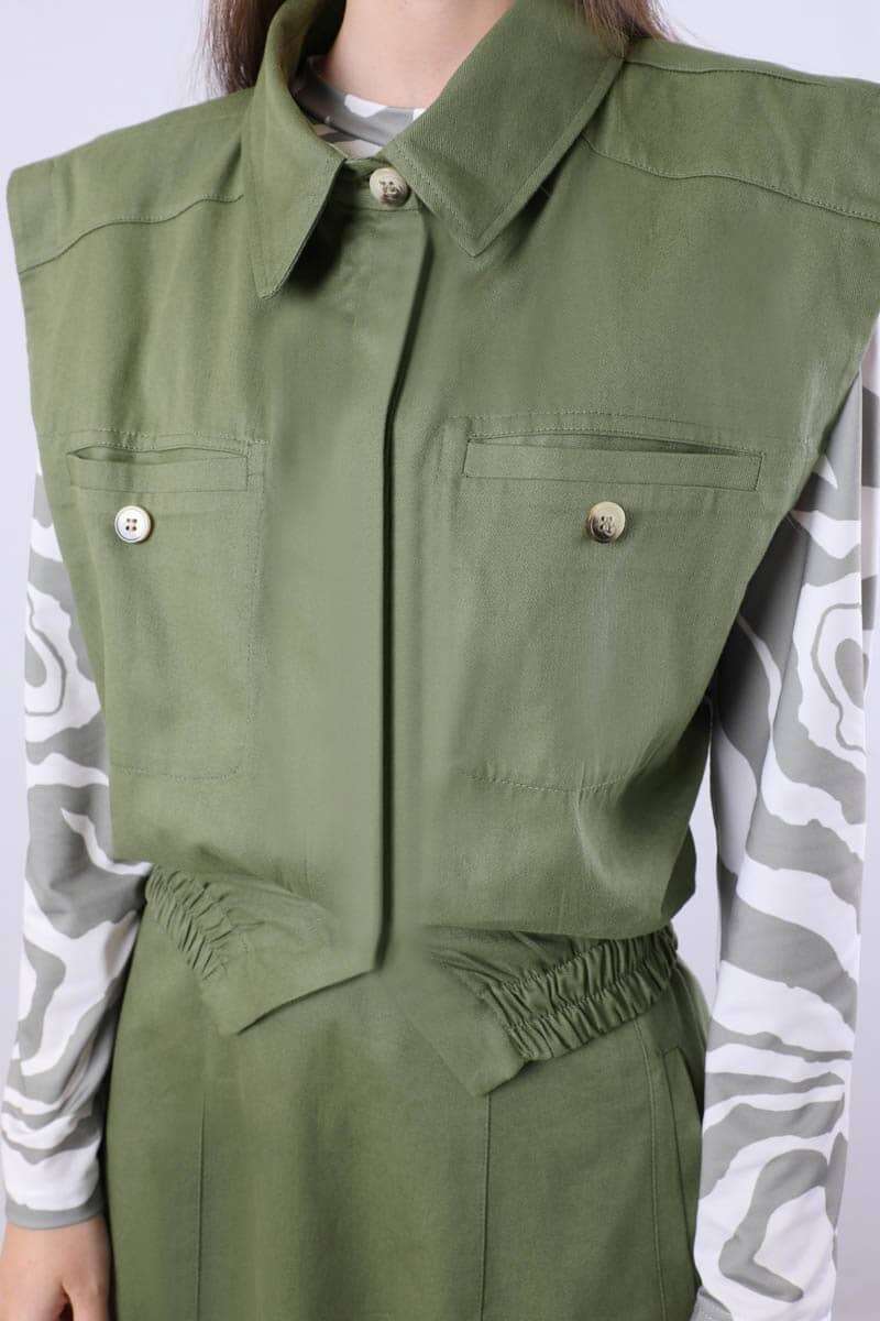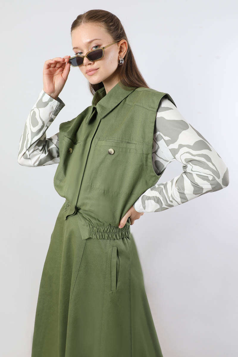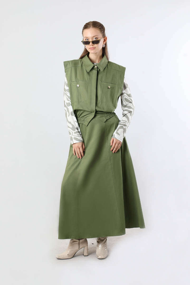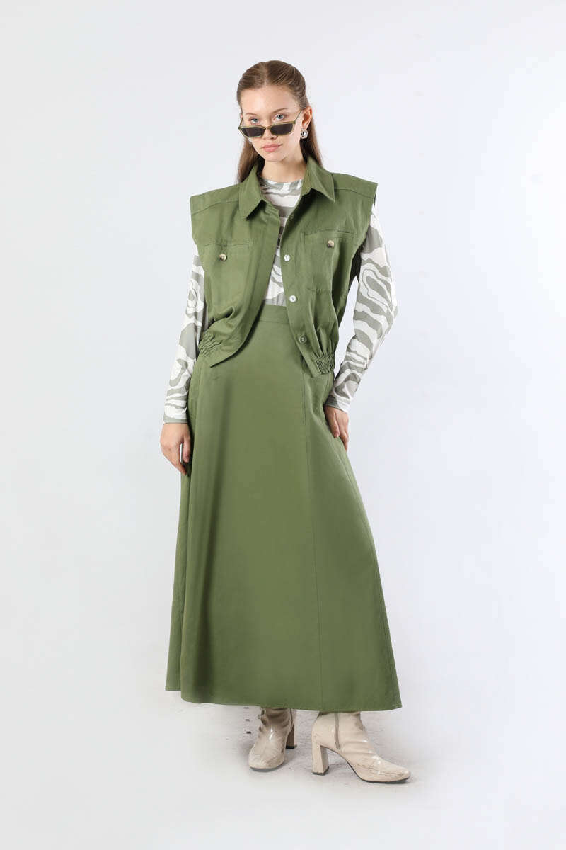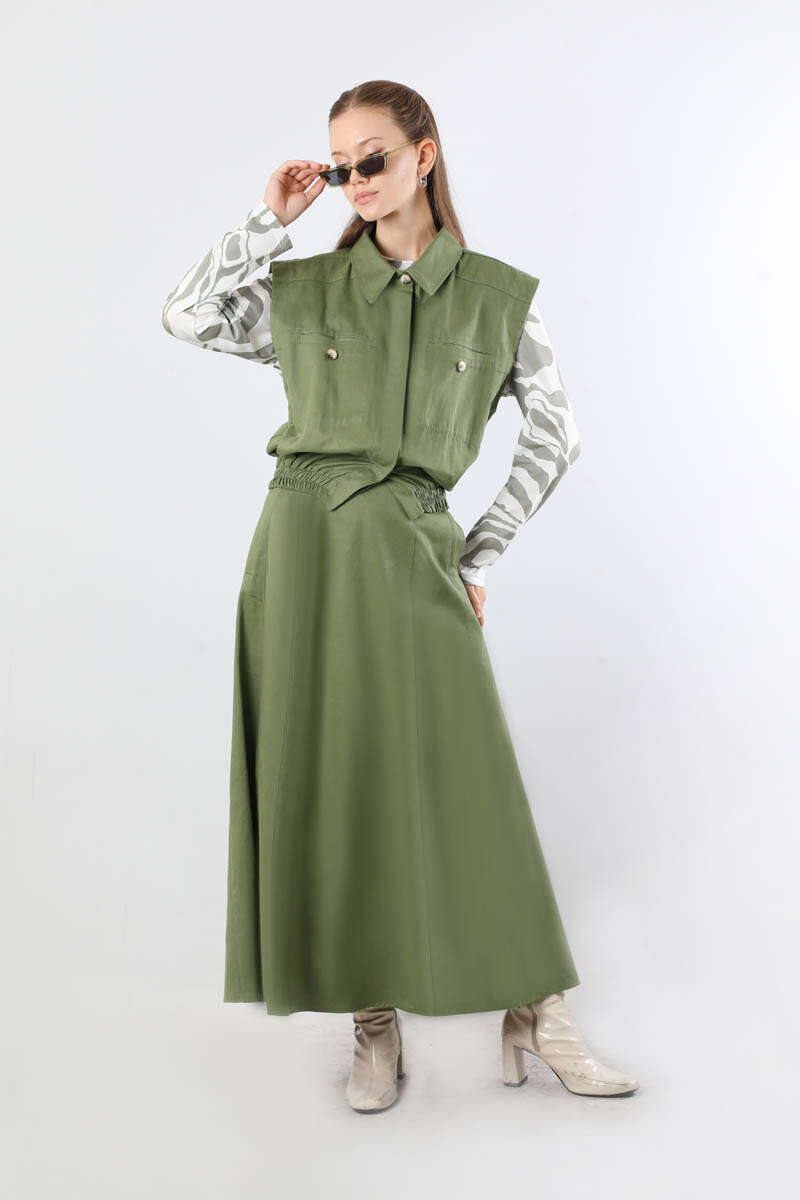 Lastikli Yelek Etek Takım Haki